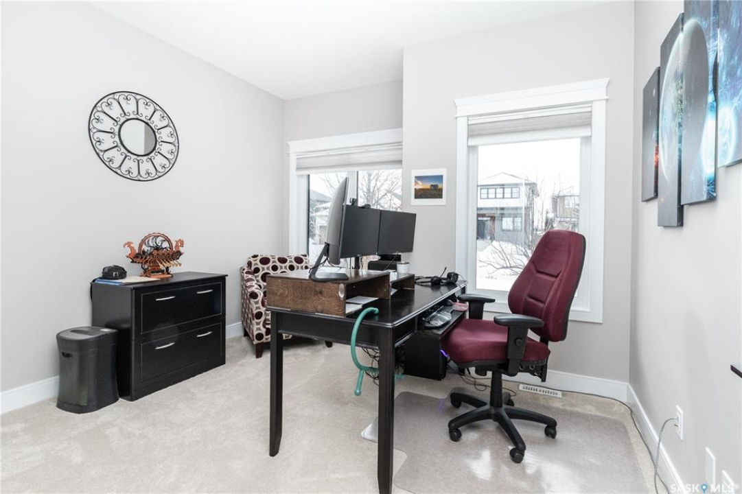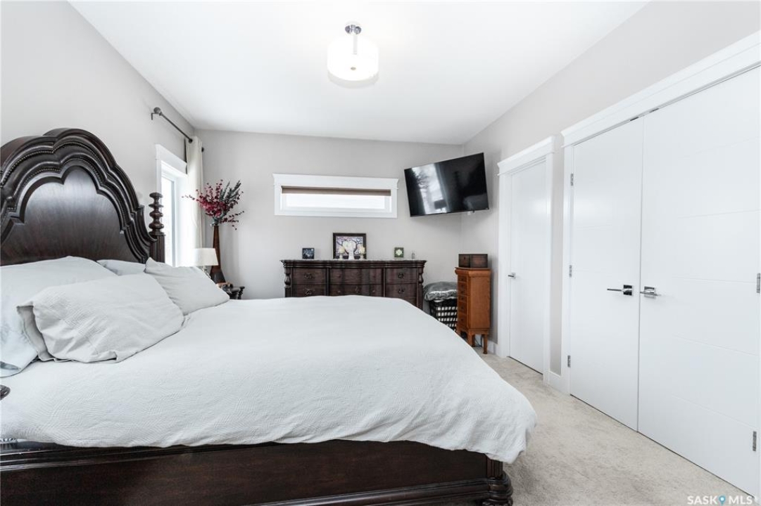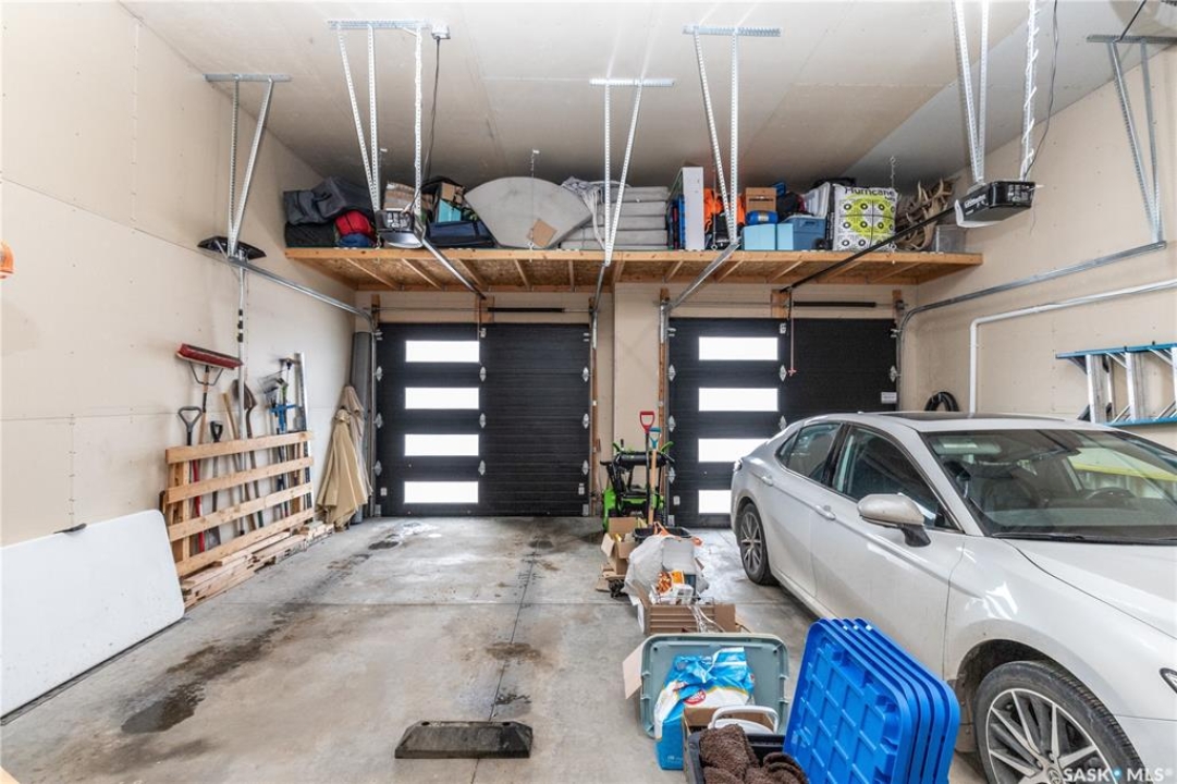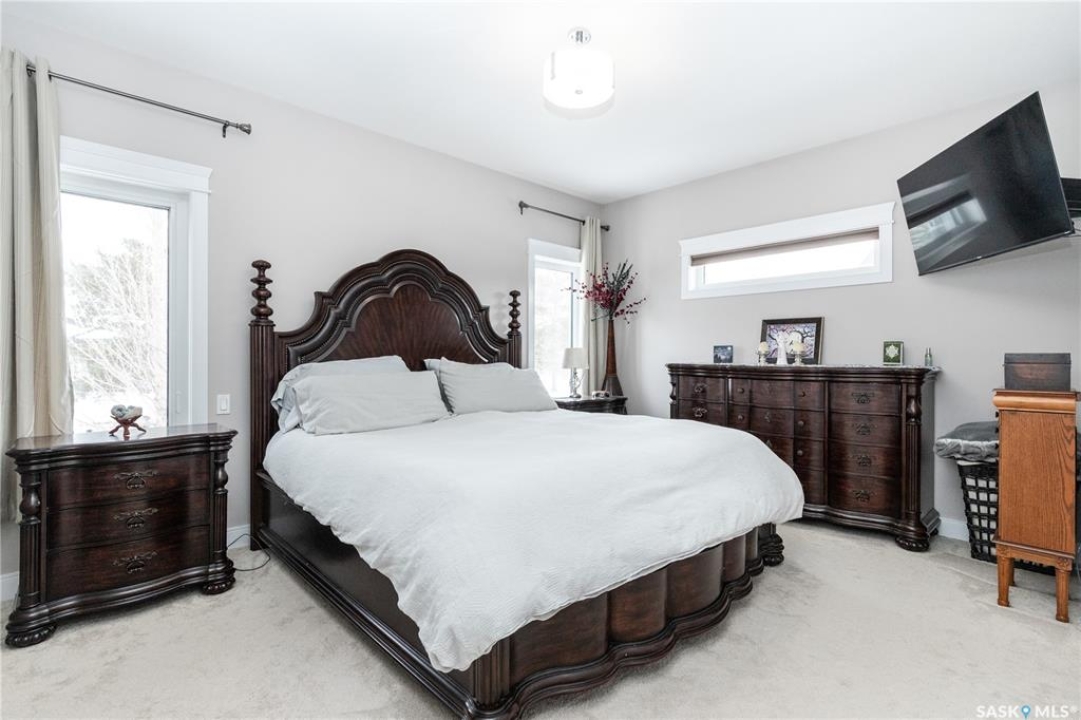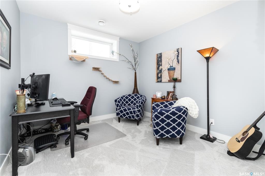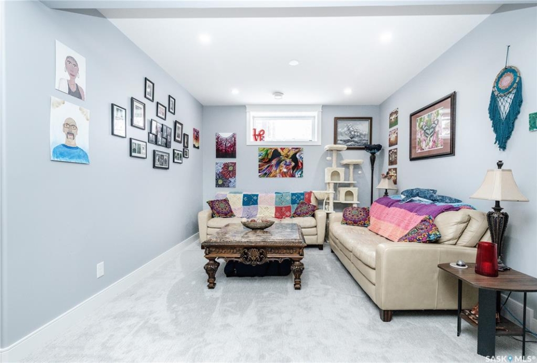 Beautiful Fully Finished 1,500 Sq. Ft. Bungalow Backing Green Space in Evergreen Welcome to this stunning, fully developed 1,500 sq. ft. bungalow backing green space in Evergreen. The main floor offers a bright, open-concept layout featuring a modern kitchen complete with granite countertops, a walk-in pantry, and a gas range. The spacious living room is highlighted by a cozy gas fireplace, perfect for relaxing or entertaining. The primary suite includes two generous closets and a luxurious 4-piece ensuite with heated floors and a large walk-in shower. Two additional bedrooms and a full bathroom with a soaker tub complete the main level. Convenient main-floor laundry and direct access to the backyard from the dining room add to the home's functionality. Step outside to your own private backyard oasis featuring a large deck with a gas BBQ hookup, plus a patio area with a hot tub, pergola, and an additional gas hookup—ideal for a future fire pit. Enjoy the added privacy of backing green space. The fully developed basement is designed for entertaining, offering a spacious family room with a bar, an additional bedroom, and a full bathroom. A versatile nook area could easily be converted into a fifth bedroom if desired. The utility room provides ample storage space. Additional features include central air conditioning, central vacuum throughout the home and garage, and a double attached insulated garage. Ideally located with direct access to the Northeast Swale, Forestry Farm, and Saskatoon Zoo trails—enjoy walking, biking, and cross-country skiing right from your doorstep. Close to parks, schools, and shopping. Call today to book your private viewing!