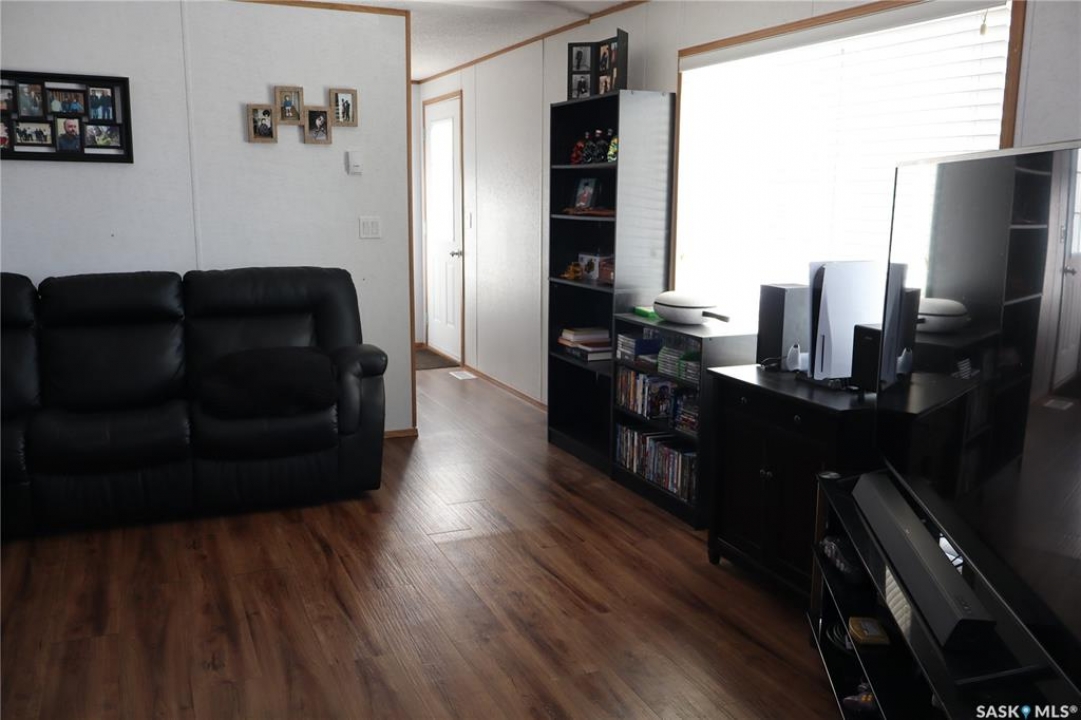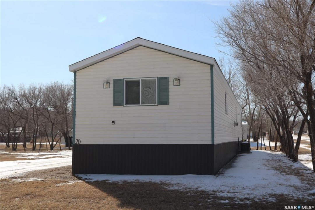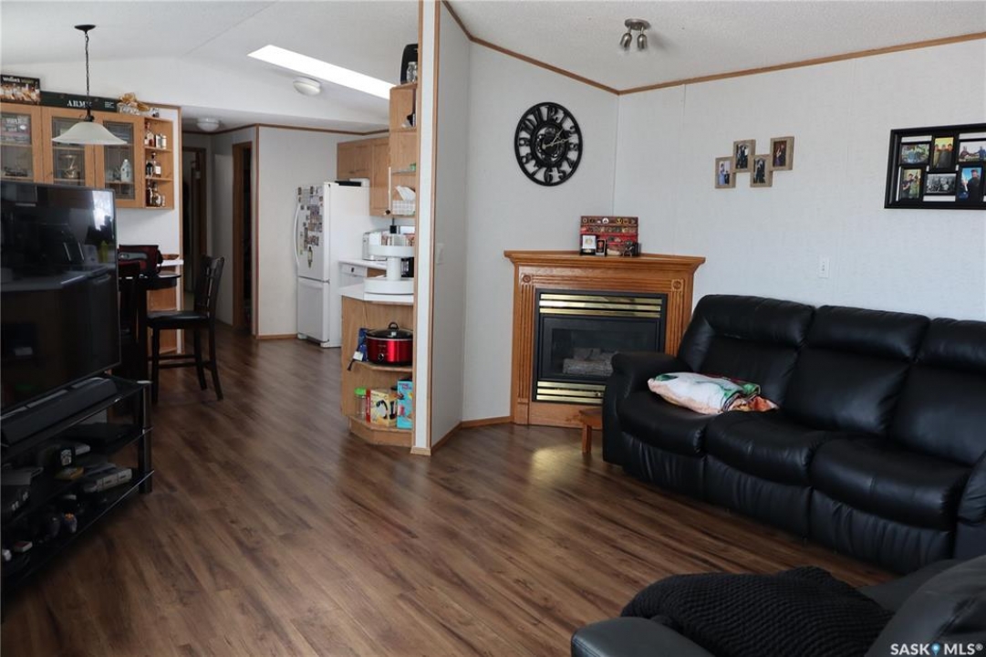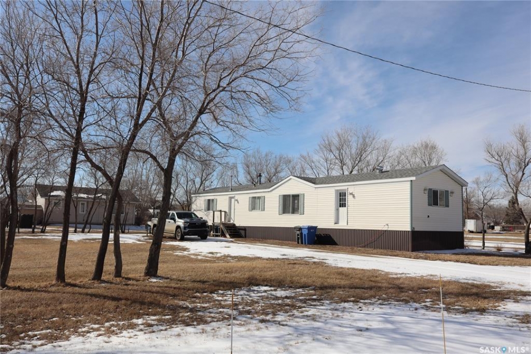Located in the historic Town of Willow Bunch you will find this Mobile home on an owned lot. The 1216 square foot 3-bedroom, 2 bathroom mobile features vaulted ceilings and a gas fireplace in the living room. The home has unique walls that are offset and provide a great design. The room measurements will be confusing as the rooms in the main area are not square. The primary bedroom has a large 4-piece Ensuite as well as a large closet. You will enjoy the added convenience of main floor laundry in the back entryway. The kitchen has a large pantry and lots of cabinets. The Island provides lots of extra preparation and storage space. Two extra bedrooms and a bathroom are located close to each other at the further end. The lots is nicely treed and close to the edge of town. The shed is negotiable with the sale. Have a look today