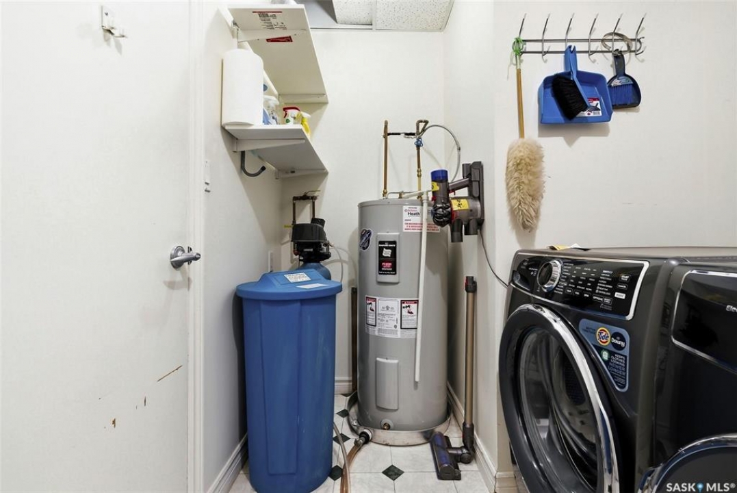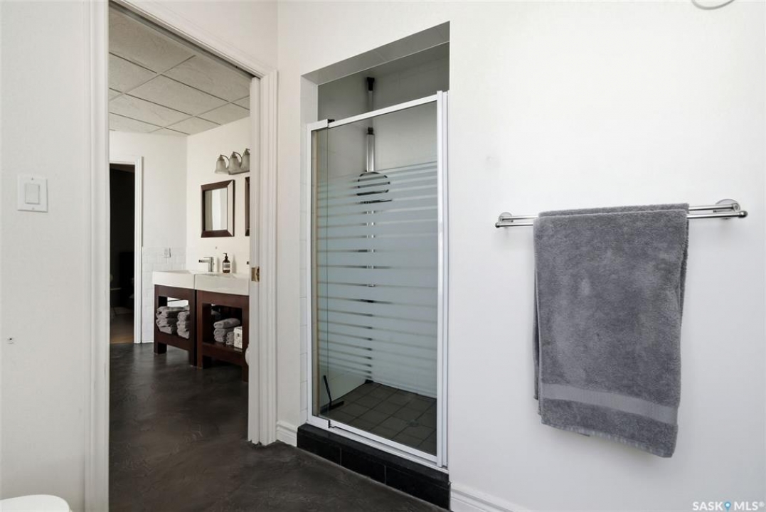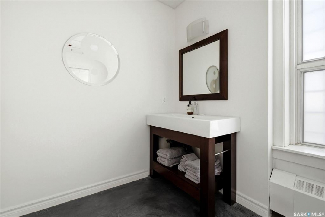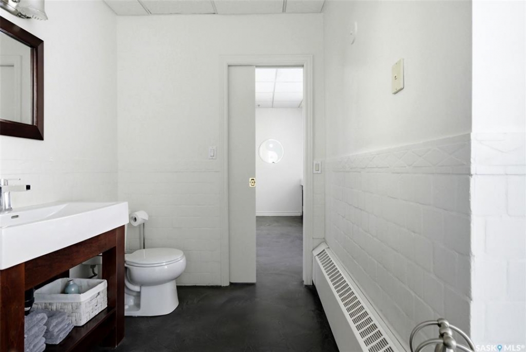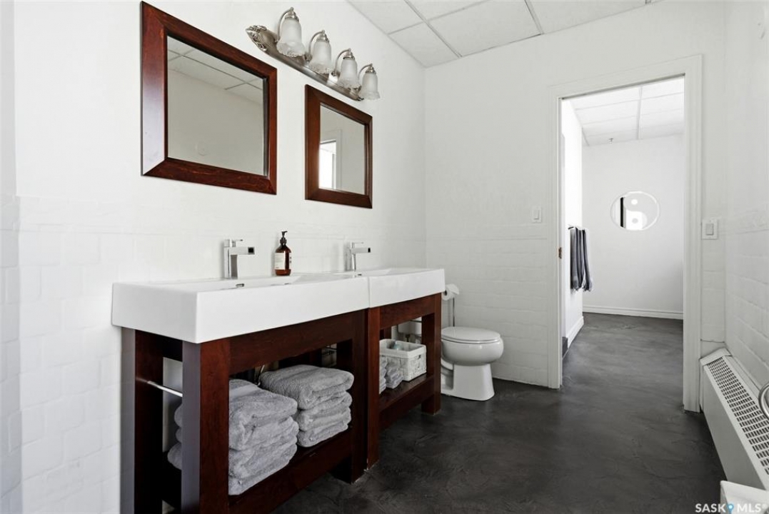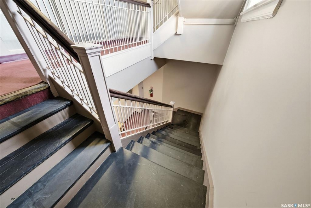 Welcome to this stunning fourth-floor residence in the historic Western Trust Building, offering over 1,900 square feet of sophisticated, south-facing luxury. This expansive open-concept layout showcases an impressive living, dining, and kitchen area — ideal for both everyday comfort and upscale entertaining. A charming nook just off the main living space provides the perfect setting for a home office or cozy library corner. The kitchen is exceptionally well appointed, featuring granite countertops, a Sub-Zero refrigerator, and an abundance of counter and prep space. Dishwasher and stove were replaced in 2025. A large eating island anchors the room and includes the sink and dishwasher, creating a highly functional workspace while allowing the kitchen to open seamlessly to and overlook the spacious living room — perfect for entertaining and staying connected with guests. The unique dual-bath layout is both functional and private, with two side-by-side bathrooms connected by a pocket door. One features a jetted tub and a spacious double vanity, while the second offers a large walk-in shower and vanity. The primary bedroom is generously sized and includes a large walk-in closet with built-in shelving. The second bedroom is also spacious and features a double closet. A substantial laundry and storage room enhances everyday practicality, and a new washer and dryer (2025) are included. A private elevator provides exclusive access, traveling directly into the unit itself — a rare and distinguished feature that enhances both privacy and security. The building is known for its solid construction and quiet atmosphere. One heated underground parking stall is included, conveniently located beneath the Globe Theatre — allowing for comfortable year-round parking just steps away. An exceptional opportunity to own a piece of Regina's architectural history while enjoying executive-style condo living in the heart of downtown.