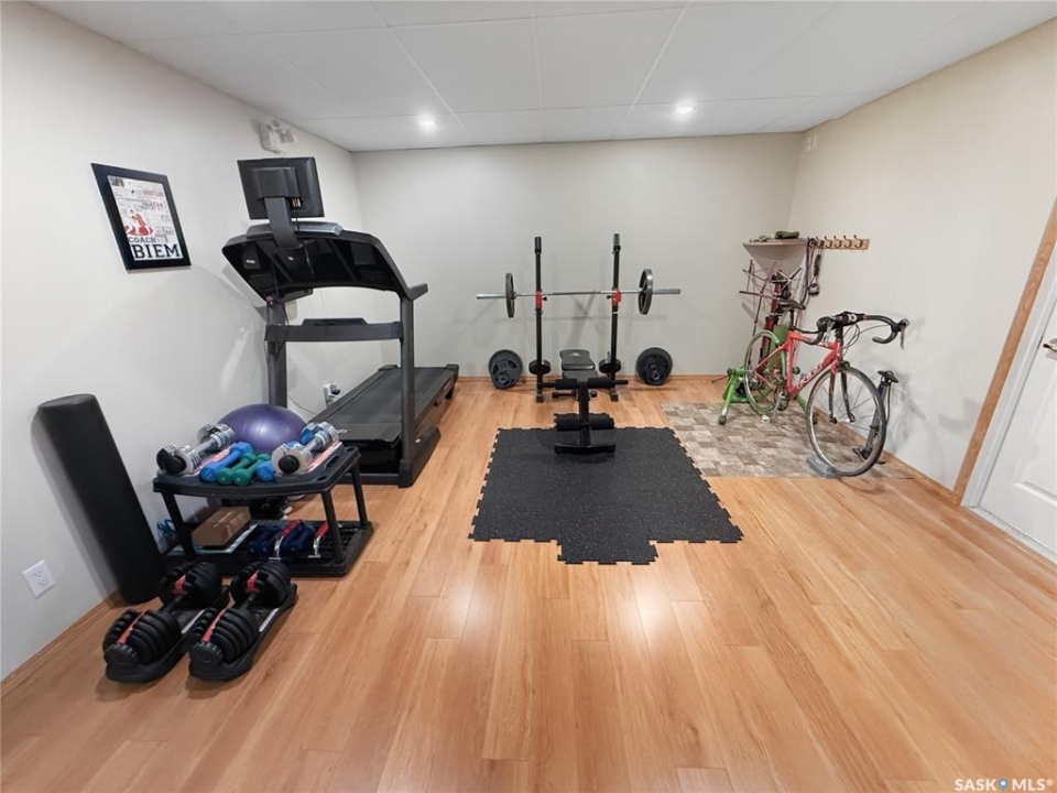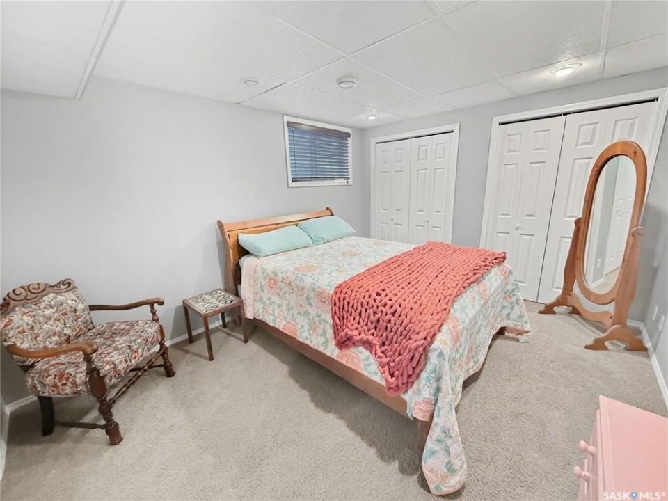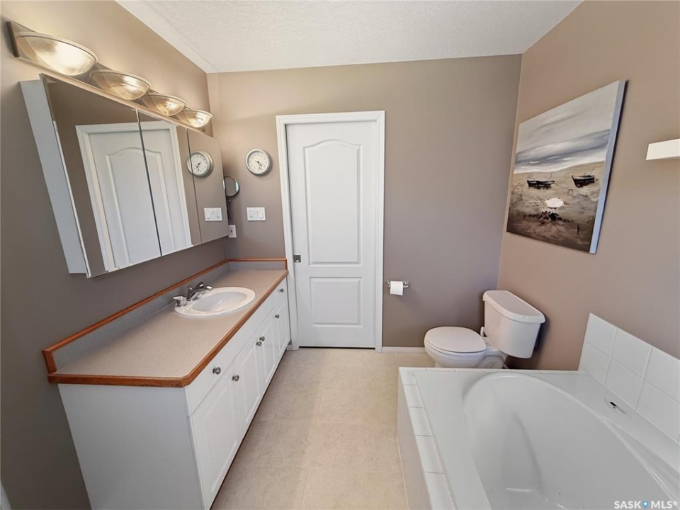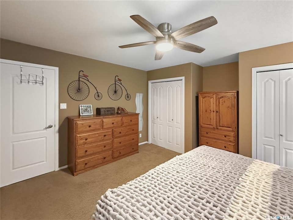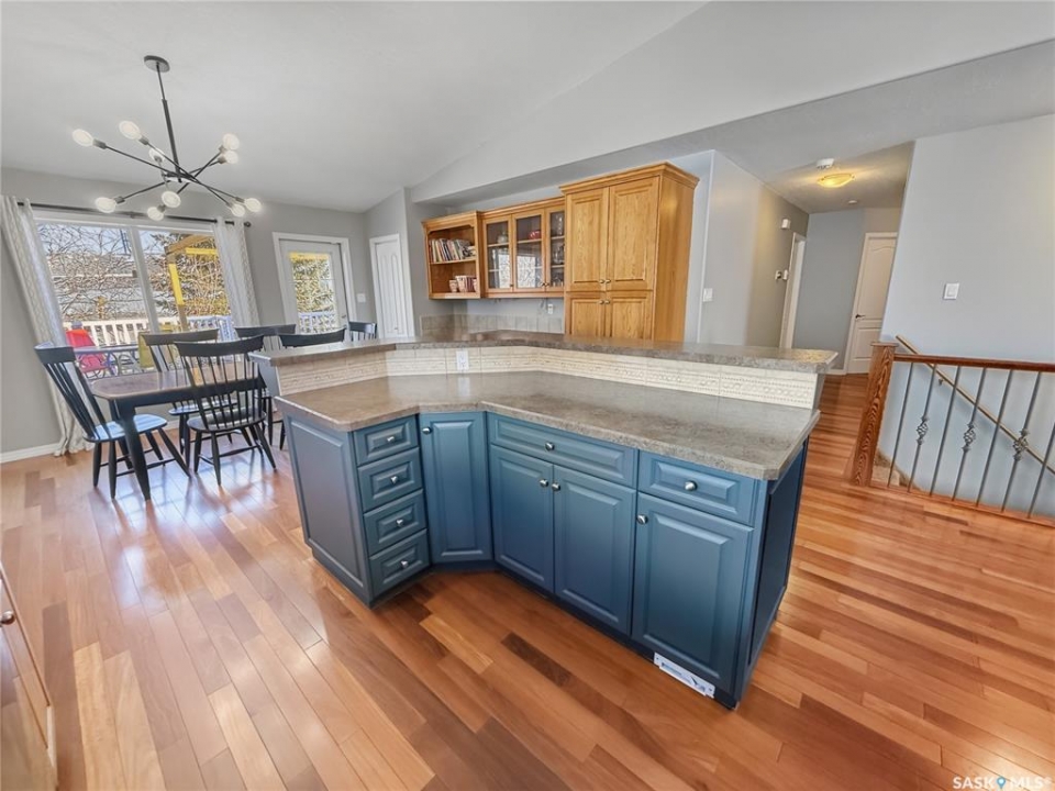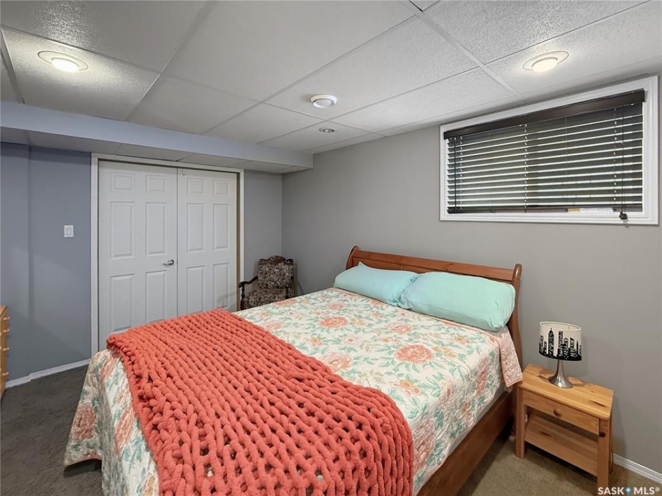 Rare opportunity in Highland. Homes in this sought after subdivision do not come along often. Highland remains one of the city's most desirable neighbourhoods for families and retirees alike, known for its quiet streets and long term value. This oversized bungalow offers 1,520 sq ft on the main floor with 5 bedrooms, 3 bathrooms, and a heated double attached garage. It checks all the boxes. Step inside to rich hardwood floors, vaulted ceilings, and an open concept layout. The main living areas are finished in a modern grey palette and feature recessed lighting and contemporary light fixtures. The generous living room showcases a statement wall with electric fireplace and TV integration. The spacious foyer includes both a closet and built in drawers, along with direct access to the garage. The kitchen offers solid oak cabinetry, a contemporary grey tiered island with seating, and a stainless steel and black appliance package, including a fridge new in 2025 with water and ice. The dining area includes additional built in cabinetry and a single garden door leading to the east facing deck. Pergola included. The main floor features three bedrooms, including a primary suite with double closets and a 4 piece ensuite complete with jacuzzi tub and corner walk in shower. Two additional bedrooms, a full bath, and a large hallway laundry closet with stacking washer and dryer, washer new in 2026, complete this level. The lower level offers a bright family room with large windows, a spacious bedroom behind double doors, a home gym area, a fifth bedroom, full bath, and utility room with Lennox mid efficient furnace, air exchanger, water softener, central vac, 100 amp panel, and hot water heater replaced July 2023. The fully fenced backyard features an east facing deck, tiered stone landscaping, shed, and gravel RV parking. A well appointed bungalow in Highland with this square footage and layout is a rare offering. Opportunity is knocking.