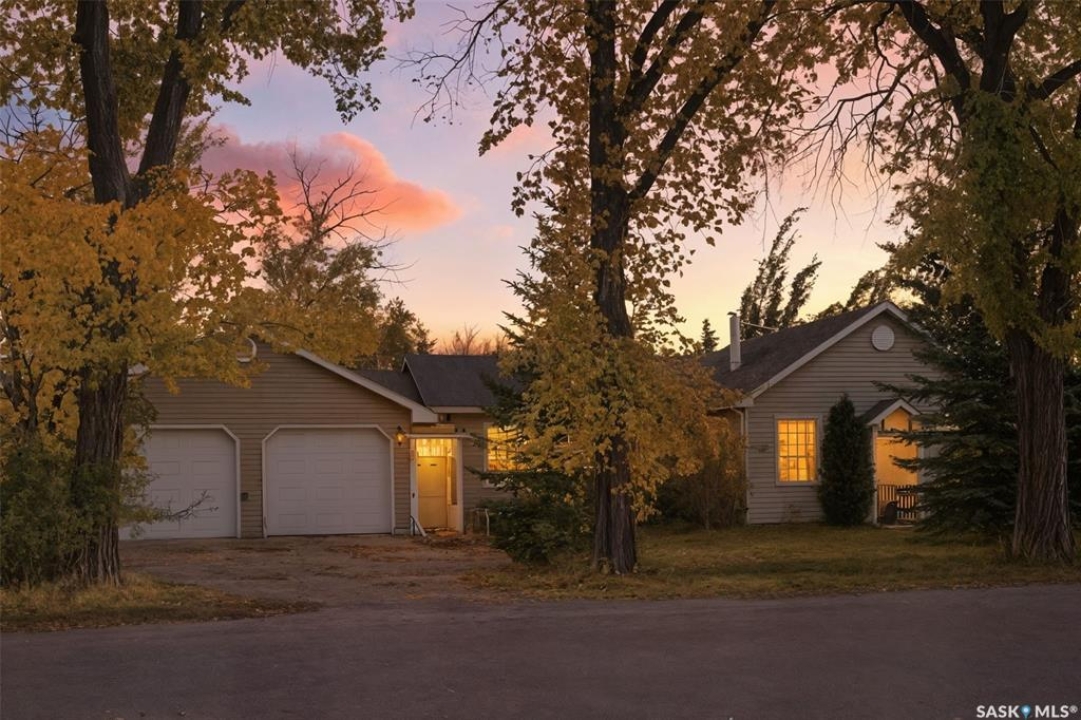 Enjoy quiet, small town living in this bungalow situated on a massive lot in Radisson! This spacious home offer over 1,500sqft with a bright and inviting living room, large oak kitchen and adjoining dining room. The primary bedroom has plenty of space for your furniture and includes a walk-in closet and 3 pc ensuite, as well as garden doors to the patio. Two additional bedrooms, a full bath and laundry complete the main floor. The basement has room for all your family's needs - whether that's play space, rec room or family room for movie nights - as well as lots of storage and a 2pc bath. The double attached garage is 24x36 with a built-in workshop at the end, and an additional detached 14x20 garage. Outside you'll love all the space this peaceful property provides, with an expansive deck, gazebo and garden area, and mature landscaping. Give your favourite realtor a call to set up your showing!