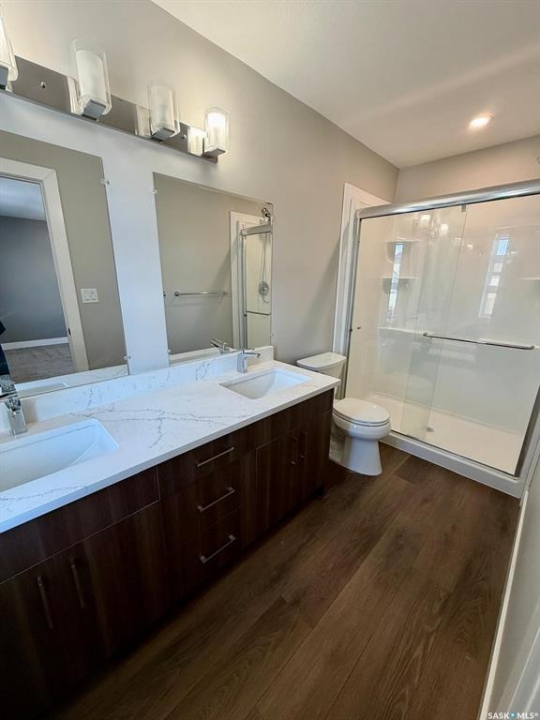 Welcome to 3330 Green Turtle Road in the desirable Eastbrook neighbourhood of Regina! This impressive 2-storey detached home offers 1,638 sq ft above grade plus a fully finished regulation basement suite with a separate entry—an outstanding opportunity for investors or homeowners looking to offset their mortgage with rental income. Built in 2022, the main level features a bright, open-concept layout with durable vinyl plank flooring throughout the living room, dining area, and spacious kitchen. The modern kitchen showcases rich cabinetry, stainless steel appliances, subway tile backsplash, and a large island perfect for entertaining. A convenient 2-piece bath completes the main floor. Upstairs you'll find three bedrooms, including a generous primary suite with a walk-in closet and 4-piece ensuite, plus an additional full bathroom and second-floor laundry for added convenience. The fully developed basement offers a self-contained regulation suite with its own private entrance, separate kitchen, dining area, living room, bedroom, 4-piece bath, and laundry—ideal for tenants, extended family, or guests. This setup allows you to rent both units for strong income potential or live comfortably upstairs while generating revenue below. Situated on a 4,093 sq ft lot with deck space and off-street parking, this home combines modern style with practical investment appeal. Located in a growing, family-friendly community close to parks, schools, and amenities, this is a rare opportunity to own a property with built-in income potential. Whether you're expanding your rental portfolio or searching for a smart, mortgage-helping home, this one checks all the boxes!