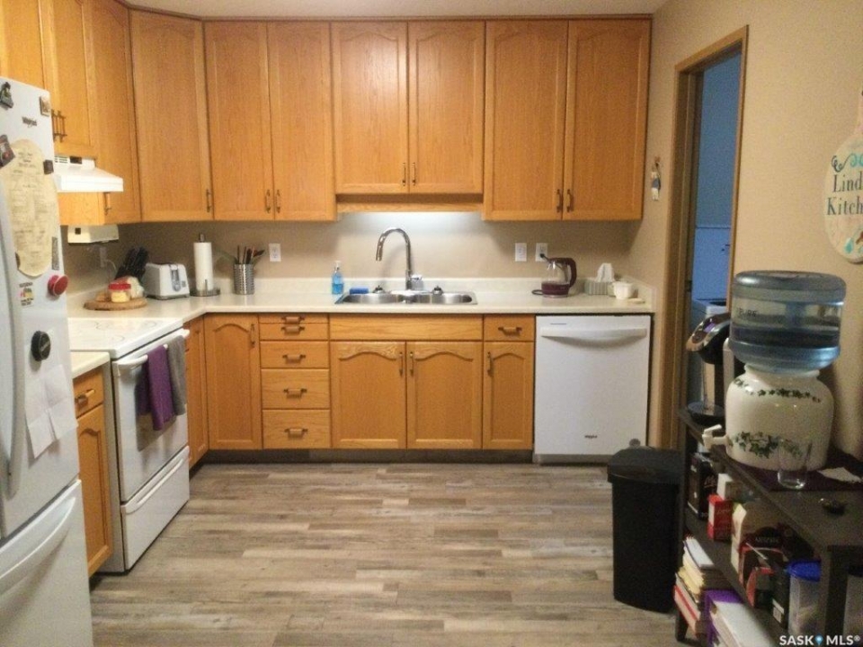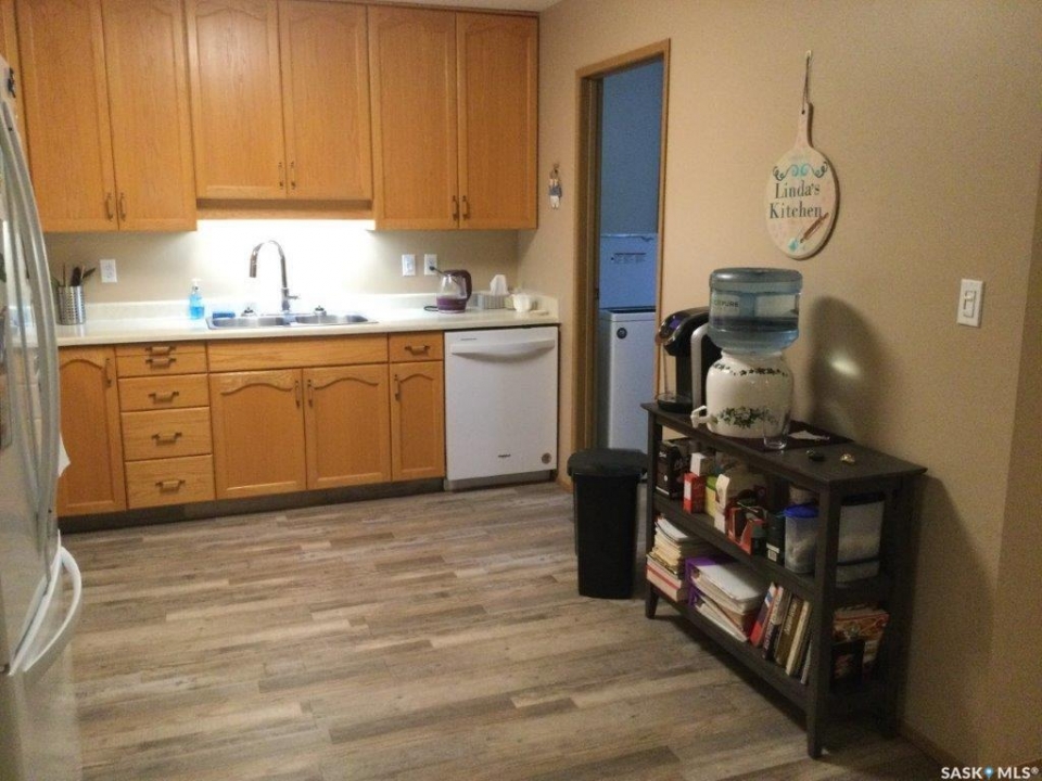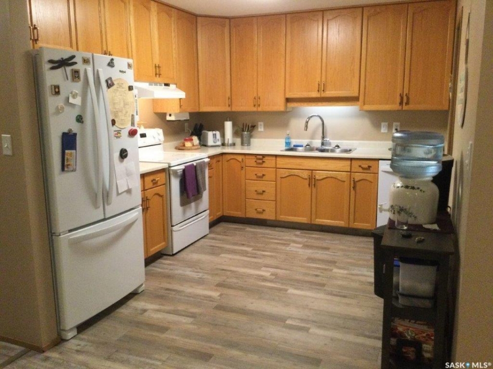 Welcome to this three bedroom condo located in Wheatland Place. The condo is located just a block from Main Street with a grocery store located beside you. Good size entrance with closet that opens to the kitchen and living/dining room with entrance to the closed-in deck that is wheelchair accessible. Good size laundry room off kitchen. 3 bedrooms are down the hall and a 4-piece bathroom. The primary bedroom has a 3-piece with walk in shower and extra storage cabinets. Features: 3 bedrooms, 2 bath condo located 1 block from Main Street. There is a closed in 3 season sunroom for enjoying the outdoors. There is a good size utility room with in unit laundry. Wheelchair accessible condo. Improvements: fridge, dishwasher, washer & dryer. Taps and faucets throughout. Vinyl plank flooring, some lighting updated, primary bath toilet updated and water shut offs replaced as well. Window treatments included. There is 1 heated underground parking stall. There is a shared room that can be booked out for larger gatherings. Call today to book your tour of this condo.