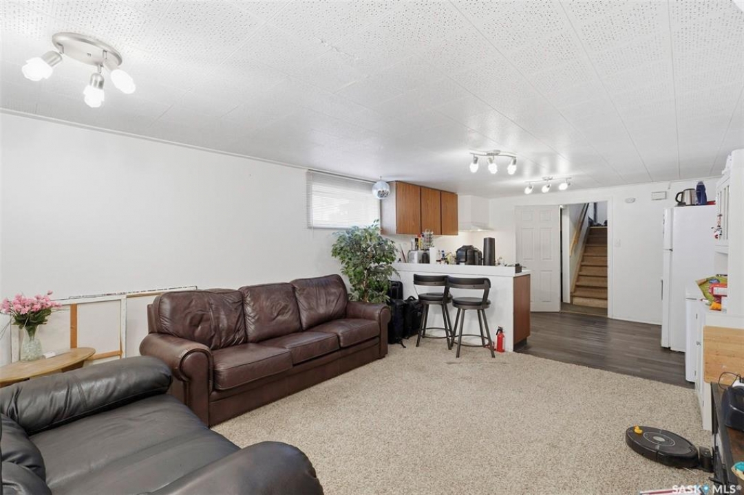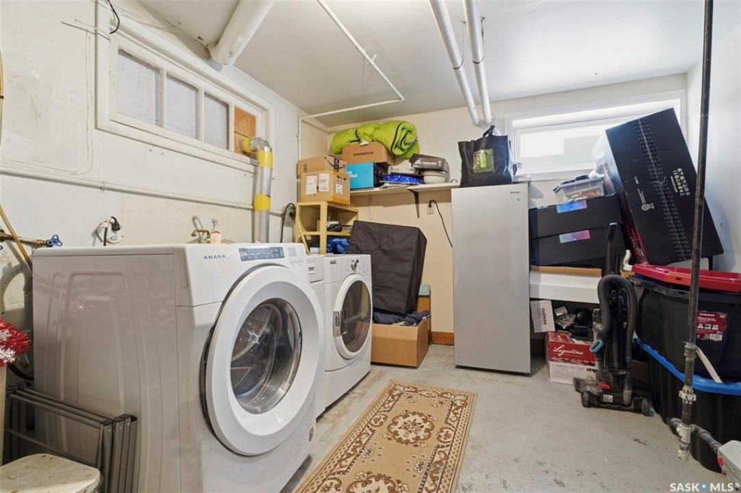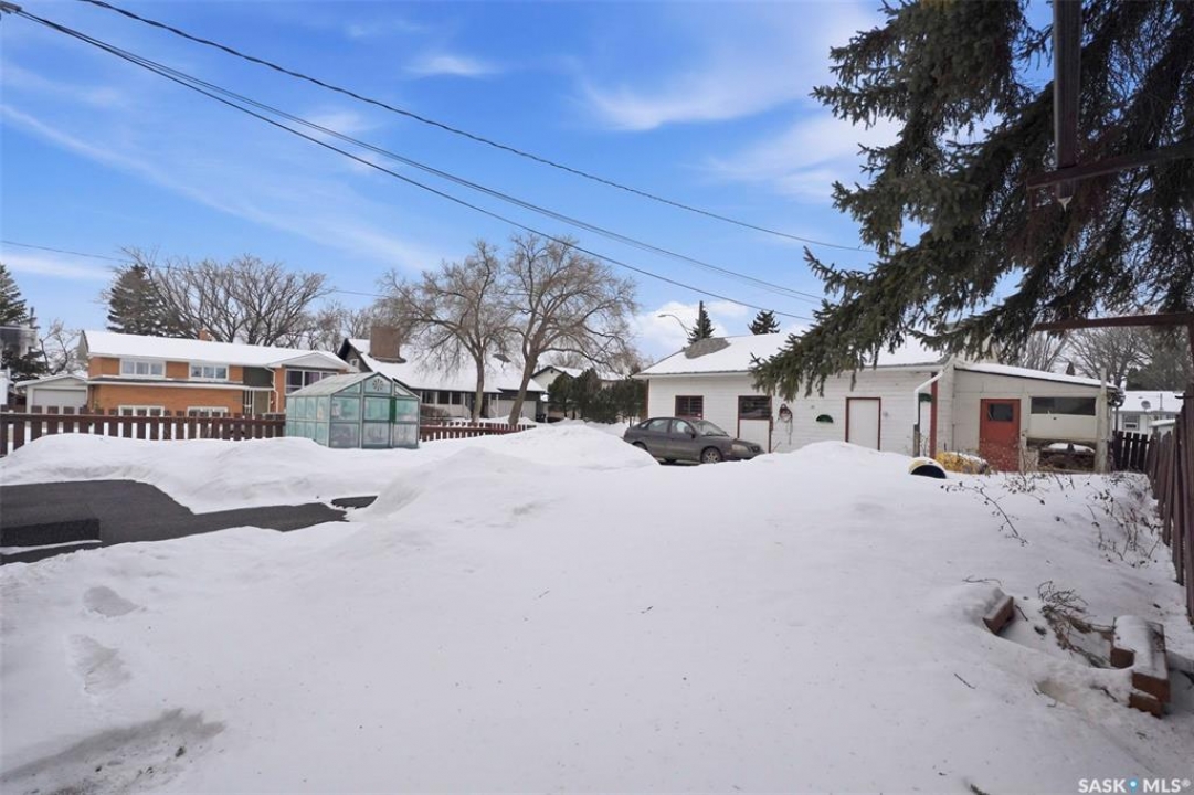 OPEN HOUSE TONIGHT MARCH 3RD 5-6:30. Great location in Sutherland!! 1106 sq ft, 3 bedrooms and a 4-piece bath up. This home has original hardwood floors in the living room and dining room. The living room has large windows, plenty of space and is open to the dining area. The kitchen has lots of cabinets and a closet off of it which makes a perfect pantry. The 3 bedrooms are a good size and one of them currently has the hook up for the laundry on the main floor. The basement has a separate entrance, a 2 bedroom suite, a 4-piece bath, laundry, large windows and a kitchen. The large yard has a greenhouse, garden area and a oversized 28x24 double detach garage. Close to the U of S. Other notable features: Freshly painted and some newer windows.