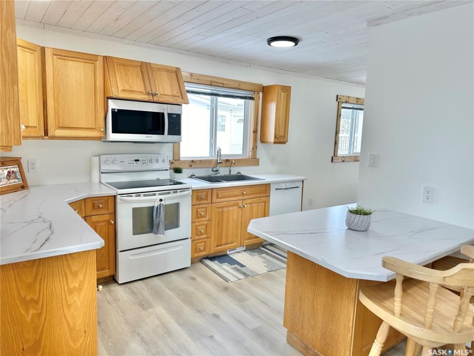 This charming raised bungalow is 936 square feet and includes 2 bedrooms and 1 bathroom. It boasts a brand new renovation on the upper level, while the basement remains open and ready for your finishing touches. The open-concept design is perfect for family living and entertaining, offering plenty of space. Main floor laundry is a convenient option if desired. The exterior features new shingles in 2025, Hardie board siding and updated windows. Inside, you'll find stunning high-end vinyl plank flooring and stylish pine trim throughout. Set on a spacious lot in a peaceful cul-de-sac, the property also provides back alley access, allowing room to build a garage. The home comes with new kitchen appliances, all included. The property has a well that is shared with the neighbours and is registered on title. Quick possession is available, call for more info and to book your private showing.