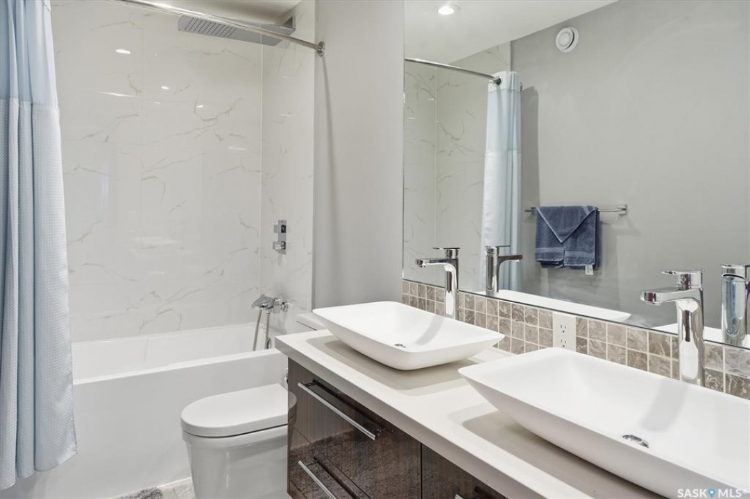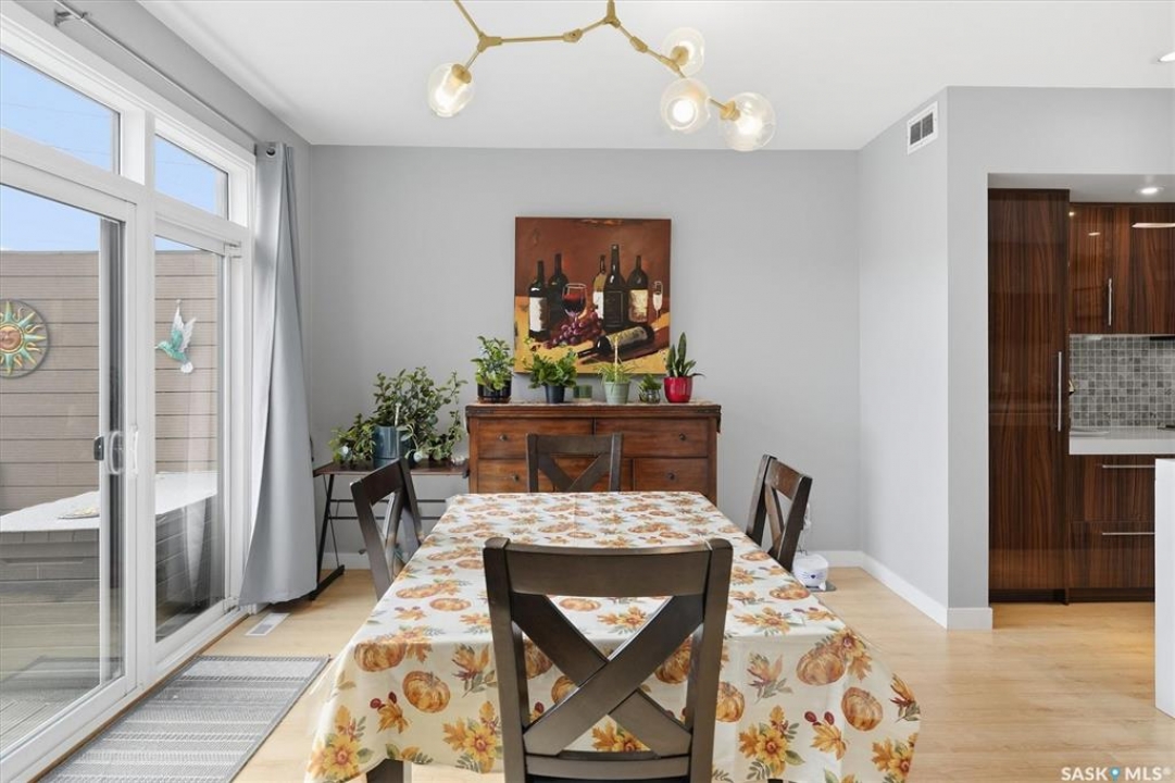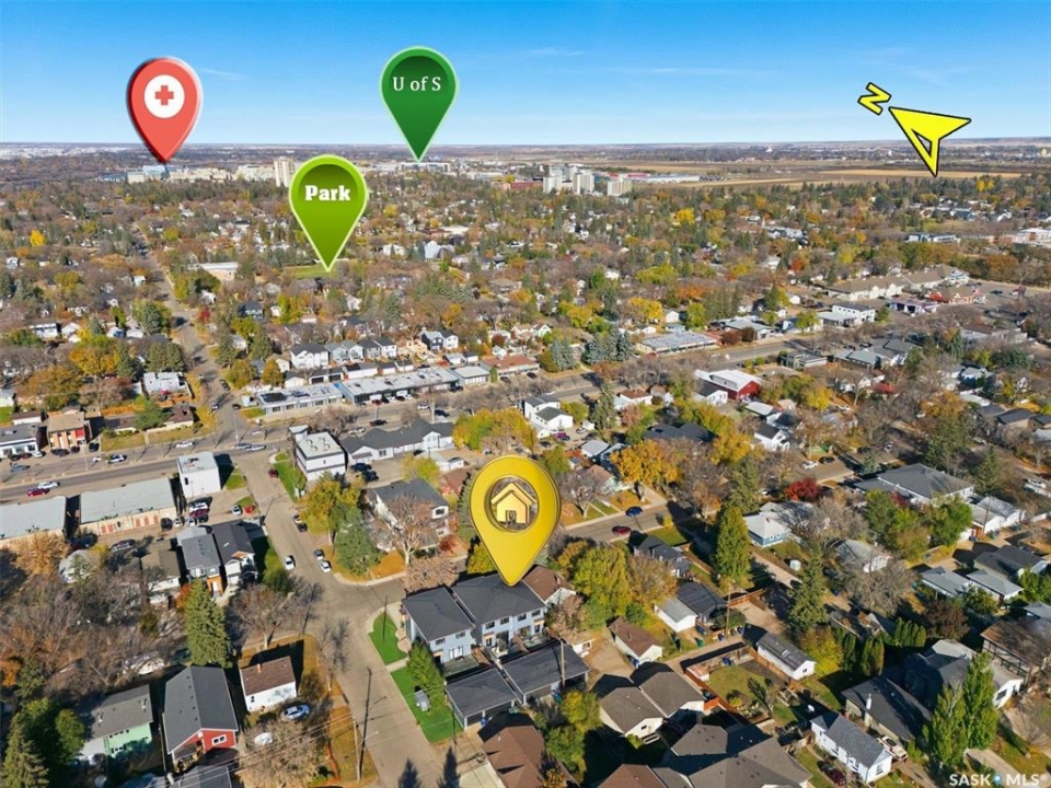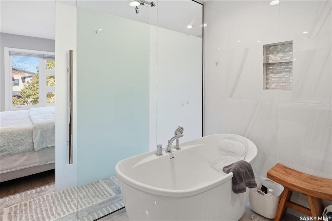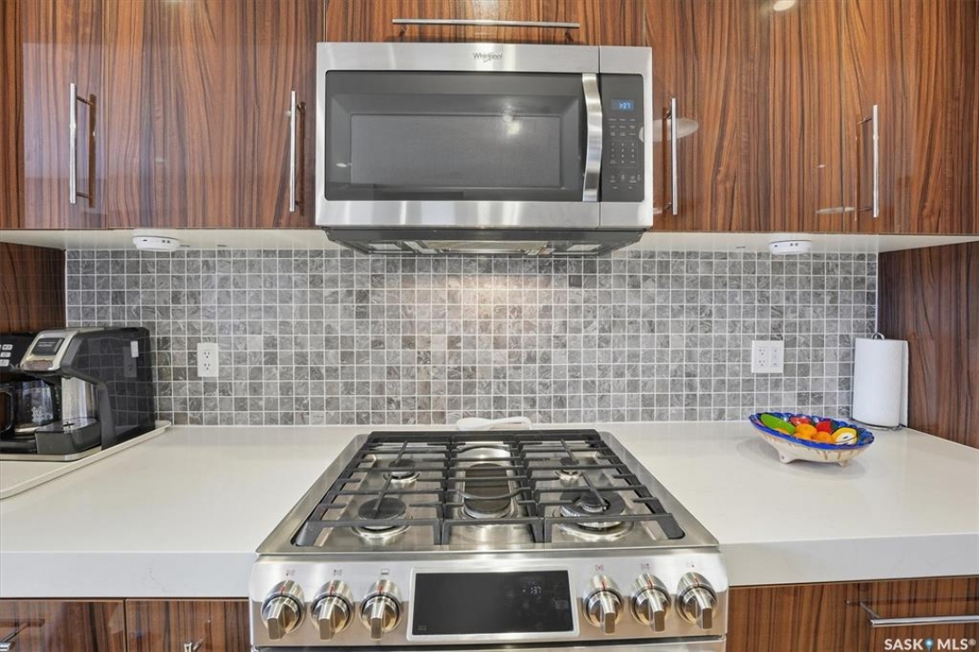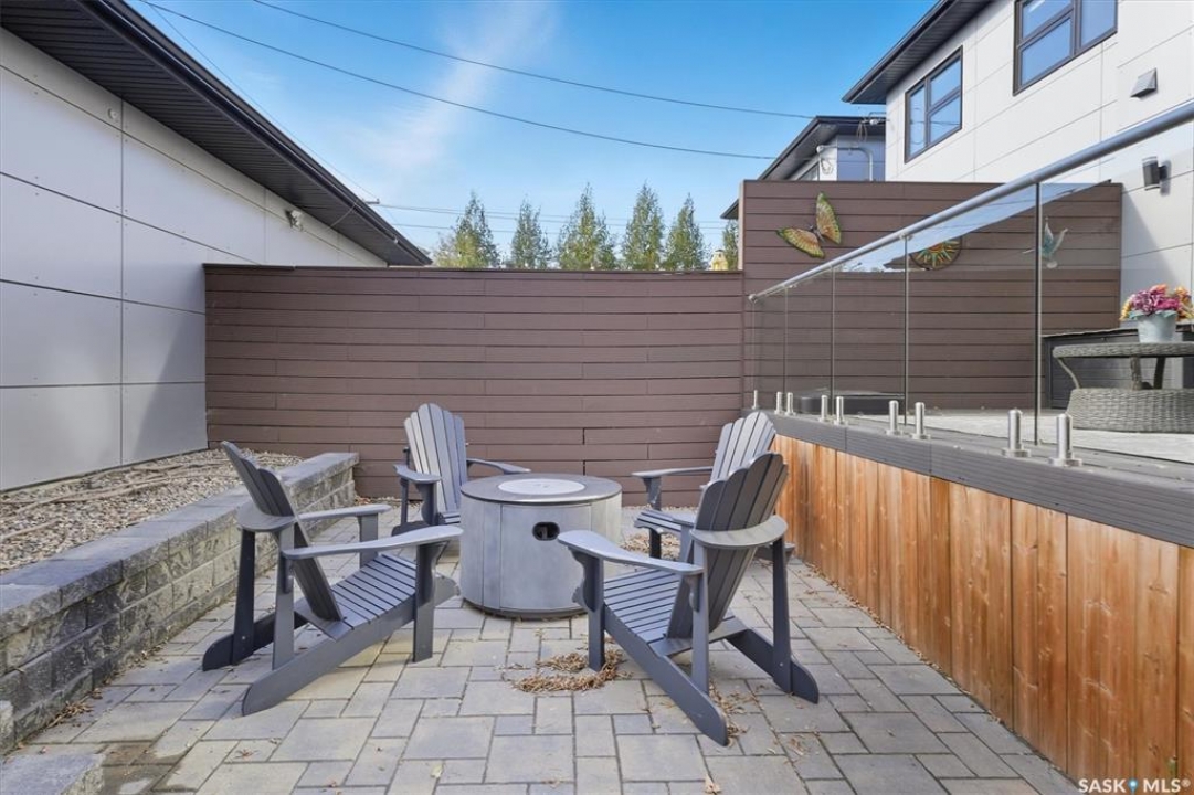 OPEN HOUSE SUNDAY MAR 8th 1-3PM. Welcome to 1106 7th St E. This stunning 1,897 sq. ft. semi-detached two-storey offers modern style and exceptional craftsmanship in the established Haultain neighbourhood. The bright, open concept main floor features 9-ft ceilings, large windows, and a stylish electric fireplace with built-in shelving. The chef's kitchen boasts high gloss cabinets, a massive quartz island, tile backsplash, and stainless steel appliances including a gas range. French doors off the dining area lead to a south-facing, maintenance-free deck and an insulated double detached garage. Upstairs, the primary suite impresses with a walk-in closet and spa-like 5-pc ensuite featuring a soaker tub, glass shower, and double sinks. Two more spacious bedrooms, a 5-pc main bath, and 2nd floor laundry complete this floor. Additional features include no carpet, custom closet organizers, open-tread staircase, pot lighting, and a side entry to the basement with 9-ft ceilings ready for development and a zeroscape yard featuring artificial turf in the front and a custom paving stone patio in the back. Call for your private showing today!!