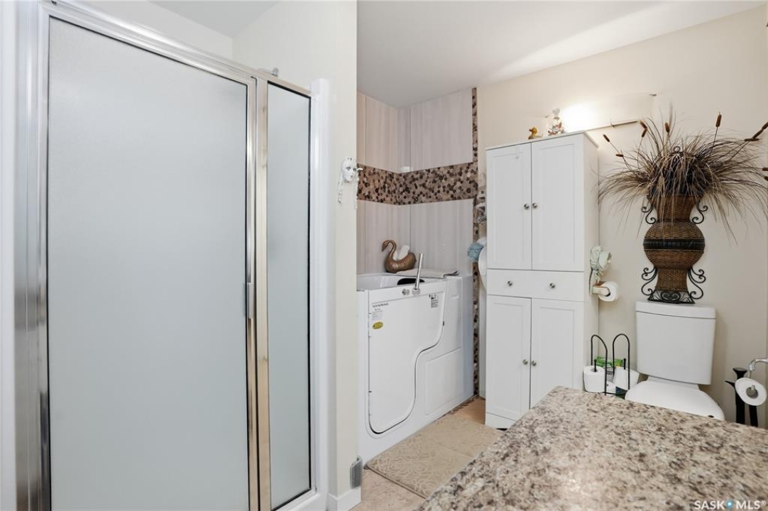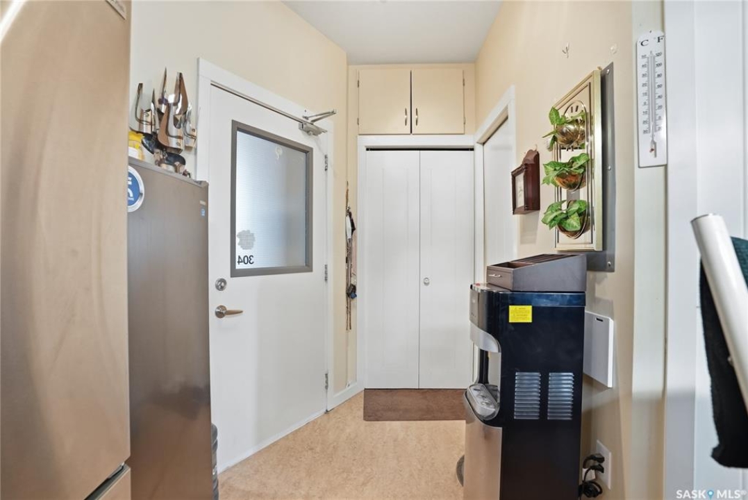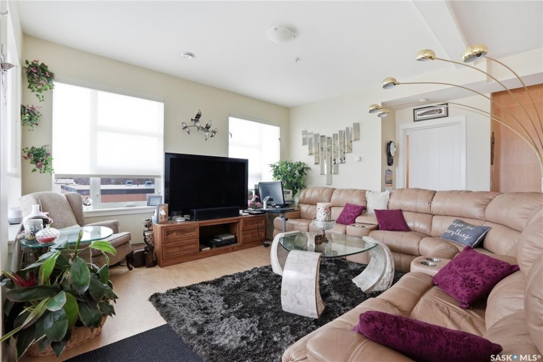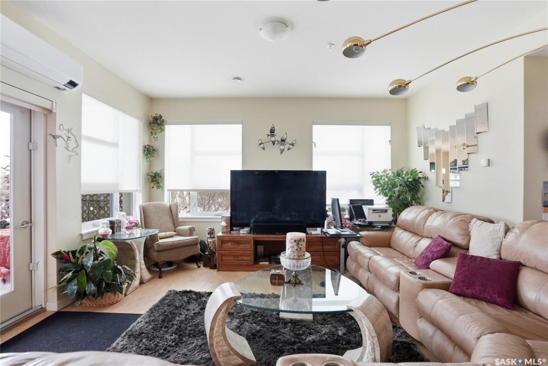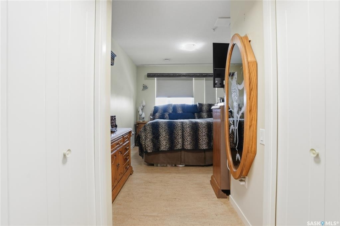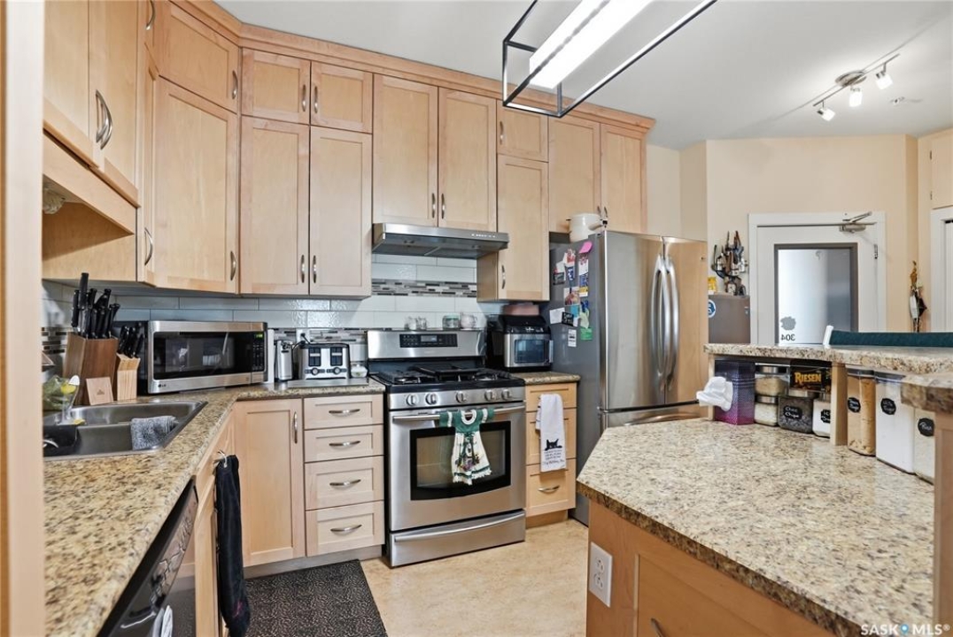 Welcome to another beautiful condo in this one-of-a-kind, community-driven complex in Riversdale. This unit offers 1,044 sq. ft. with 2 bedrooms and a spacious 4pc bathroom featuring both a separate tub and shower. Durable Marmoleum flooring runs throughout, and large north-west facing windows fill the space with natural light, perfect for enjoying sunsets. The foyer leads to an updated kitchen with a bar-style eat-up island, high-end stainless steel appliances, a Bosch dishwasher, gas stove, plus plenty of storage, including a large closet for extras. The generous master bedroom boasts two closets with direct access to the bathroom, while the second bedroom, located on the opposite side for privacy, offers ample storage and could serve as an office or hobby room. Owners share about 5,000 sq. ft. of common space with floor-to-ceiling hallway windows. The building features a new boiler system, in-floor heating, and abundant daylight. Amenities include a sauna, art room, exercise space, wood working shop and a large, welcoming dining hall and lounge that hosts private and public events. Outside, enjoy a lush community garden, two patios, and a rooftop deck for warm evenings. Additional perks include guest suites, secure covered parking, and a smoke-free environment, with the building partnered with SES Solar Cooperative. This is truly a unique community offering an exceptional lifestyle in the heart of downtown, steps from the Meewasin Trails, River Landing, shopping, and restaurants.