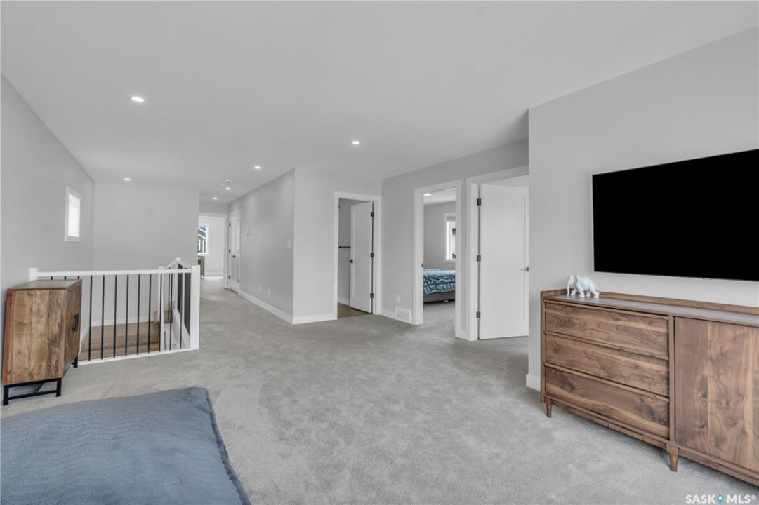 This exceptional, fully developed two-story residence offers 2,346 sq ft of impeccably crafted living space, complete with a triple attached insulated garage. The main floor welcomes you with a spacious mudroom and walk-in closet, flowing effortlessly into a custom walkthrough pantry adorned with cabinetry and quartz countertops. The contemporary kitchen, generous dining area, and inviting living room create an open, elegant atmosphere ideal for both entertaining and everyday living. A well-appointed half bath adds convenience to this level. Upstairs, the sun-filled primary suite boasts an expansive walk-in closet and a spa-inspired five-piece ensuite. Two additional bedrooms, a four-piece bathroom, laundry room, and versatile bonus room provide comfort and flexibility for the entire household. The fully developed basement offers a large family room, den, additional bedroom, and full bathroom, extending the home's living space. Premium upgrades include the custom pantry, concrete patio, air conditioning, and refined finishes throughout. Front landscaping will be completed by the developer, and the home's remaining warranty will be transferred to the new owners. Perfectly positioned just steps from schools, Costco, and all the amenities of The Meadows.