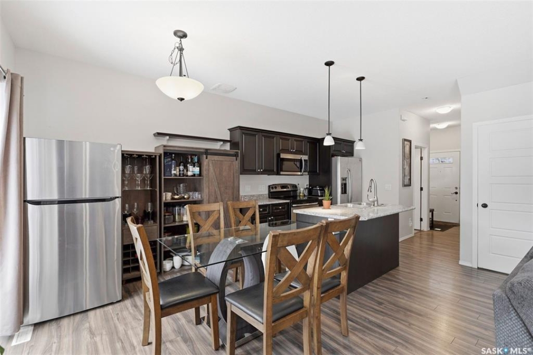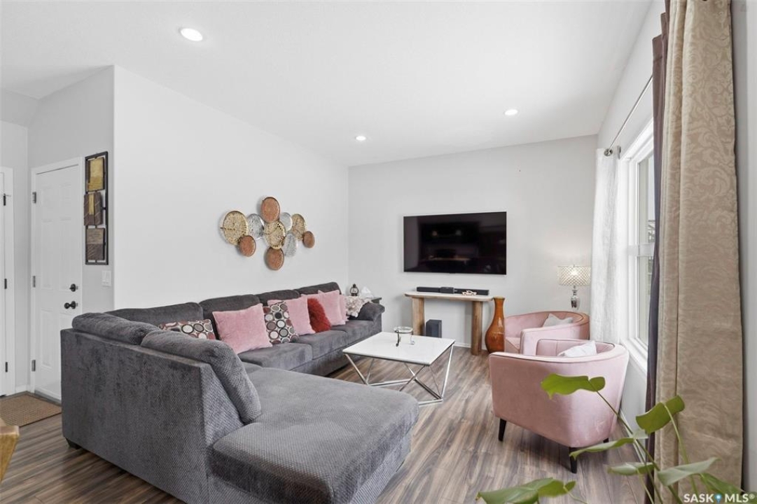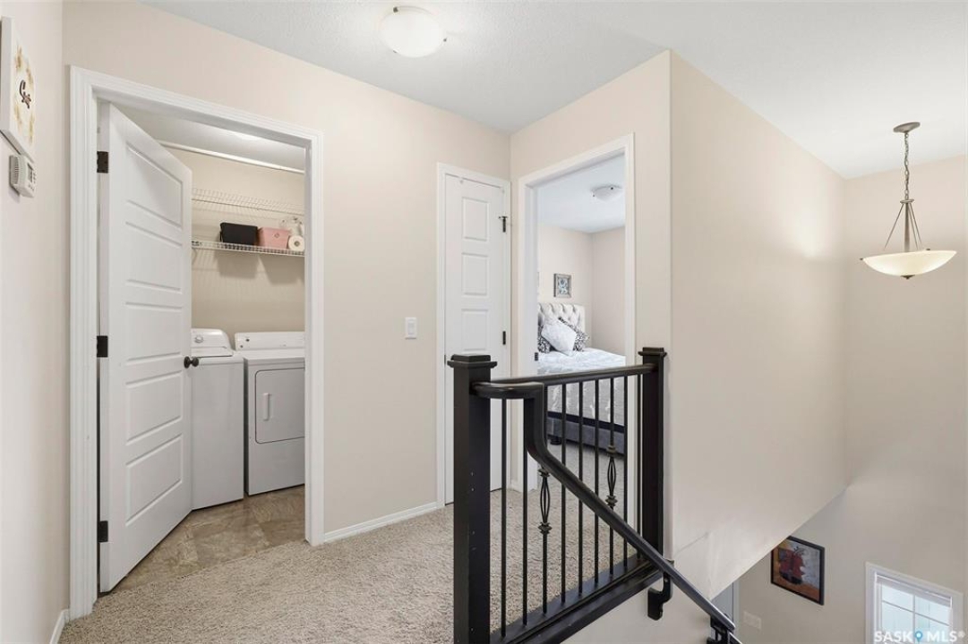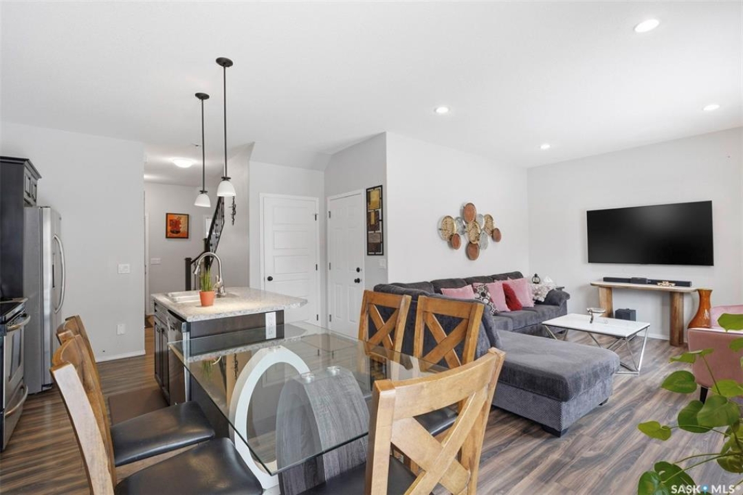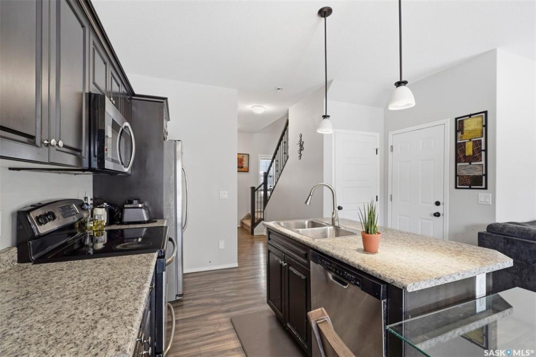 Experience relaxed community living in Little Tuscany, where the atmosphere feels more like a lakeside retreat than a typical city neighbourhood. A charming covered front porch welcomes you in an inviting space. Step inside to a bright foyer with convenient access to the insulated attached garage and private driveway, a practical feature during Saskatchewan winters. The main floor is designed for both comfort and entertaining, featuring an open-concept layout that seamlessly connects the kitchen, dining, and living areas. The kitchen stands out with espresso cabinetry, stylish countertop, a functional island while large windows in the living room bring in abundant natural light. From the dining area, garden doors open onto a sun-filled deck overlooking a private backyard complete with vinyl fence, patio space, garden beds - all with the tranquility of parkland behind. Upstairs, the primary suite offers a relaxing retreat with a walk-in closet, a spacious 4 piece ensuite & calming views. 2 additional bedrooms, a second full bathroom, and the convenience of upper-floor laundry make everyday living easier. The finished basement expands your living space with a stylish family room, a Den or Office Space & a Full Bath. Additional features include central AC & underground sprinklers. The Unit also grants you access to some wonderful Extra Amenities/Perks such as - GYM, Basketball Court & and a lounge with a Beautiful stone fireplace. With nearby shopping, scenic walking trails, and easy access to the lake, this home delivers comfort, privacy, and an exceptional lifestyle in one of Saskatoon's most unique communities. Call TODAY to Arrange a Viewing.