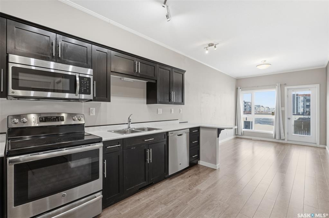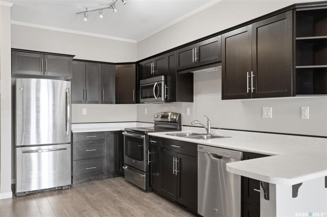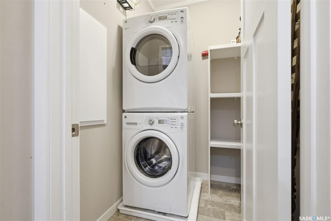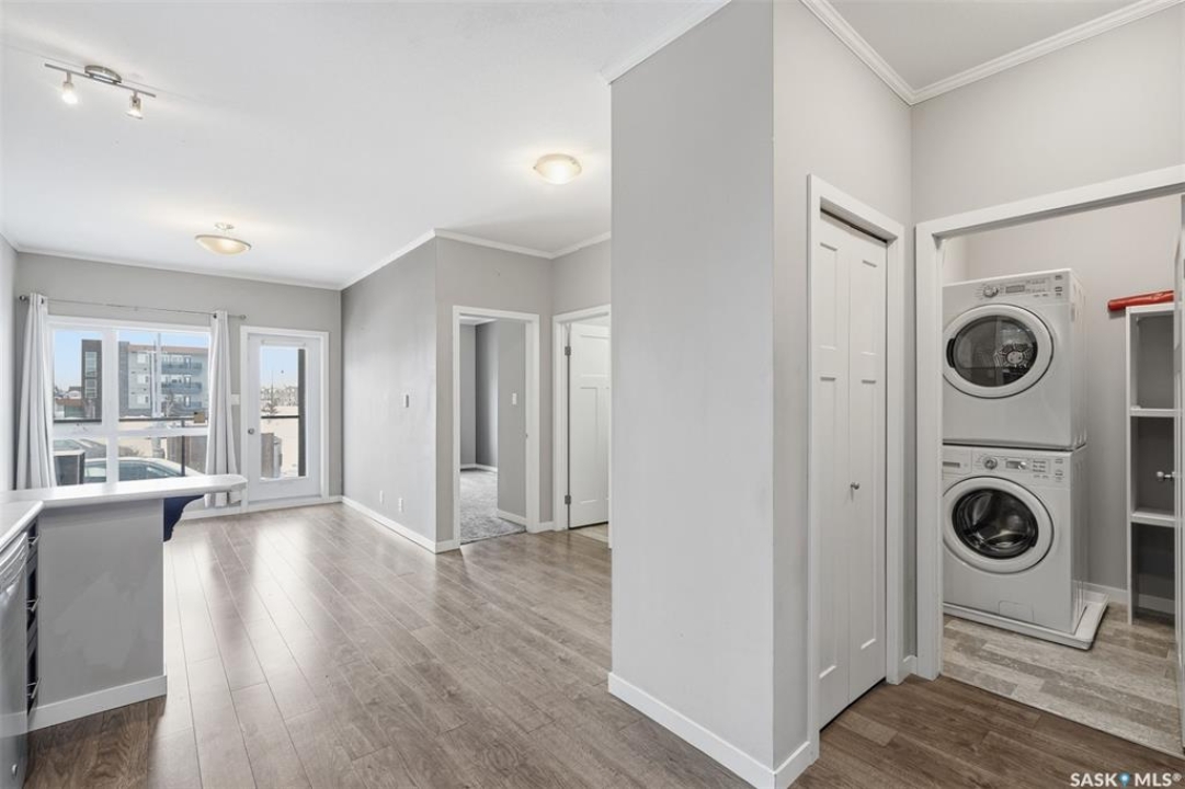 Welcome to this bright and inviting 1-bedroom condo located in the sought-after Kensington neighbourhood of Saskatoon. This well-maintained condo features large windows that fill the space with natural light, along with a modern kitchen with updated finishes and a stylish bathroom. Enjoy the convenience of in-suite laundry with a washer and dryer, as well as air conditioning to keep you comfortable during the warmer months. This condo also includes one underground parking stall, easily accessible by the building's elevator, offering secure and convenient parking year-round. Situated in the growing Kensington community, you'll be close to parks, walking paths, shopping, and other everyday amenities, making it an ideal location for comfortable living. Perfect for professionals, students, or anyone seeking a low-maintenance and convenient lifestyle. Contact your Realtor today to schedule your private showing.