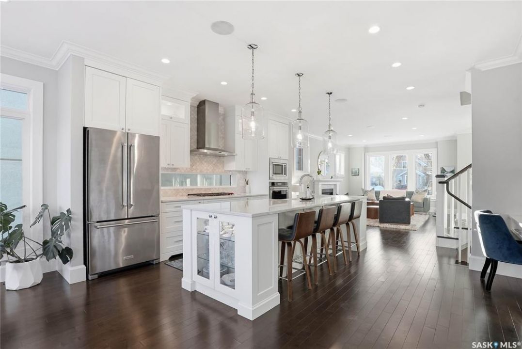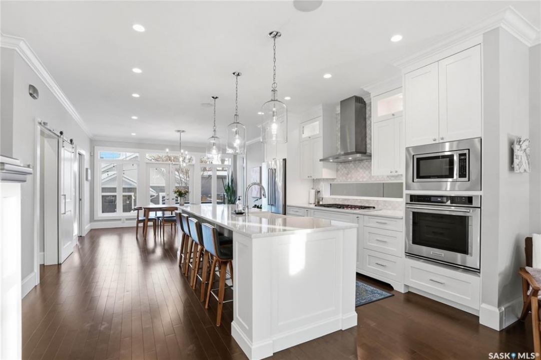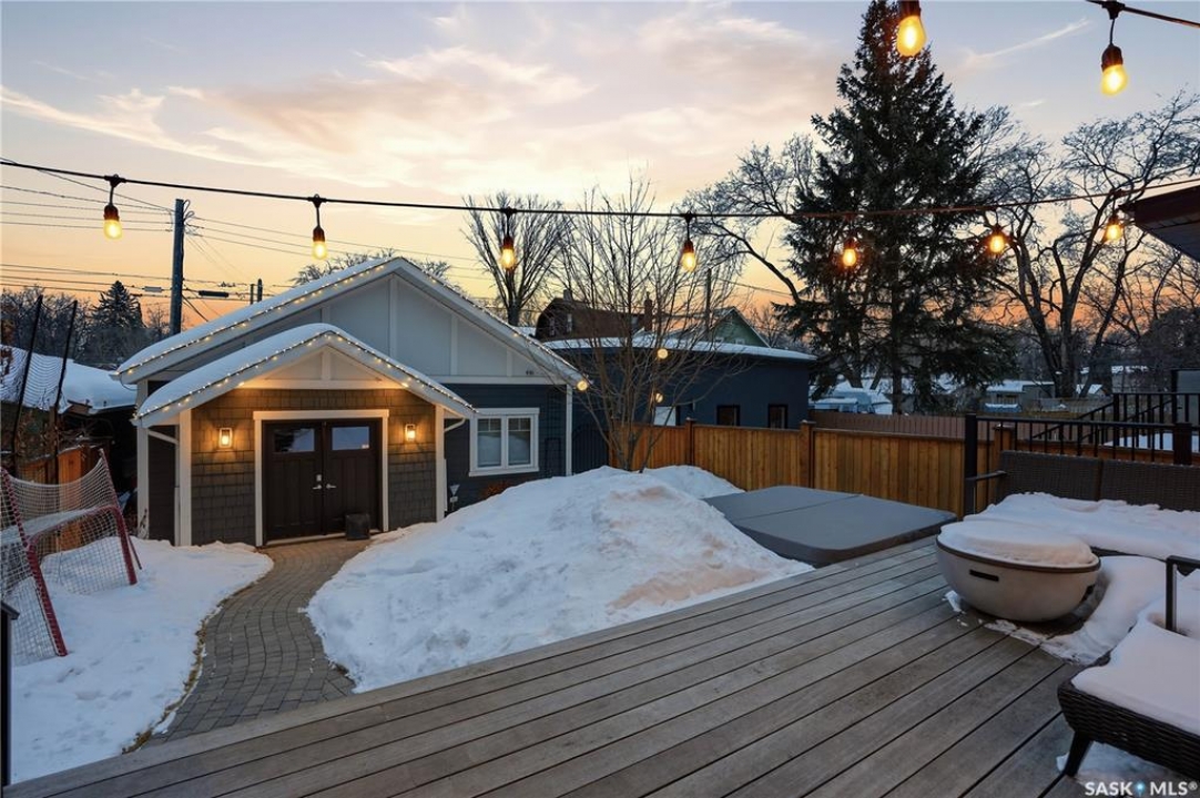 Welcome to 511 Lansdowne Avenue — a beautifully designed 5 bedroom, 4 bathroom home located in the heart of Nutana, offering exceptional space, comfort, and high-end finishes custom built by Haven & Co. Inside, 9-foot ceilings on both the main floor and basement create an open, airy feel throughout. The main living areas flow into a well-appointed kitchen featuring a 5-burner gas cooktop and large walk-in pantry, ideal for everyday living and entertaining. Gas fireplaces in both the main living room and downstairs family room add warmth and comfort. Upstairs laundry adds convenience, while heated tile flooring in the bathrooms and mudroom brings an added level of comfort. Automatic electric blinds and a 4-zone HiFi audio system with AirPlay add thoughtful modern convenience throughout the home. This home includes a long list of upgrades, including a 3-zone furnace with central air conditioning, on-demand hot water with recirculating pump, and a 200-amp electrical panel with service to the garage. A 5kW grid-tied solar system helps improve energy efficiency. Outside, the professionally landscaped yard is designed for both function and relaxation. Enjoy a high-end epay wood deck with custom privacy wall and hot tub, paving stone walkways, underground sprinklers with WiFi controller, and cedar fencing. The heated garage is equally impressive, featuring in-floor radiant heat with fan coil supplied by a boiler system, an in-slab floor drain, oversized 18' x 9' insulated garage door with side-mount opener, and built-in ladder access to the large attic storage space. Located just a few blocks from the South Saskatchewan River and Saskatchewan Crescent East, with easy access to Broadway, downtown, the University of Saskatchewan, Saskatoon City Hospital, Royal University Hospital, & Jim Pattison Children's Hospital. Offering quality finishes, extensive upgrades, and exceptional attention to detail throughout - don't miss the opportunity to make it yours!