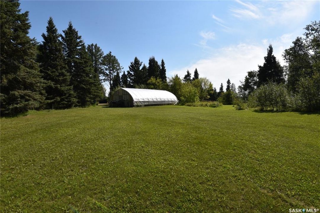 Have you been searching for an acreage with the convenient amenities, the privacy and maturity that evoke all the right feelings? Attention gardeners, hunters and outdoor enthusiasts. This acreage has been lovingly owned by the same family for over 40 years. Plenty of scenic vistas, fruit bearing trees and a maturity that only the passing of time can conjure up. Located only 12 miles from the Town of Nipawin and 8 miles from the Village of White fox, this property is the kind of place to make lasting memories with your family. You'll appreciate the space inside the large bungalow home sitting atop a concrete walkout basement with a deck that overlooks the beautiful green space below. Large kitchen and dining areas conveniently located only footsteps away from the privacy of your outdoor oasis. There is also a 2 piece bath conveniently located off the entrance to the attached 24x28 garage. Currently configured with 4 bedrooms and 3 baths with enough space to add if desired. There is also a separate entry to the basement via the walkout, plenty of space here for a bed and breakfast or basement suite. Need some shop space for your toys and equipment? You'll love the 32 x 36 detached shop with concrete in floor heat and 12' ceilings. Other outbuildings include your very own 24x48 greenhouse with optional heat and 5 storage sheds. Other features include 60' deep well, surface disposal of grey water and natural gas. This one will check many of the discerning buyers boxes. Call today for a list of recent updates and arrange your showing of this one of a kind property. You'll be glad you did!