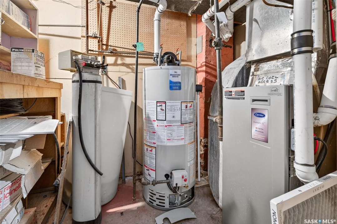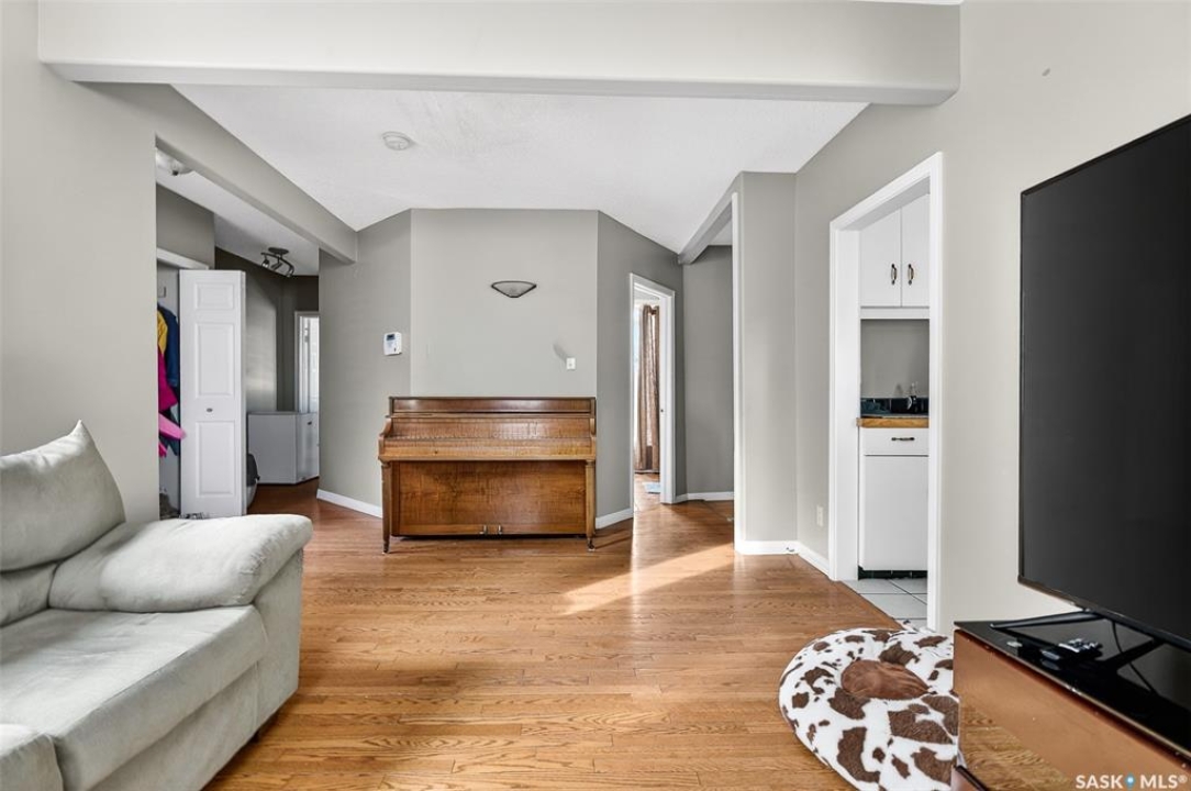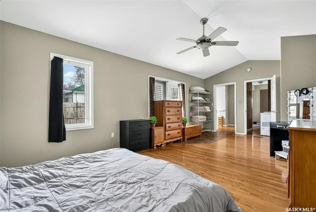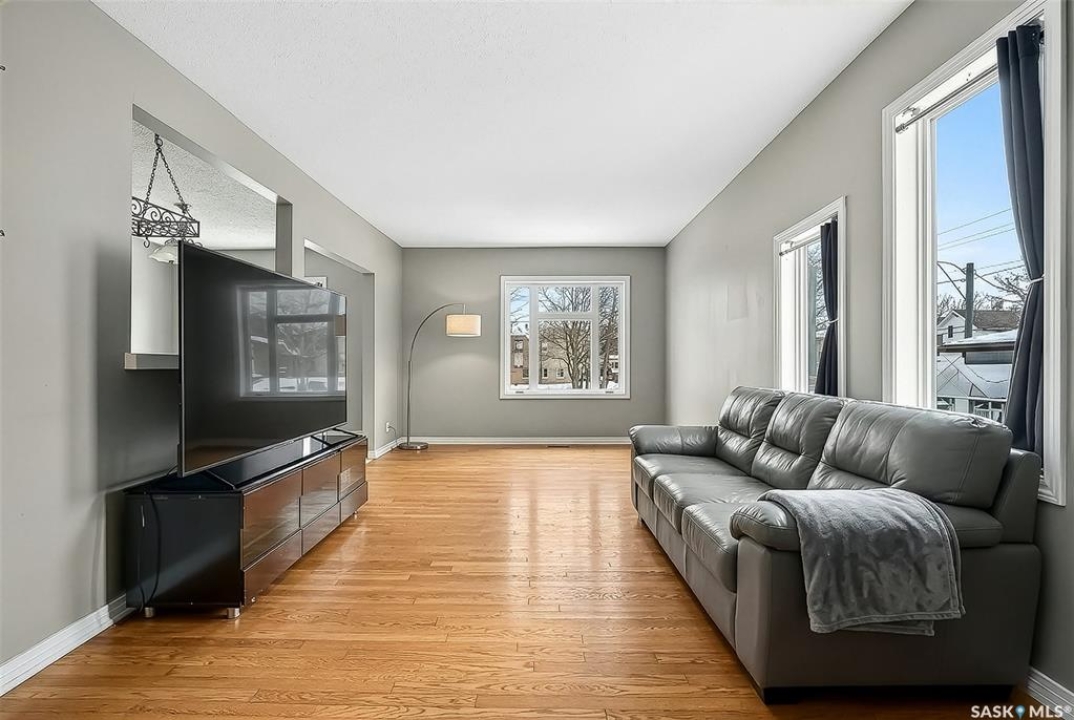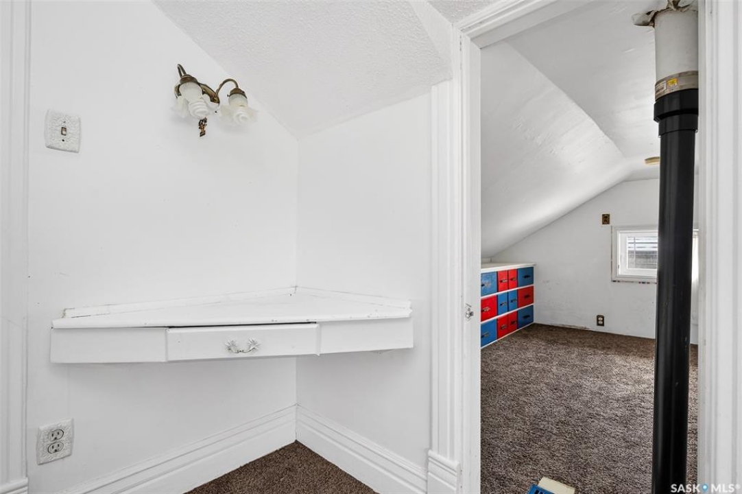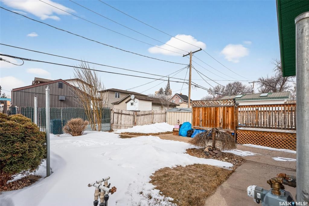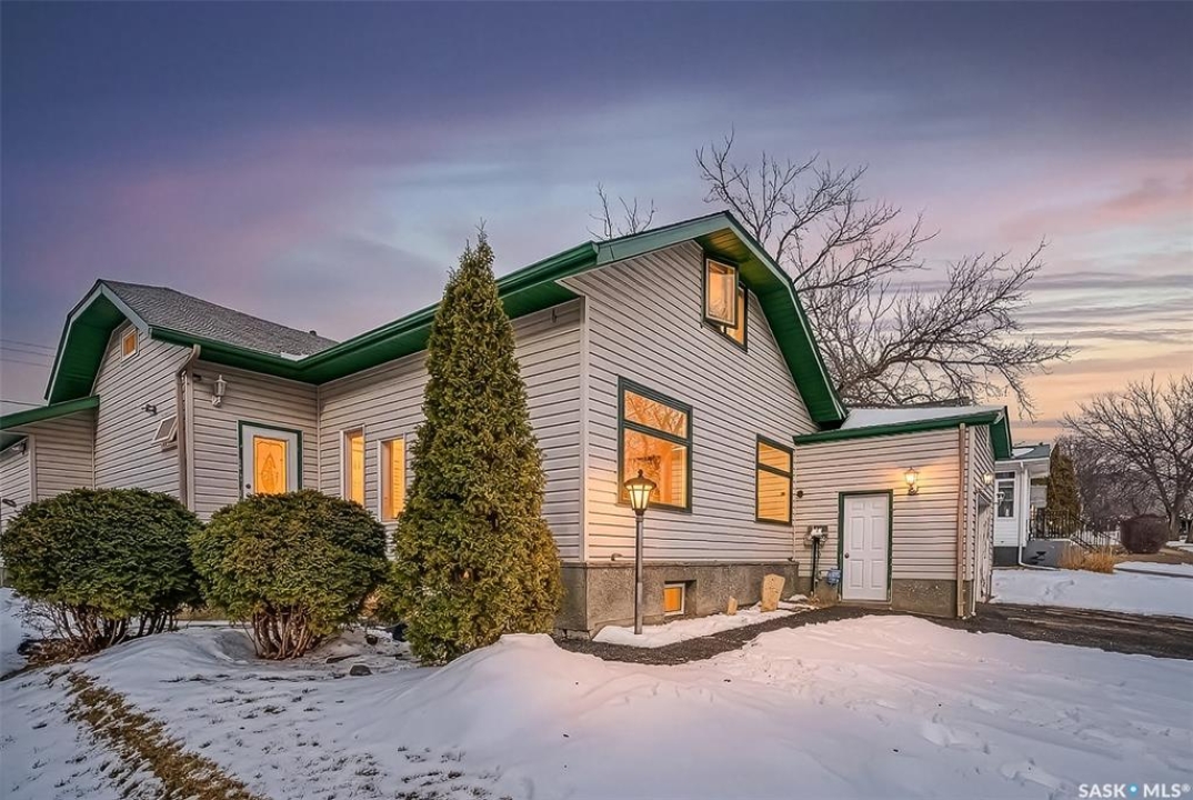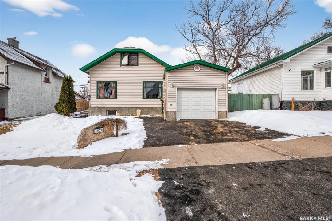 Welcome to 1032 GRAFTON AVENUE, ideally situated in the heart of the beloved “AVENUES,” a neighborhood celebrated for its heritage character & proximity to downtown Moose Jaw. This enchanting 1 �-storey home blends warmth, functionality, and distinctive design, offering a thoughtfully crafted floor plan with abundant storage. The inviting main floor showcases a generous living room with hardwood floors, seamlessly flowing into a bright kitchen, featuring newer stainless steel appliances, ample cabinetry, and a comfortable dining space. DIRECT ENTRY to your ATTACHED 35' long insulated garage w/ electrical heat. A versatile bonus room provides the ideal setting for a home office or playroom. The spacious (23' deep!) primary bedroom serves as a private retreat, featuring patio doors that open onto a tiered deck overlooking your landscaped backyard oasis complete with hot tub area (HOT TUB INCLUDED). The beautifully renovated main bathroom offers heated tile floors, a full walk-in shower, double vanity sinks, and convenient dual access connecting the primary suite to the main living area. Upstairs, two elongated bedrooms provide cozy yet spacious accommodations, including one with an oversized nook perfect for additional storage, reading corner, or an expanded closet, along with convenient 2-pc bathroom. The developed basement expands your living space with a large family room or flex area for recreation or media, a dedicated laundry room, and an additional shower for added convenience. Significant updates—inc. windows (2010), upgraded electrical, water heater (2021), HIGH-EFFICIENT furnace with central air conditioning, shingles (2016), underground sprinklers (as is – unused for 2 seasons), updated vinyl siding/eavestrough/fascia—all ensuring this character-filled home is as dependable as it is inviting.