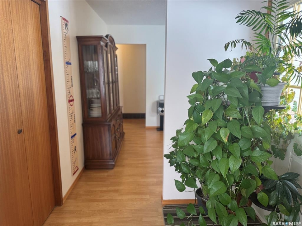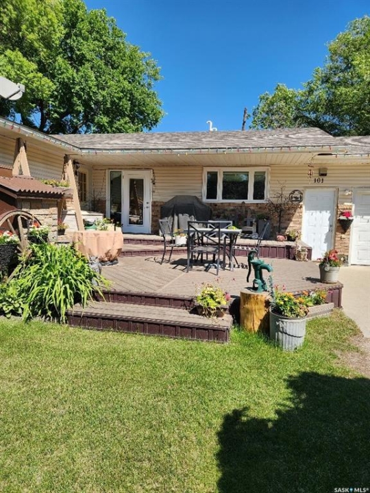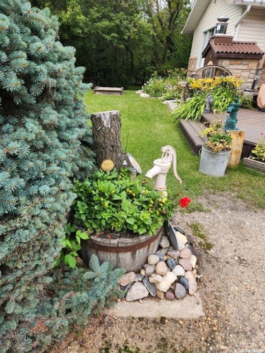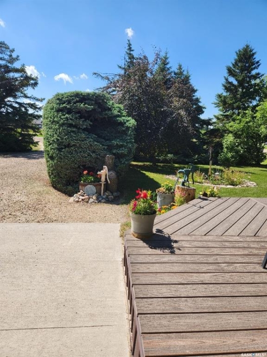 Located on a beautifully maintained 1-acre property on the outskirts of Annaheim, this acreage offers peaceful country living with plenty of space to enjoy. The meticulously landscaped yard features expansive greenspace, mature trees, and a large garden area—perfect for those who appreciate outdoor living and room to grow. A spacious Trex deck spans the front of the home and includes a charming clay wood-burning pizza oven, creating a wonderful space for entertaining family and friends while enjoying the surrounding countryside. This extremely well-maintained 1,408 sq. ft. bungalow, built in 1971, has been cared for throughout the years with numerous updates. The main floor features laminate flooring throughout and a beautiful custom kitchen with quality cabinetry, a large island, and all appliances included. The dining room is located at the front of the home and features garden doors that lead directly to the maintenance-free deck. The spacious living room is slightly offset, providing a comfortable area to relax and enjoy TV without interruption. The main floor also includes three bedrooms and a well-appointed 4-piece bathroom located at the rear of the home. A convenient side entry leads to the developed basement, which offers a family room, two additional bedrooms, a 3-piece bathroom, and a utility/storage/laundry area with washer and dryer included. The heated triple garage measures 36' x 24' and features a 10-ft overhead door on the outside bay, providing excellent space for vehicles, storage, or workshop use. Numerous upgrades over the years include the furnace, central air conditioning, air exchanger, water heater, kitchen cabinetry, and flooring. Annaheim offers a K-12 school and is within walking distance to Doepker Industries. The property is also conveniently located just 25 minutes from Humboldt and approximately 45 minutes to the BHP mine site. Don't miss this well-maintained, easy-to-manage acreage opportunity.