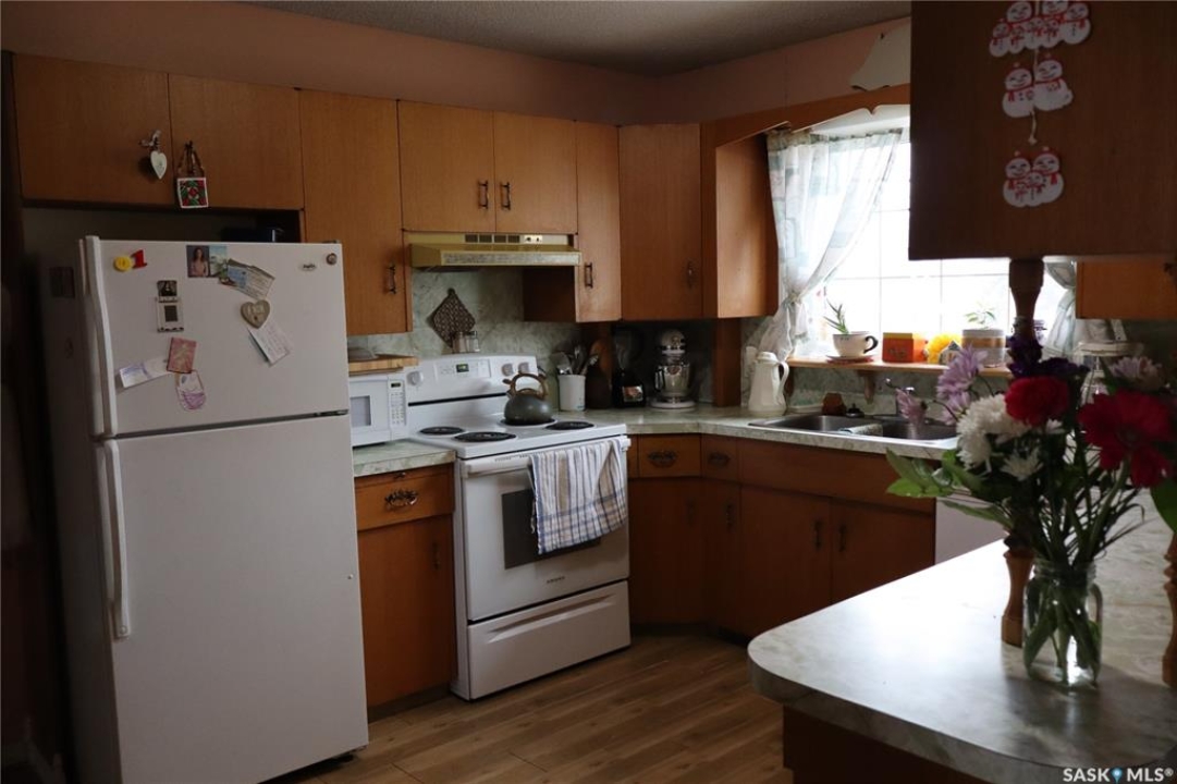 Located in the Historic Town of Gravelbourg. This property features a 1,739 sq. ft. bungalow with a full basement, double detached garage (30' x 36'), 3 bathrooms, 7 bedrooms, sunken living room, jet tub, and hot water heated basement floors. An awesome property for a large family. You might also want to develop the basement into a separate revenue suite. Additional highlights include an insulated wood basement, 2" Styrofoam under the vinyl siding, and front and back lawns with apple trees and grape vines. The Gazebo features a wood burning stove. The windows remove to enjoy the summer breeze. Very large, tiered deck with access from the dining room. The fenced yard is great for pets. New shingles. Lots of parking. Have a look today!