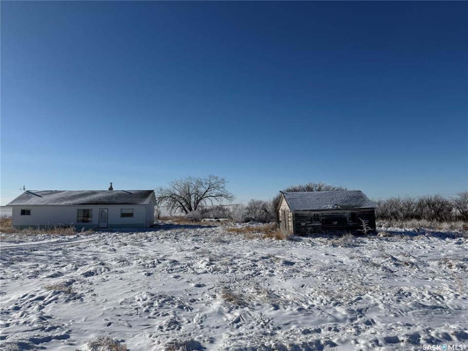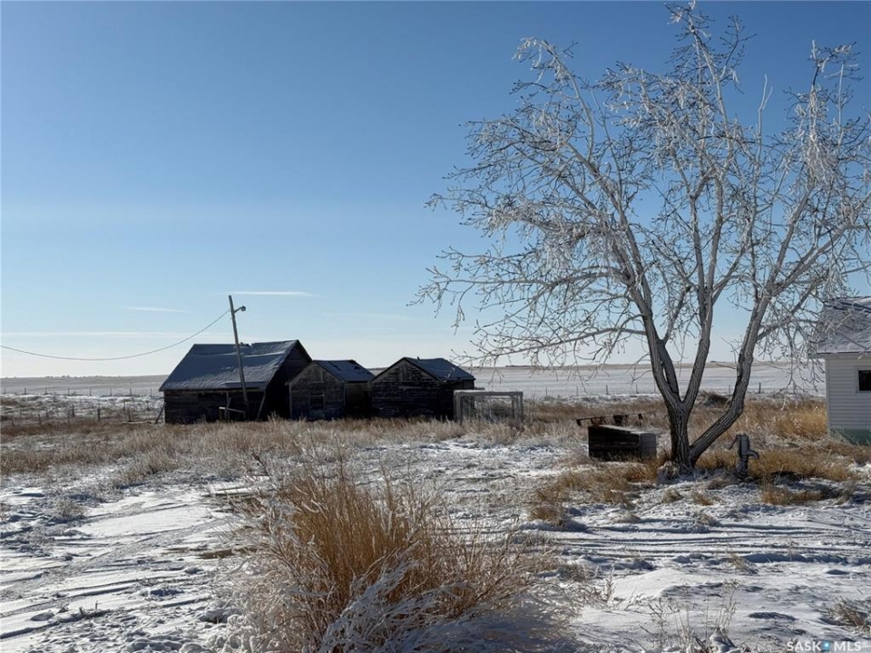 SE-08-29-21W3. Opportunity awaits just east of Kindersley! This approximately 15-acre yardsite offers plenty of space with a mix of open yard and partially fenced pasture land. The property includes a 735 sq ft home built in 1950 that is currently not livable, offering potential for renovation or redevelopment. Also located on the yard are four wood sheds providing additional storage. With acreage living close to town, this property presents a great opportunity for those looking for space and potential. Call today for further information.