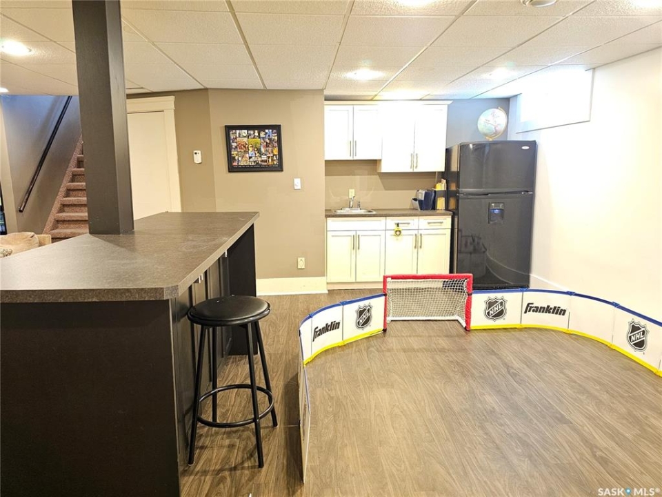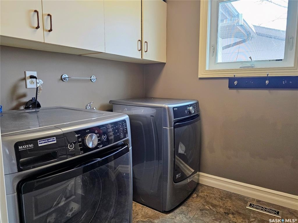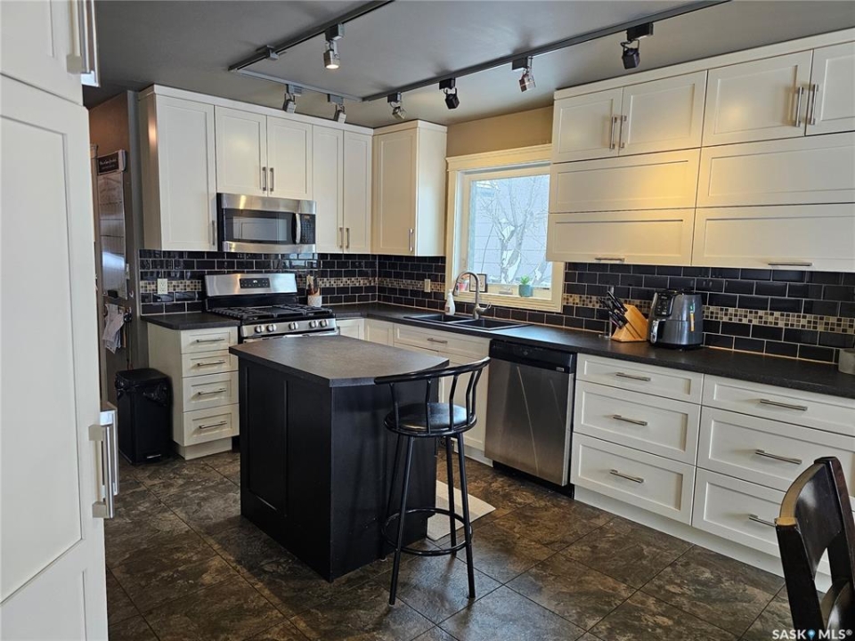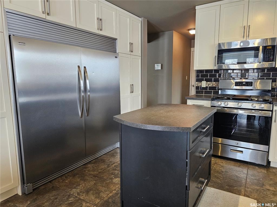 Prime location backing onto park and green space! This spacious 1,659 sq. ft. bungalow offers 5 bedrooms, 3 bathrooms, and a heated 24' x 24' attached garage, making it an excellent family home in Humboldt. The main floor features a large kitchen and dining area with stainless steel appliances, including a gas stove, high-end side-by-side full fridge and freezer, and a functional kitchen island, perfect for cooking and entertaining. You'll also find convenient main floor laundry, a primary bedroom with 3-piece ensuite, plus two additional bedrooms and a full bathroom. The fully finished basement provides outstanding additional living space with a large family room, den/games area, wet bar with full fridge, two more bedrooms, and another full bathroom—ideal for entertaining or accommodating guests. Step outside to a beautifully developed backyard featuring a deck, patio, firepit area, garden space, mature trees, a storage shed, and an included hot tub, all backing directly onto park and green space for added privacy and outdoor enjoyment. Additional highlights include central air conditioning, central vacuum, gas BBQ hookup, and two fireplaces (gas and wood). A rare opportunity to own a large bungalow backing onto green space in Humboldt, close to parks, shopping, and amenities.