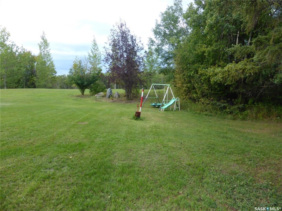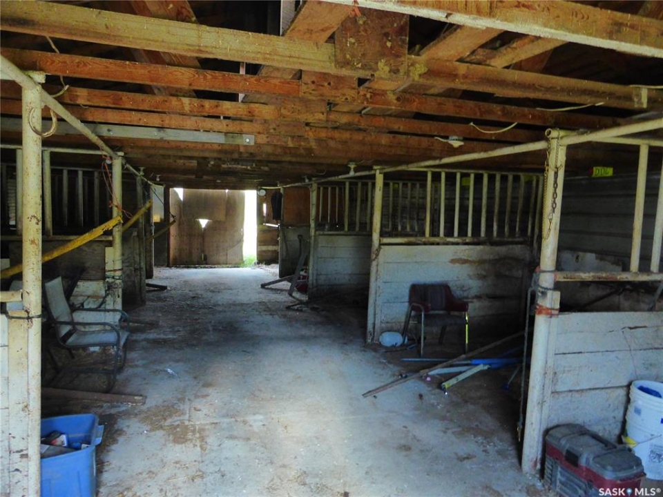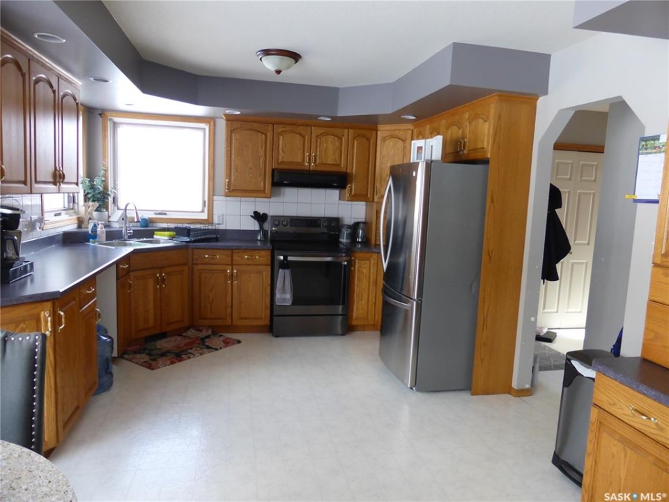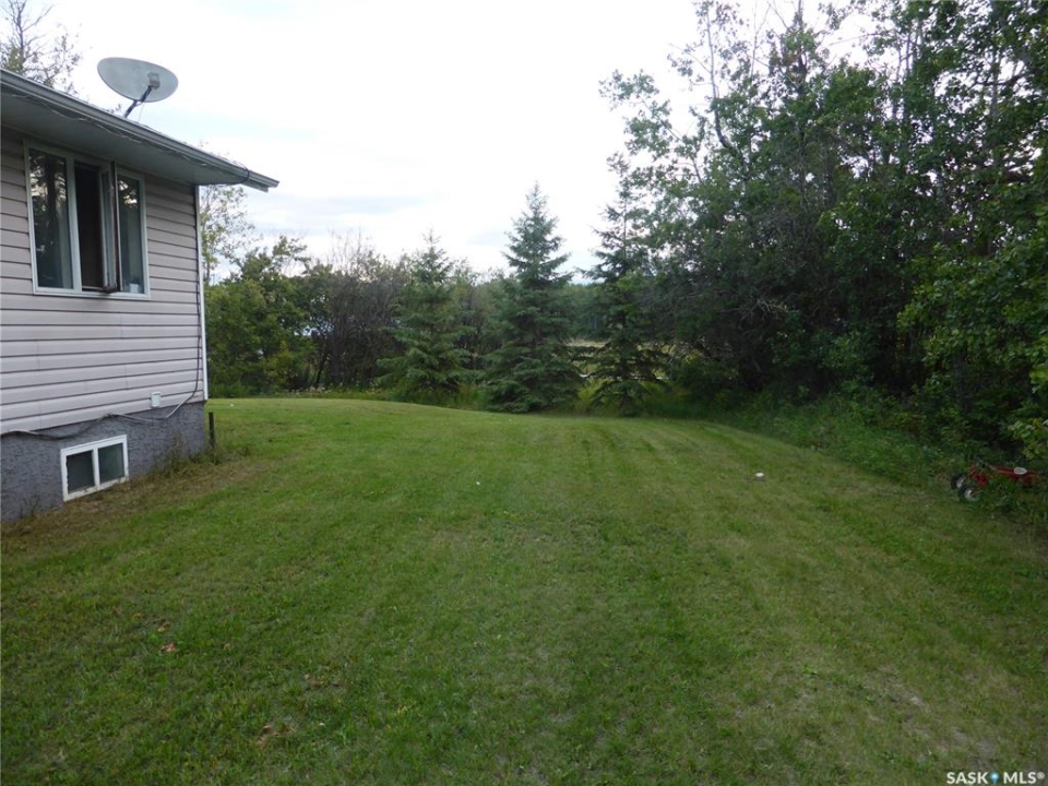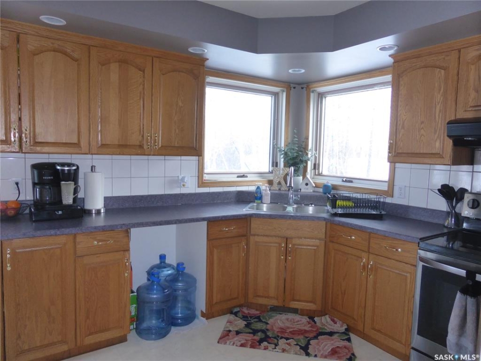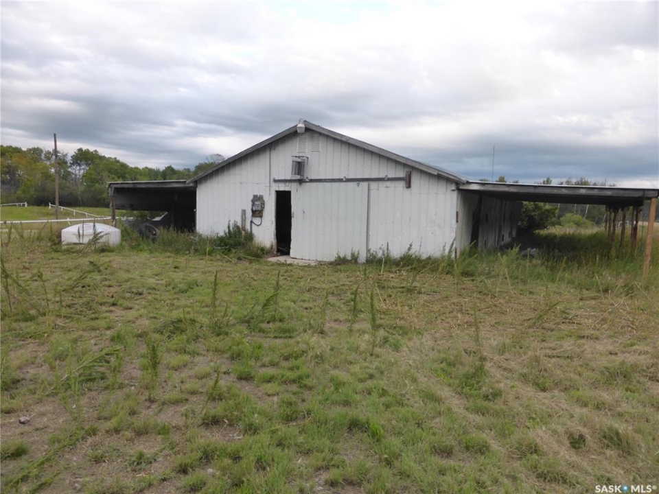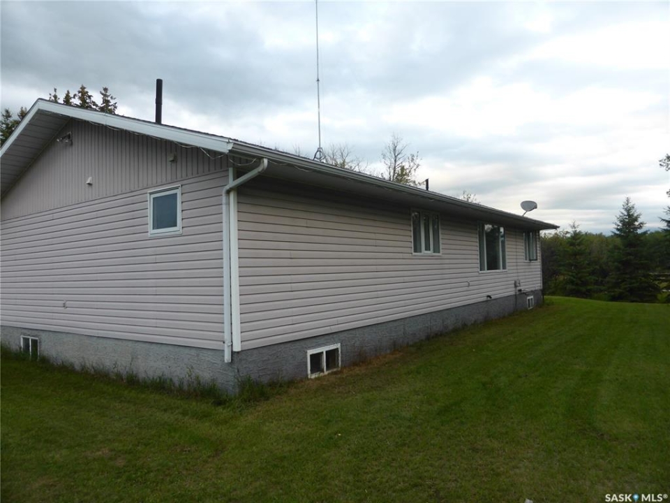 Welcome to the perfect acreage lifestyle! Situated on just over 5 acres only 1 mile from St. Walburg on Highway 26, this beautiful 1,692 sq ft home built in 1997 offers space, comfort, and country charm. Entering from the front deck, you are greeted by a welcoming entryway with a convenient 2-piece bathroom nearby. Just off the entrance is a flexible space currently used as a beauty salon, but it could easily serve as a home office or hobby room. The kitchen and dining area features abundant oak cabinetry, a corner sink, and a bright floor-to-ceiling bay window that fills the dining space with natural light. The large foyer opens into a comfortable living room with cathedral ceilings and a big picture window, creating a warm gathering space. Down the hallway are three bedrooms, including a large primary bedroom with closets leading into a 3-piece ensuite. Across the hall is a well-designed laundry center with storage cupboards and folding counter. A 4-piece bathroom completes the main floor. The basement is open for development, with one bedroom framed and a roughed-in bathroom. The home is currently heated with propane, with natural gas available nearby if desired. The property also features a cement septic tank. Outside, the yard offers plenty of grassy space for family activities, gardening, or summer evenings around a firepit. At the back sits an older horse barn with cement floor and stalls, ready to be brought back into use, along with operational water bowls in the corral area. The deep well draws from a large aquifer, providing an excellent water supply. Located minutes from St. Walburg, a welcoming community with a K-12 school, local businesses, and essential amenities, and within easy driving distance of Brightsand Lake, known for its sandy beaches and clear spring-fed water.