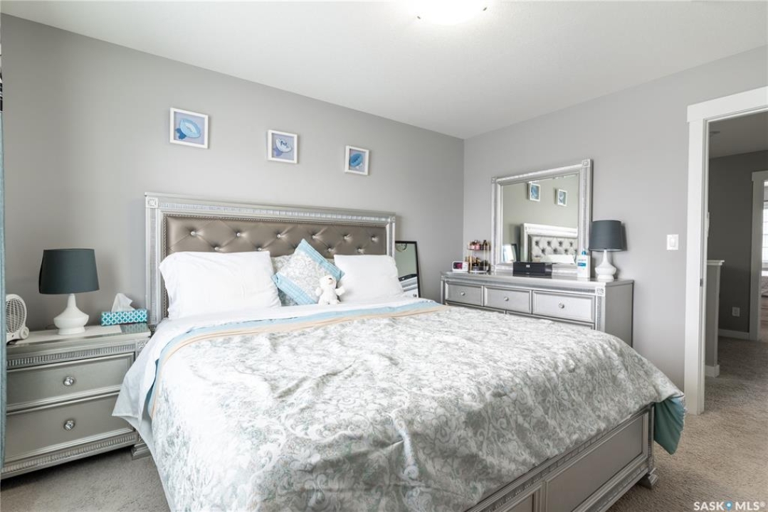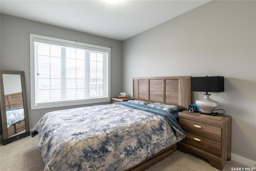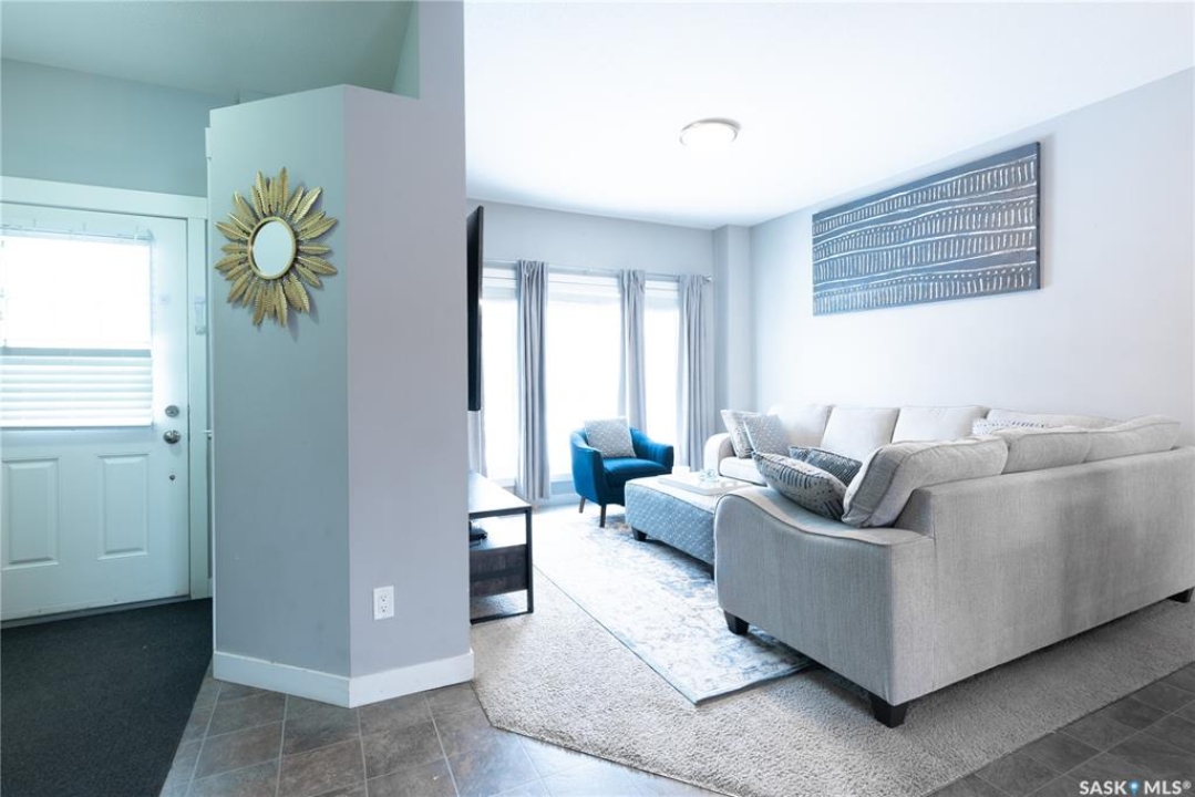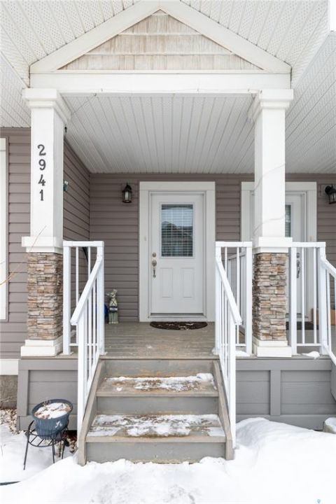 In Regina's most desirable neighbourhood HAWKSTONE , Welcome to this beautiful 1,471 sq. ft. two-storey semi-detached home designed for modern family living. The main floor features 9-foot ceilings that create a bright and open feel throughout the space. Enjoy a spacious living room, a large dining area perfect for entertaining, and a huge kitchen filled with natural light from multiple windows, offering plenty of counter space and room for cooking and gatherings. Upstairs, you will find three generously sized bedrooms, including a comfortable primary suite with a large closet and a private full ensuite bathroom. An additional full bathroom and the convenience of second-floor laundry complete this level, making everyday living easy and efficient. The fully finished basement adds excellent extra living space with a large recreational room, a good-sized bedroom, and another full bathroom, ideal for guests, extended family, or a private retreat. Step outside to enjoy a nice backyard, perfect for relaxing or outdoor activities. The home also includes a decent two-car garage located at the back, providing convenient parking and additional storage. This well-designed home offers space, comfort, and functionality across all levels, making it perfect for families or anyone looking for stylish and practical living. Book your showing today to see this beauty.