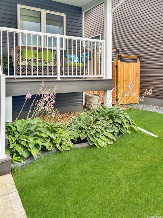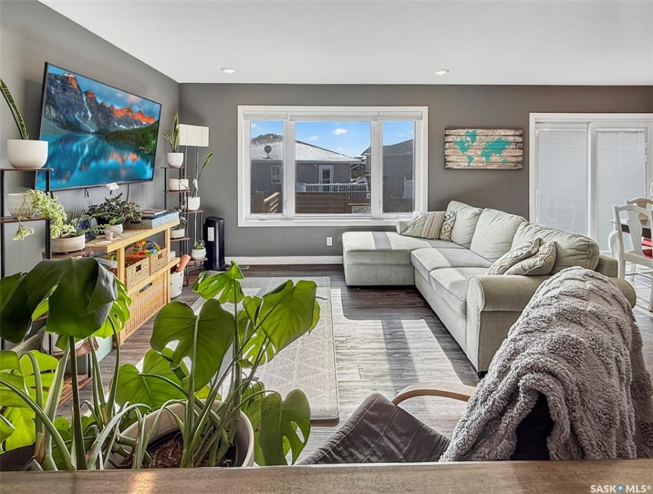 Welcome to 820 Battleford Trail — a 2016-built bungalow that blends country tranquility with convenient city amenities. Situated on the edge of highland, the home offers reduced traffic and expansive prairie views while remaining within the Centennial, École, and All Saints school bus catchments and close to city amenities. Constructed by a reputable local builder, the residence features a contemporary color palette and numerous high-end finishes. The private front entry provides easy access to an insulated double garage, plumbed for gas heat, and equipped with versatile storage solutions including ceiling-mounted racks that lower. At the front of the home you will find a bedroom or home office, a four-piece bathroom, and main-floor laundry for added convenience. The rear of the home presents an open-concept great room flooded with natural light from windows that span the back wall. The space is organized into a generous living area, a dining zone with patio doors to the deck, and a modern kitchen with white cabinetry, stone countertops, SS appliances, a walk-in pantry, and a large island ideal for entertaining. The oversized primary suite includes a substantial walk-in closet and a three-piece ensuite with a glass-tiled walk-in shower. The finished lower level offers an expansive family room with large windows, two additional bedrooms (one with a walk-in closet), a third full bathroom, a versatile den suitable for an office or playroom, and a modern utility room. Built with durable and efficient systems, the home includes an ICF block foundation, energy-efficient furnace, air exchange system, an on-demand hot water heater(3 years old). The fully fenced yard features a concrete patio with an adjustable privacy screen (new), under-deck storage, and established perennials and fruit bushes. If you are seeking modern construction in a desirable location that is move-in ready, this property warrants consideration. For more information please contact today.