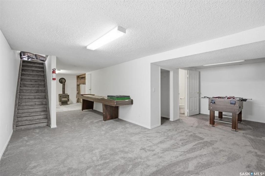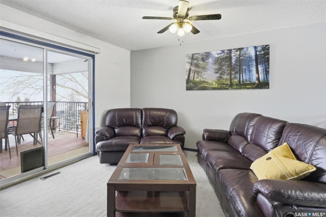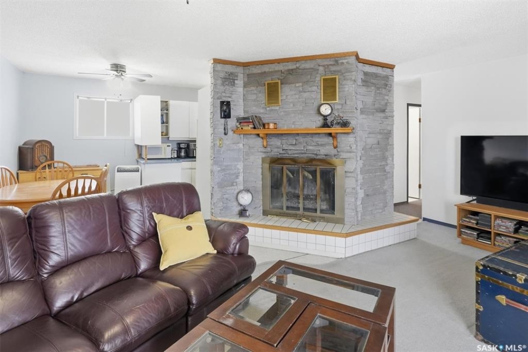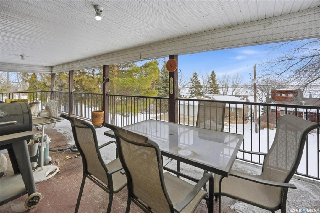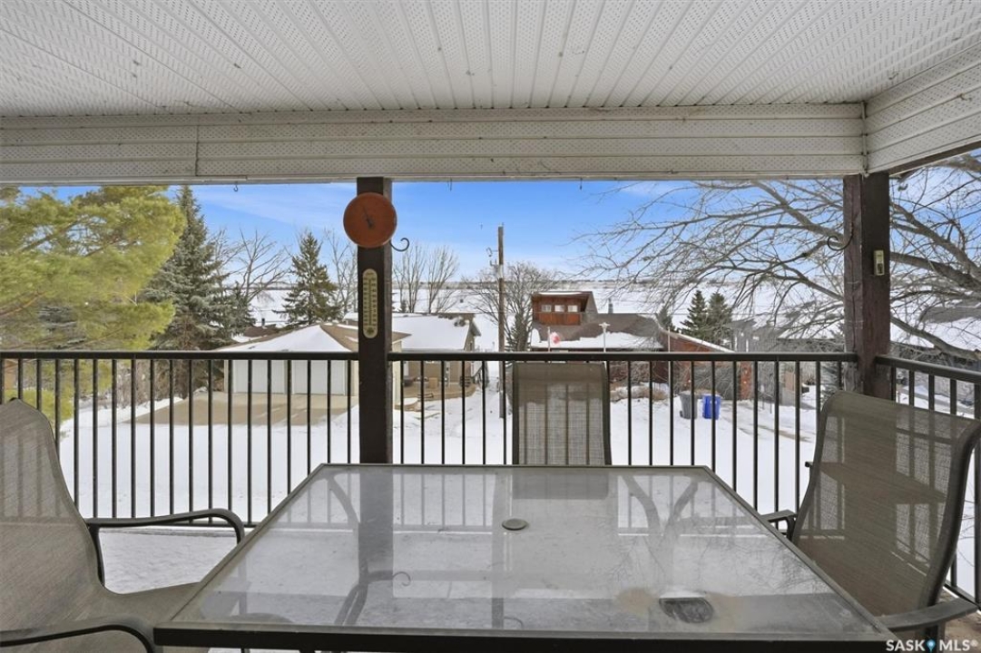This lovely walkout bungalow is located in the charming Resort Village of Shields at Blackstrap. This beautiful four-season home offers stunning lake views from its spacious 36' x 11' covered balcony, complete with updated railing — the perfect spot to relax or entertain. Inside, the main level features three comfortable bedrooms and a full four-piece bathroom. The cozy living room boasts a wood-burning fireplace and patio doors leading out to the deck, creating a warm and inviting atmosphere. The galley-style kitchen offers ample cabinetry and includes all appliances for your convenience. The lower level features a walkout with double doors to a covered patio, brand new carpet in the rec room, and an updated two-piece bathroom with a shower rough-in for future completion. The large utility room/laundry room has tons of room for additional storage. Recent upgrades include a new furnace (2025) and hot water heater (2023), making this home move-in ready and efficiently updated. Please note: the wood stove in the lower level is not included.