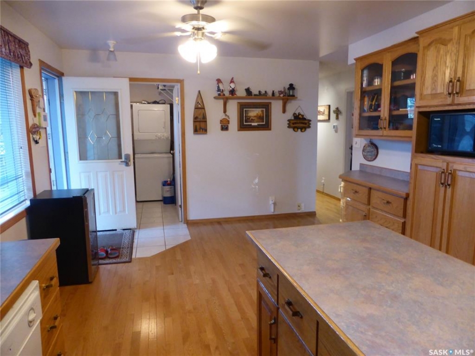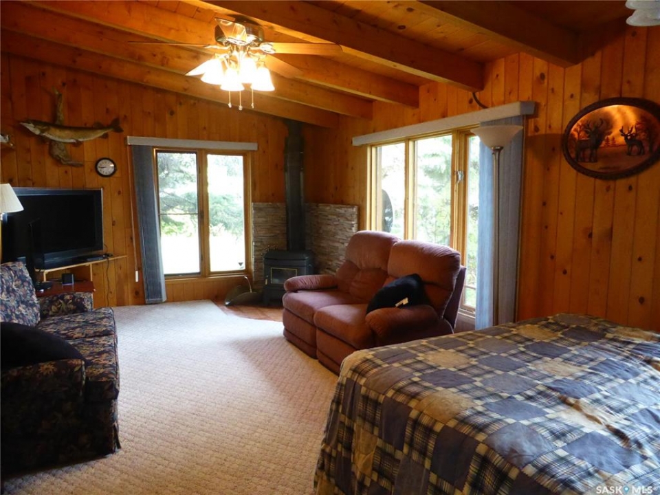 Lake life starts here! Welcome to this inviting lakefront cabin at Kopp's Kove on beautiful Turtle Lake, where sandy beaches, peaceful mornings on the deck, and evenings around the fire are simply part of everyday life. Located at 1550 Willow Ave, this 1315 sq ft, 3-bedroom cabin has been lovingly enjoyed by the current owners for over 20 years and is ready for new memories to begin. The cabin features an oak kitchen with hardwood flooring and dining area, plus a spacious living room with a natural gas fireplace. A bright family room addition with large windows offers beautiful water views and a cozy wood stove, perfect after a day on the lake or ice fishing in winter. There are three good-sized bedrooms and a convenient laundry/utility room with stacking washer and dryer. The furnace, water pressure system, and air conditioning (installed three years ago) are located in the crawl space. Outdoor living shines with a wrap-around deck and two-tier front deck, including a covered area (shingled in 2023) overlooking the firepit and yard. The property also includes a 14 x 24 insulated and heated garage and two storage sheds, one heated and wired for an extra fridge or freezer. The low-maintenance yard features cement and wooden walkways over the septic area, underground sprinklers for the front lawn, and easy access to the beautiful sandy beach. Water is supplied by a 1000-gallon cistern with Sandpoint system from the lake, or it can be hauled in during winter. The lot to the north is a public reserve, giving extra privacy with no close neighbours. Kopp's Kove also offers a great public beach and boat launch, and is less than a mile from a convenience store, bar, and restaurant. Come take a look—you'll want to stay!