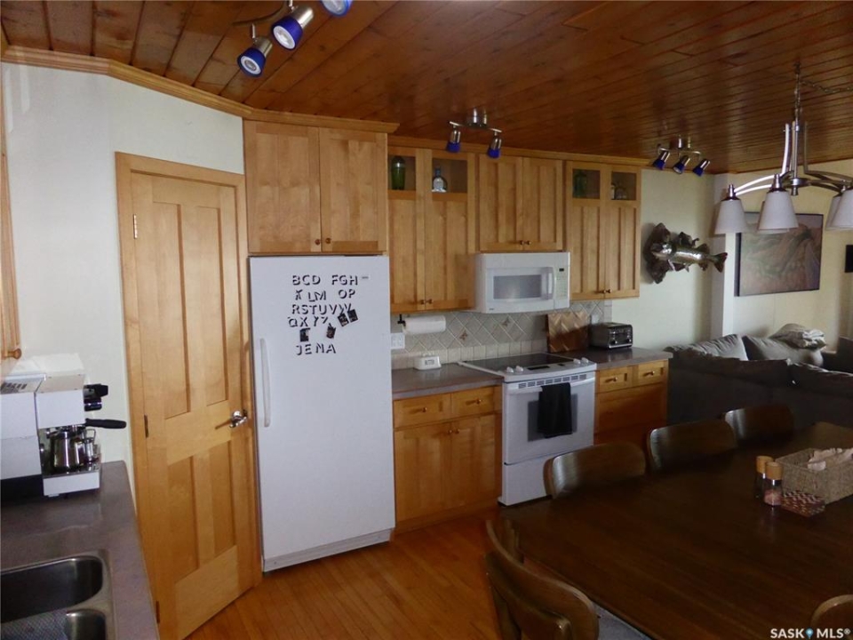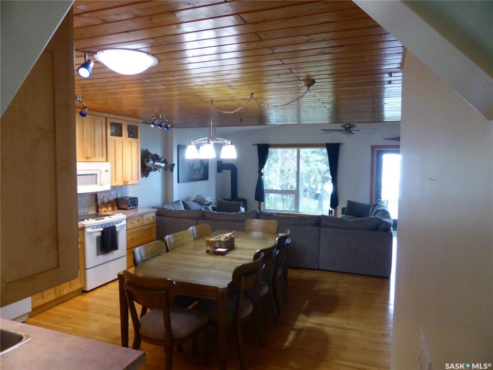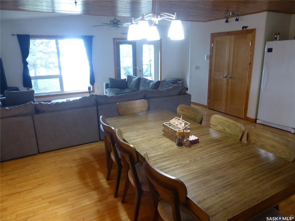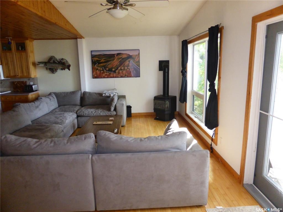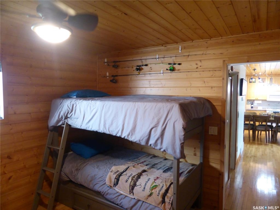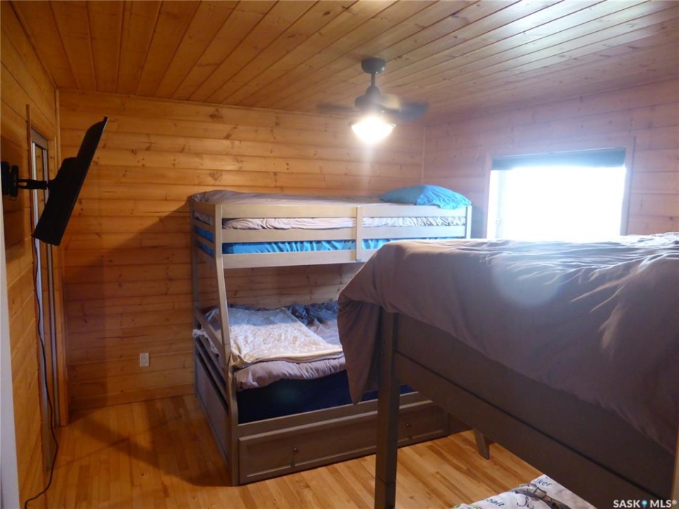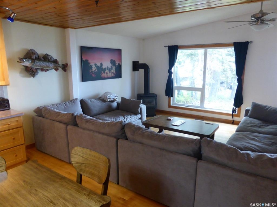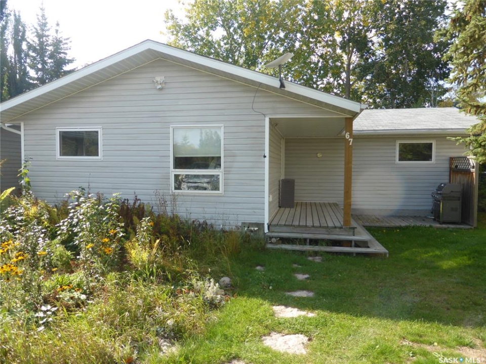 Welcome to your new lakefront cabin located in one of the most peaceful and secluded areas of Turtle Lake Lodge, part of the Resort Village of Turtle View. 67 Mathews Crescent sits near the south end of the crescent with only a couple of cabins beyond it, offering a quiet setting with a natural preserve behind the property and beautiful lake views in front. Turtle Lake Lodge is known for its quiet setting, natural surroundings, and excellent access to some of the best boating, swimming, and fishing Turtle Lake has to offer. This well-designed 1,536 sq. ft. cabin features 3 bedrooms and a layout that makes lake living comfortable and inviting. Enter from the street side through the covered deck into a welcoming foyer, conveniently located beside the laundry area and a 4-piece bathroom. Just off the foyer is a bonus room currently set up with bunk beds, along with another full bedroom featuring a queen-size bed. The heart of the cabin is the spacious open-concept kitchen, dining, and living area, all perfectly positioned to take in the peaceful lake views. Imagine starting your morning with a coffee overlooking the water and ending the day relaxing after time spent enjoying everything Turtle Lake has to offer. The Master Suite also enjoys water views and features warm pine walls, darker hardwood flooring, and beautiful lake-style décor. A convenient 2-piece ensuite completes this private retreat. The third bedroom is currently set up with two additional bunk beds, making it ideal for kids or extra guests. Outside, enjoy a combination of grassy yard and sandy shoreline leading down to your dock. The property is serviced by a shared well with an agreement in place. Whether your days are spent boating, swimming, fishing, or simply relaxing by the water, this property is the perfect place to build lasting family memories at Turtle Lake.