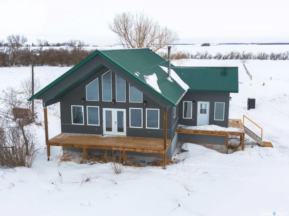 An incredible opportunity to own a 35-acre property with a nearly new home already in place. Built in 2022 and situated on an established yard site 9 kilometres East of Rosthern with paved access, this property offers the perfect setting for peaceful country living with plenty of space to make it your own. The home features a bright and functional layout with 3 bedrooms and 2.5 bathrooms, including the convenience of main floor laundry. Large south-facing windows flood the main living area with natural light and create a relaxing “lake life” atmosphere along with a wood burning fireplace. The partially developed lower level would add two additional bedrooms, providing ample space for family, guests, or flexible living arrangements. The ICF basement includes in-floor heating supplied by a natural gas boiler for efficient comfort. The home is also equipped with a natural gas furnace and central air conditioning to keep you comfortable year-round. Please note the building permit has not been closed as construction has not been fully completed. The property is being sold in “as is” condition, and no warranties or representations are made by the seller or the seller's brokerage. A rare chance to complete the finishing touches and enjoy the space, privacy, and potential of acreage living.