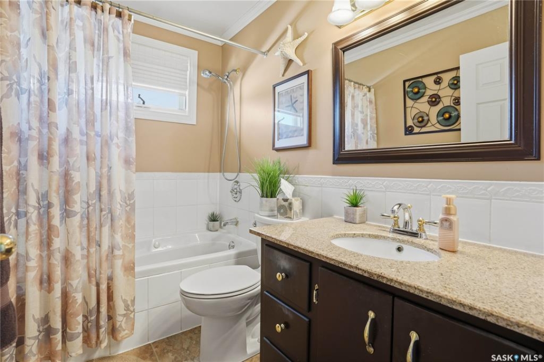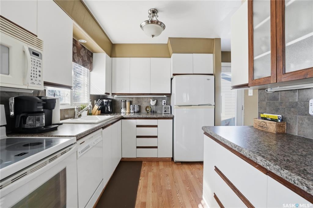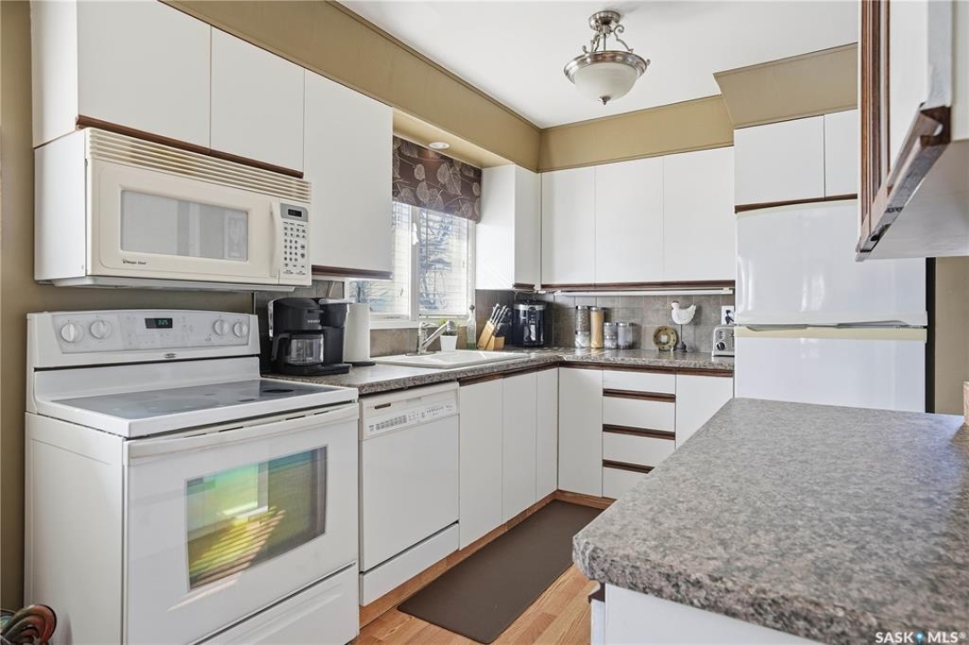Exceptional bungalow in Glencairn is located on a quiet crescent and is move in ready. Long time owner and pride of ownership is very evident. Spacious carpeted living room features bright south facing window, crown mouldings. The practical and functional kitchen features a pantry, fridge, stove, built-in dishwasher and microwave hood fan. 3 bedrooms on the main floor, upgraded main bathroom with granite topped vanity and jetted tub. Upgraded interior doors, closet doors, trim and baseboards, Decora light switches. Basement is tastefully finished with cozy rec-room, office/den area and 4th bedroom (window may not meet egrees). Carpet was replaced in 2012. Second bathroom includes toilet, shower and sink/vanity. Tons of storage in the utility room with additional storage area. Outside you'll find a 21 x 24 detached garage which was built in 2012. Its insulated and heated and features 9' ceiling height. Private and mature yard with shrubs and trees. Underground sprinklers in front yard.. Lawn and patio area in the backyard. Upgraded fence. Shingles were replaced 2012. Water heater and water softener are rented. Mid efficient furnace. Closet to east end amenities and walking distance to schools, parks and shopping. Bus routes nearby.