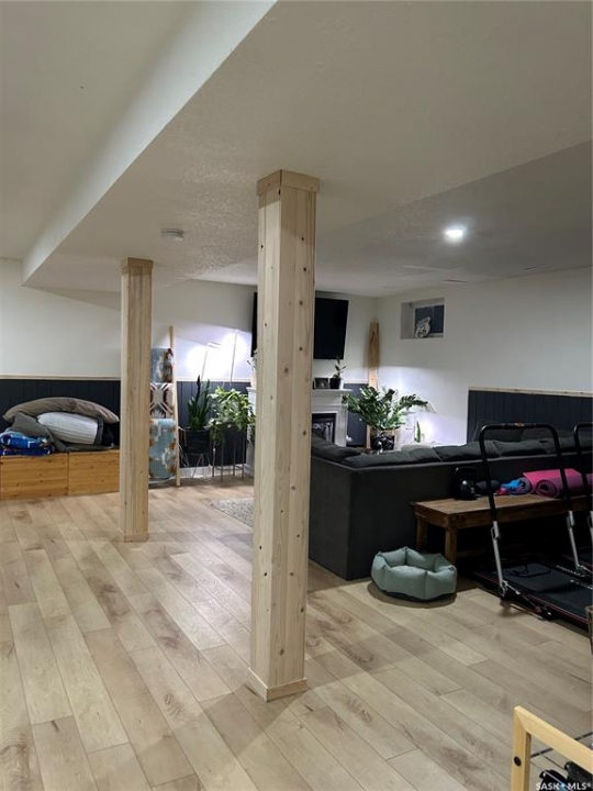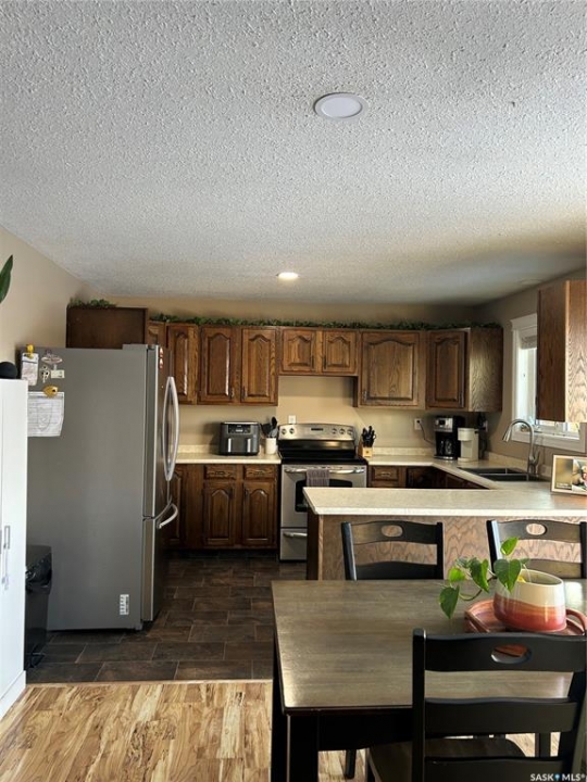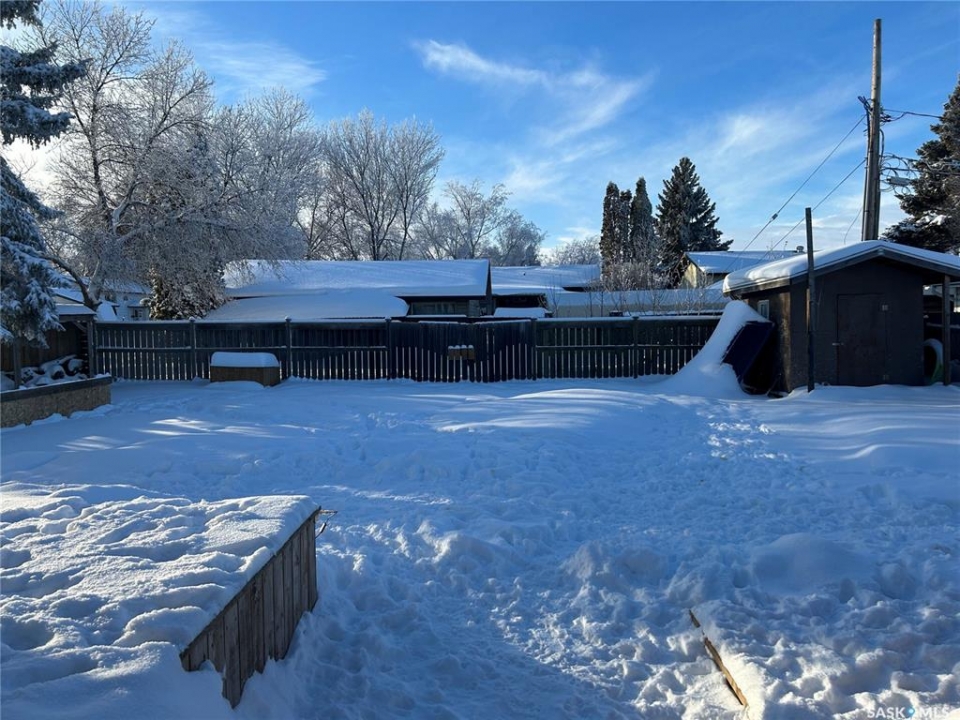 Welcome to the booming town of Rosthern! This lovely family home is situated on a spacious corner lot on a quiet street. The welcoming entrance brings you in to the large living area featuring laminate flooring with tons of space for your family to gather. Open kitchen and dining area with patio doors out to the deck. The main floor features 3 bedrooms. The primary bedroom features a 2 pc. ensuite. Down to the newly renovated basement with a large family room with room for a tv area and a games area. The basement also features a small kitchenette. The renovations include all new vinyl plank flooring throughout and a redesigned modern spacious bedroom.With the new exterior paint and new shingles in 2025, this home has beautiful street appeal. The fenced yard with a new privacy wall on the deck, provides a safe and private space for your children or pets to play! Double attached garage that has been newly insulated. You will not be disappointed in this home! Rosthern is a friendly, thriving community that offers a mix of small-town charm and modern amenities. Don't miss out on making this family friendly home your own!