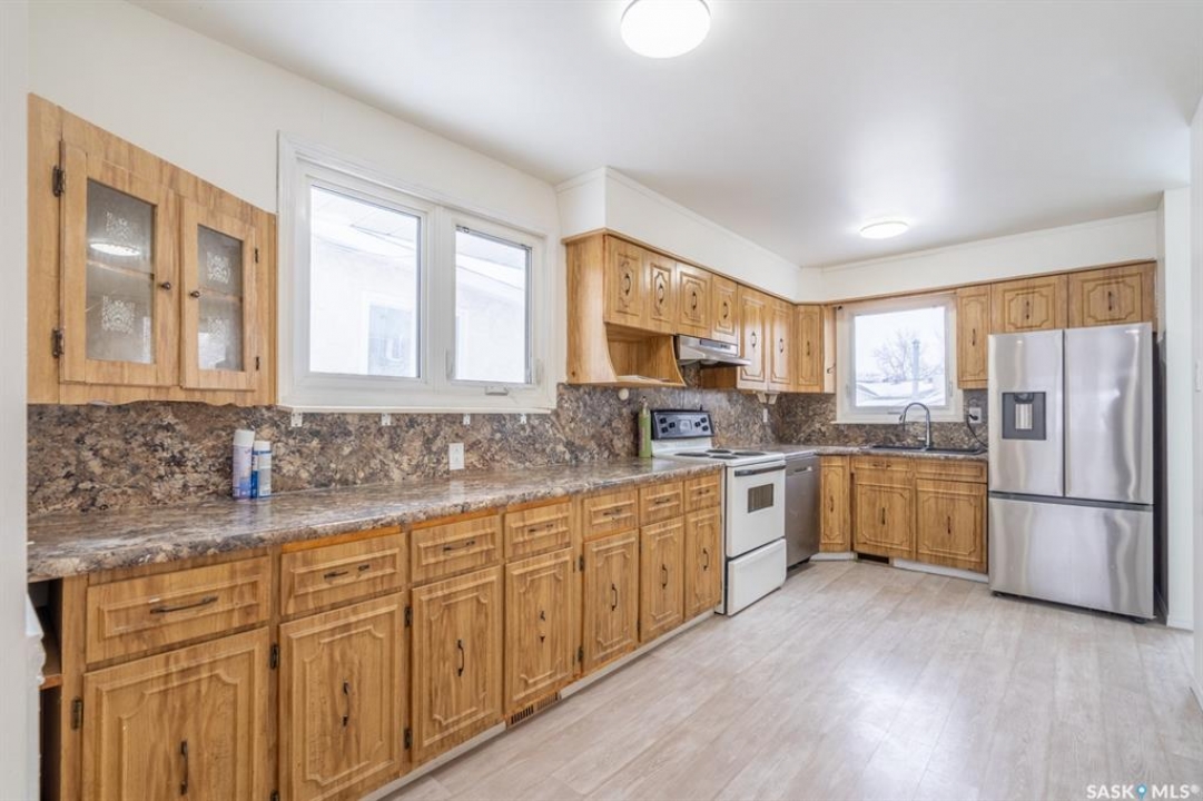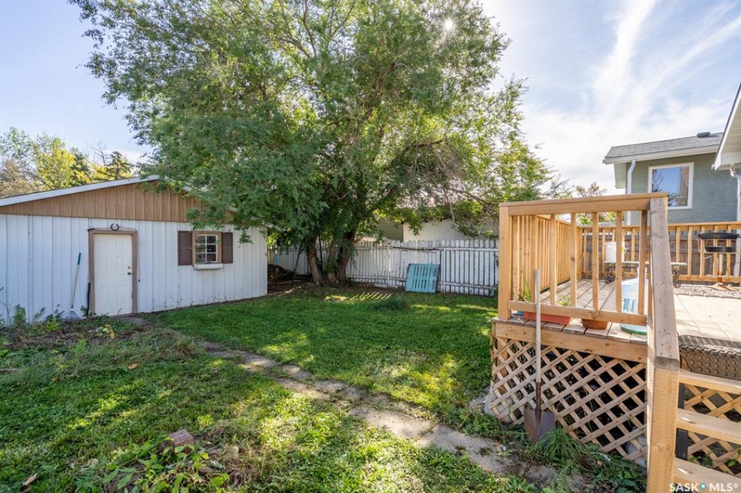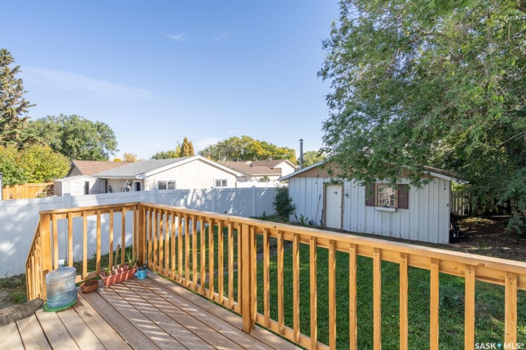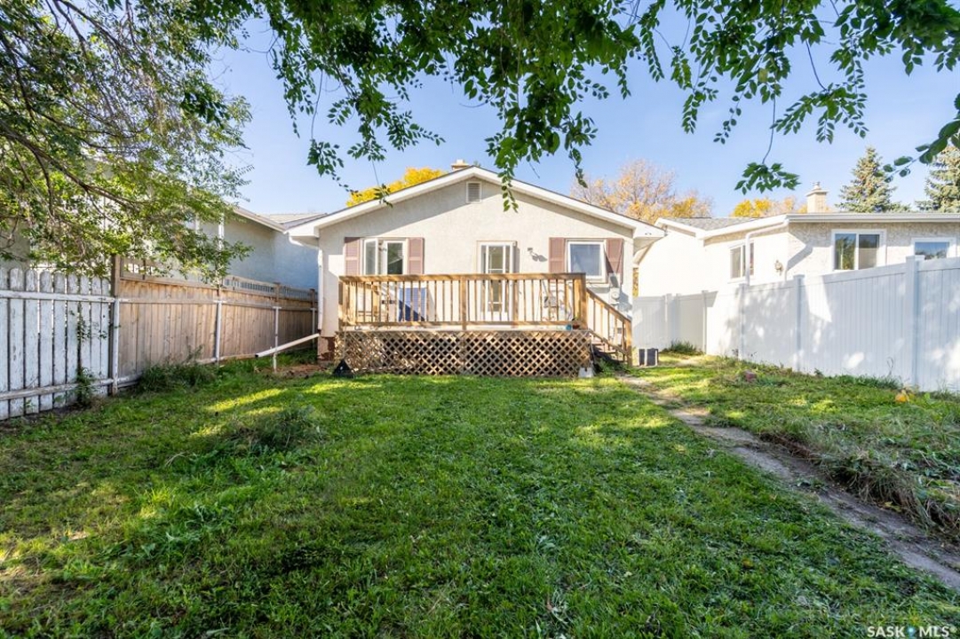 Welcome to this well-maintained 4-bedroom, 2-bathroom bungalow located on a quiet street in Regina's desirable east end – Glencairn. This home offers a great blend of comfort, updates, and functionality. Step inside to a bright, west-facing living room that fills with natural light. The spacious kitchen offers ample cabinetry, perfect for family meals and entertaining. Three well-sized bedrooms and a refreshed 4-piece bathroom complete the main floor, which also features updated laminate flooring throughout most of the level. The solid and inviting basement includes a large rec room, a fourth bedroom, a 3-piece bathroom, and a dedicated furnace/storage area. New carpet adds comfort and warmth to the lower level. Recent updates include: fresh paint, Laminate flooring on most of the main floor, renovated main-floor bathroom, newer carpet in the basement, updated windows throughout the main floor, a new back deck, and a fully fenced yard that is perfect for kids, pets, or summer gatherings, with a double detached garage with convenient access from the rear alley. Situated just minutes from East End amenities and with quick access to Ring Road, this home is ideal for families or anyone seeking a move-in-ready property in a well-established neighbourhood.