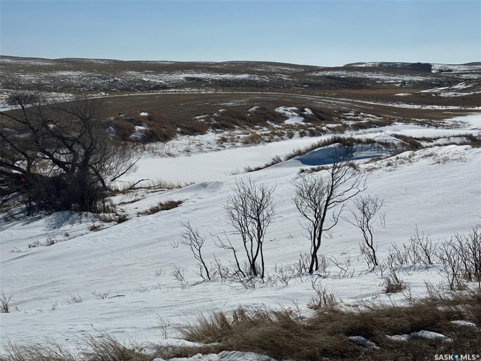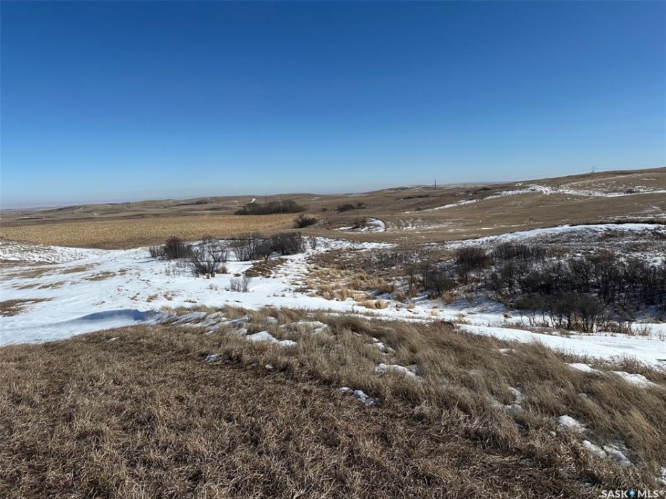 Beautiful productive grass in the Missouri Coteau hills south of Moose Jaw. NW quarter is almost all tame hay seeded to a mixture of meadow brome, crested wheat. and cicer milkvetch. This mixture makes very good grassy hay or great for grazing as well. Access is challenging in winter or after a rain. Both quarters are fenced individually and both have dugouts for water. This would make a great addition to your ranch.