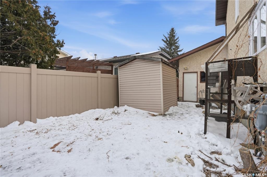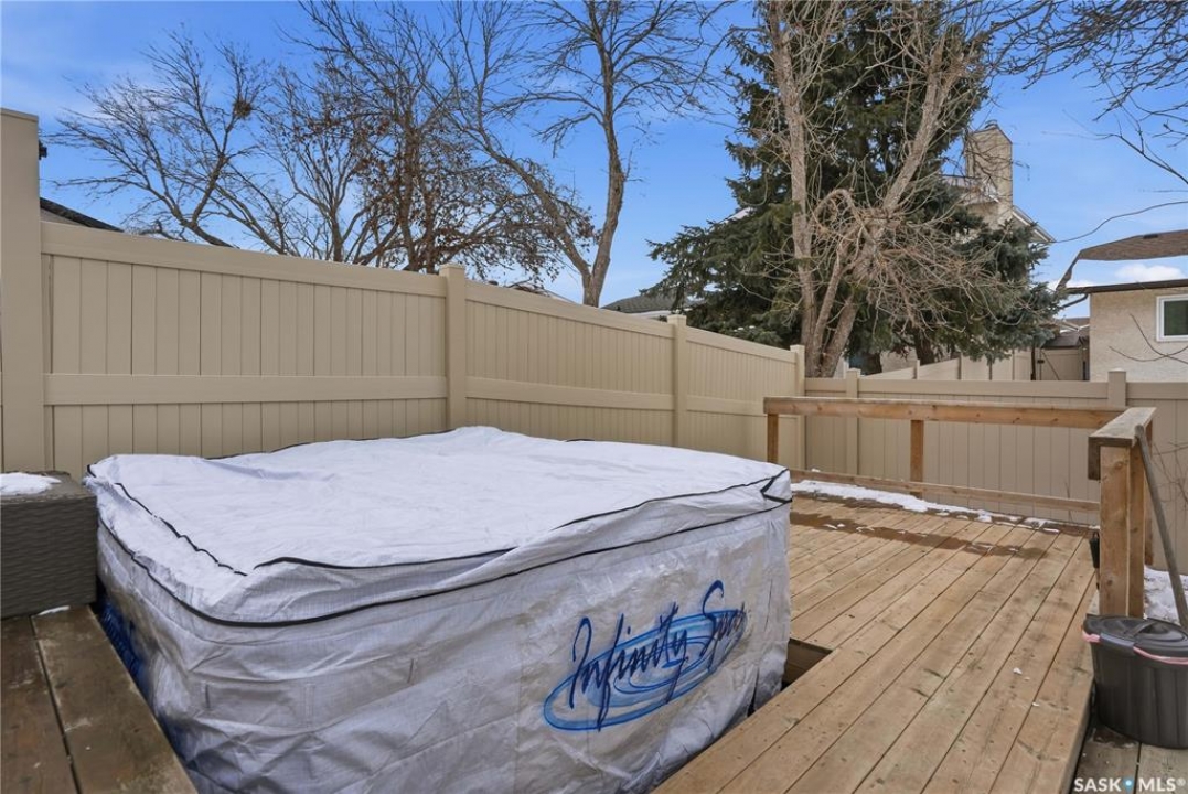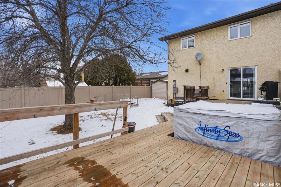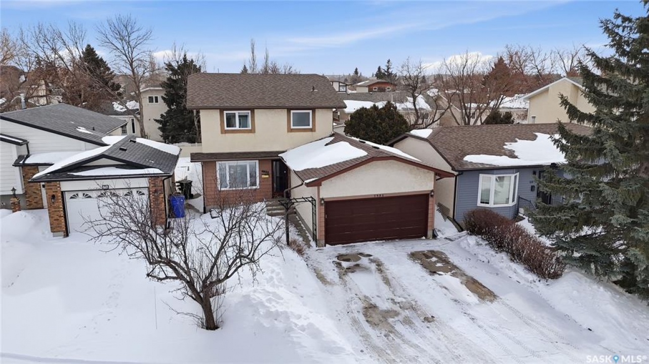 Welcome to your new home in one of Regina's most sought after neighborhoods, Lakewood. This well maintained two storey home offers over 1,300 sq.ft. of comfortable living space and is perfectly situated on a quiet bay. The main floor features a spacious living room highlighted by a custom wood bookshelf, creating a warm and inviting space to relax or entertain. The stunning brand new IKEA kitchen is a true showpiece, complete with new appliances and modern finishes. The dining area offers patio doors leading directly to your private backyard oasis, where you can unwind in the hot tub. A convenient powder room completes the main level. Upstairs you'll find three generously sized bedrooms, including a primary suite with its own 4 piece ensuite, plus an additional full bathroom for family or guests. The fully developed basement offers even more living space with a large family room, a versatile den, and the utility/laundry room. Recent upgrades include newer windows and a beautiful new kitchen with brand new appliances, making this home move in ready. Don't miss your opportunity to view this stunning home!