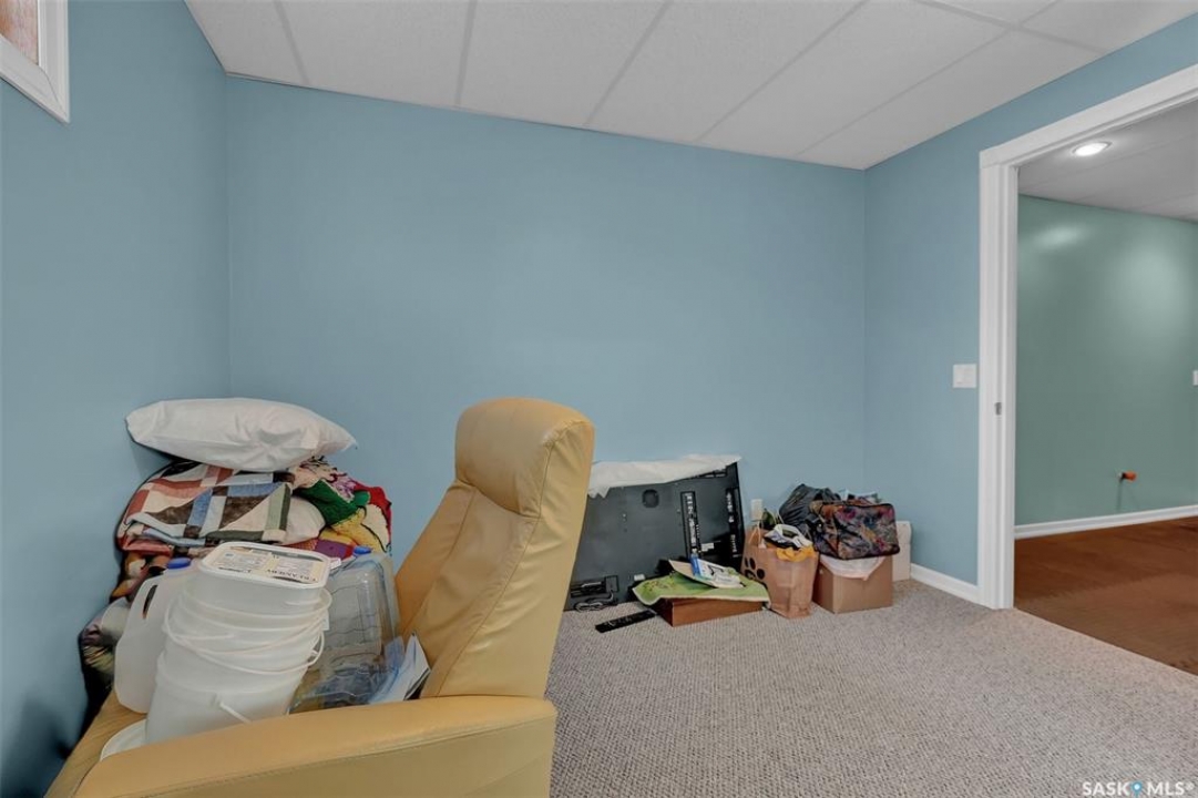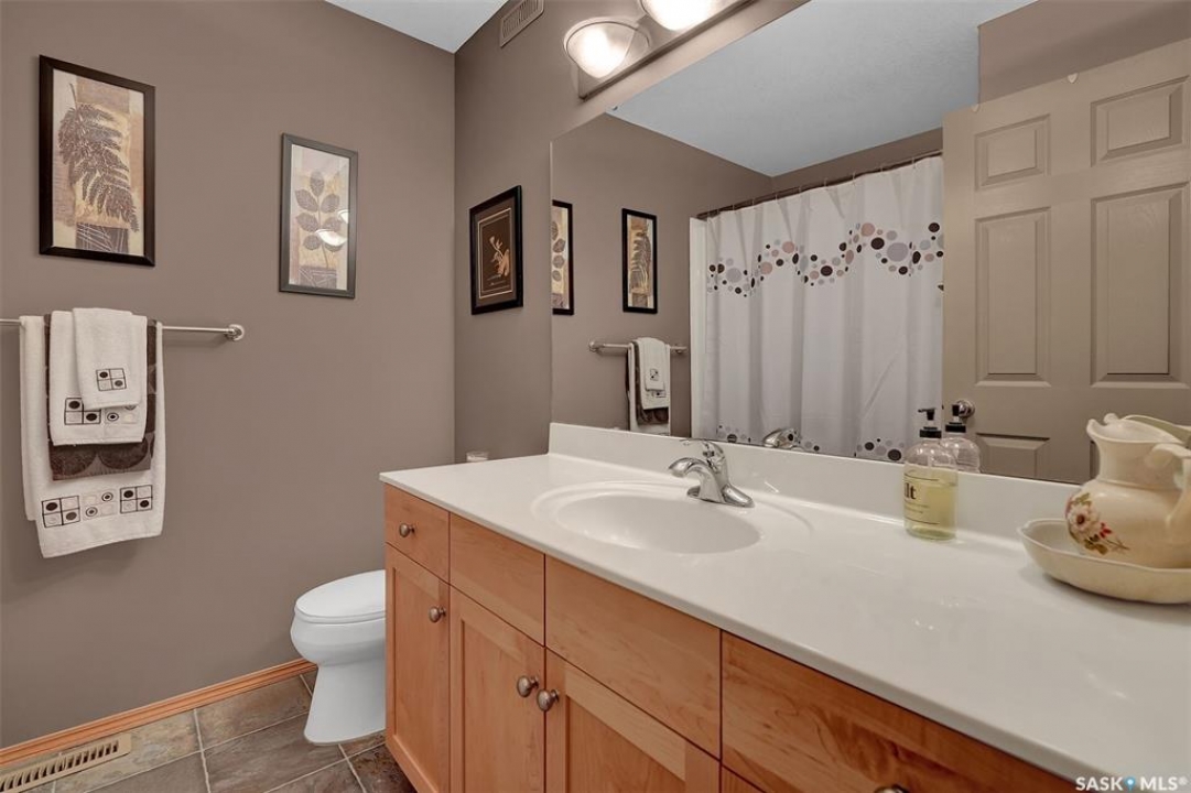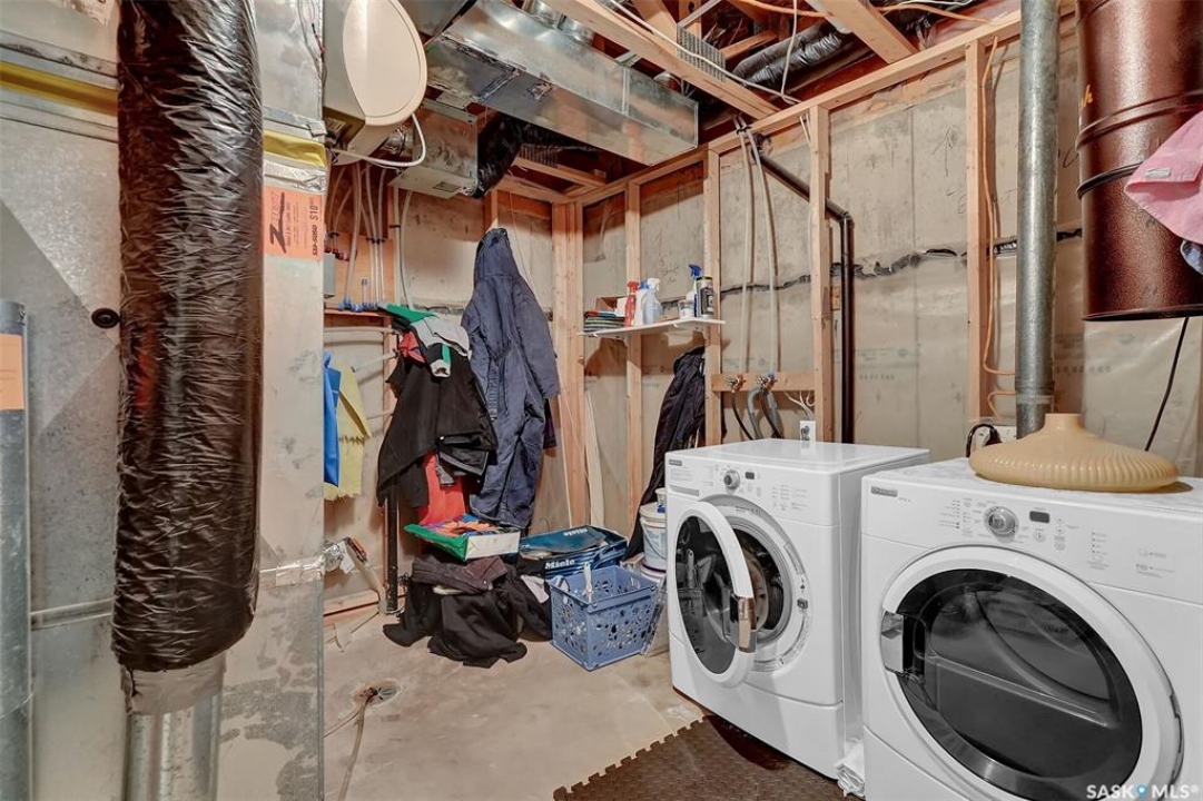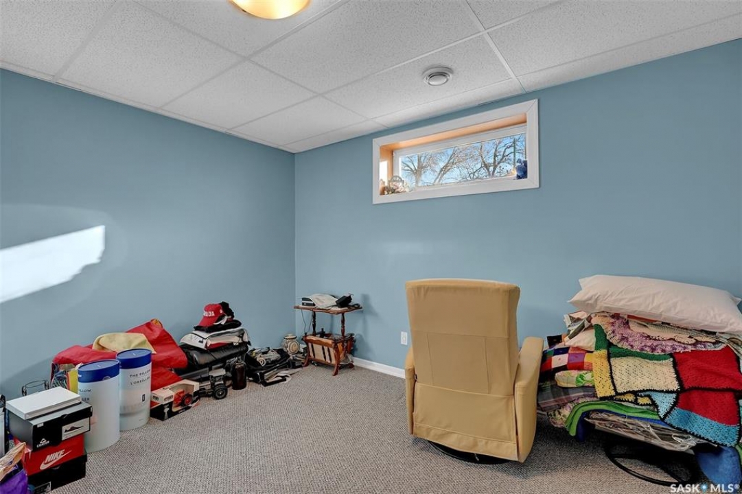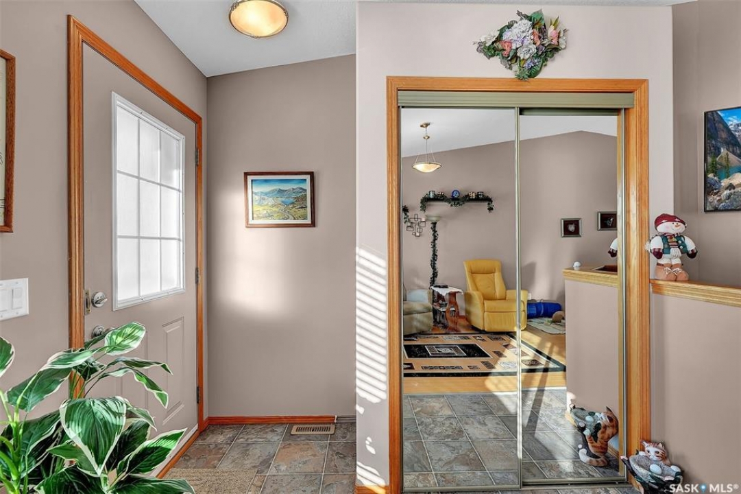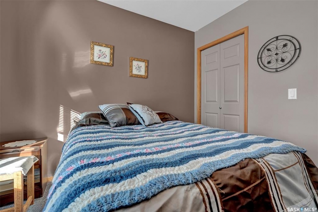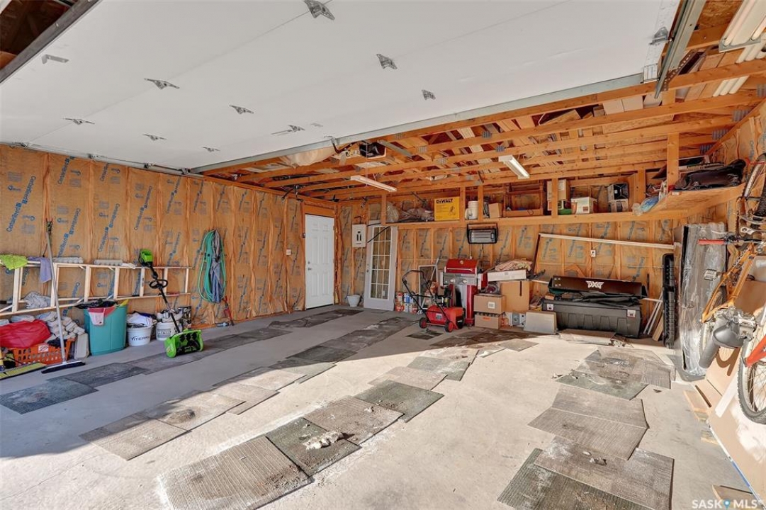 Move in ready 2005 built home in Argyle Park has much to offer with convenient location to all north/west Regina shopping and amenities. A Great room concept with vaulted ceilings in main living area has a front living room with large south facing window bringing in lots of natural light and features bamboo hardwood flooring. Fantastic kitchen has lots of cabinets including pantry storage, upgraded granite counters, granite sink and stainless steel appliances are included. The dining area has ample room for table, note glass table and chairs are included as well as area rug in living room. There are two good sized main floor bedrooms, the primary bedroom has double closets with organizers and the full family bath completes this level. Basement development offers lots of additional living space with a very large family room with rubber matting that is included and there is a plumbing provision for wet bar. There is a large 3rd bedroom (no closet) and rough-in for future bathroom. The laundry is located in the furnace/mechanical room and there is a newer owned water heater. Extra storage under the stairs. Shingles replaced approximately 5 years ago. Outside is low maintenance landscaping with artificial turf, the yard is fully fenced, there is a deck off the kitchen as well as concrete block patio. Insulated 22 x 22 detached garage with keypad and 2 remotes.