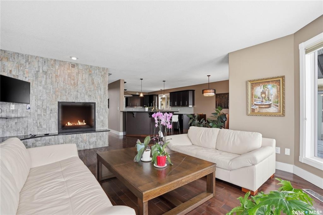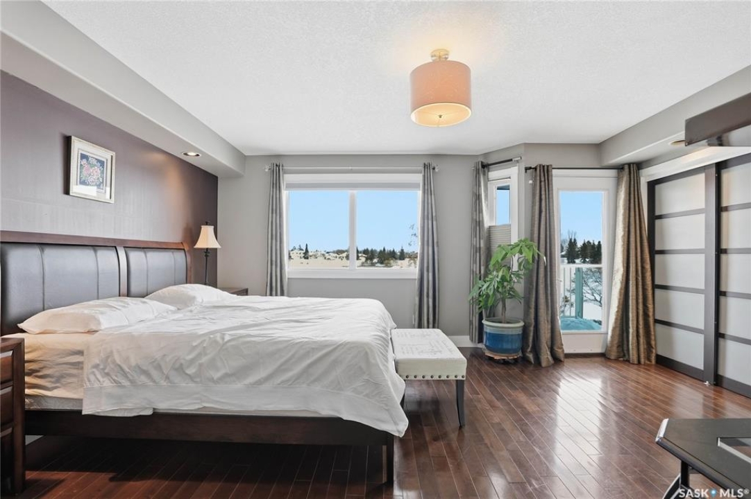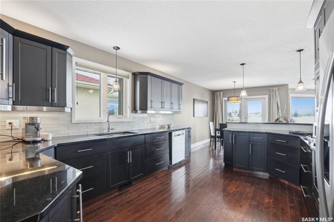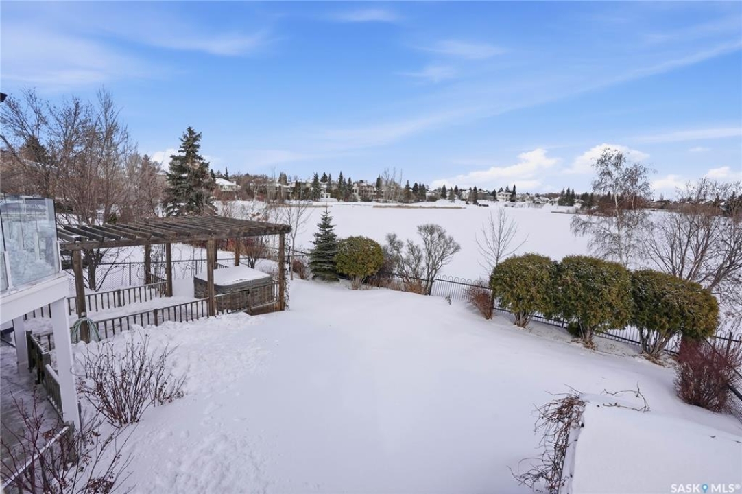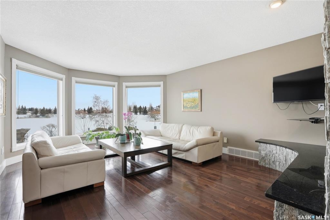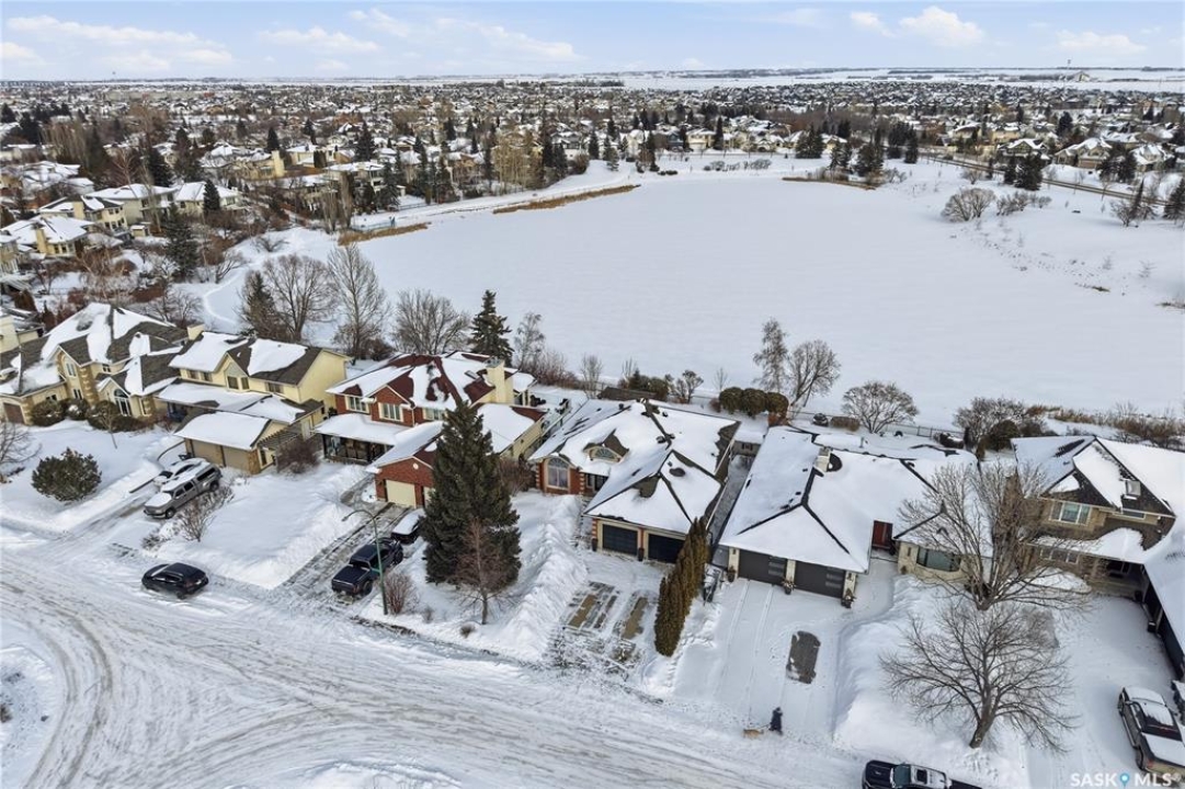 Welcome to this extremely rare opportunity to live on prestigious Forsyth Crescent in the highly sought-after Erindale neighbourhood. This impressive 1,844 sq ft walkout bungalow is one you won't want to miss. Situated on a large 60 x 150 ft lot facing the coveted John Avant Park Lake, this home offers stunning water views from nearly every level of the house. Featuring 4 bedrooms and 3 bathrooms, the layout provides generous space for both family living and entertaining. The home showcases hardwood floors throughout, adding warmth and timeless character. The kitchens and bathrooms feature granite countertops both upstairs and downstairs, offering a high-end finish throughout the home. The primary bedroom is complete with a lavish 5-piece ensuite, creating the perfect private retreat. You'll also appreciate the heated garage, perfect for Saskatchewan winters. Additional highlights include two natural gas fireplaces and a classic brick exterior that enhances the home's curb appeal. Recent upgrades include updated windows (2019), a new furnace (2020), and a new glass balcony railing (2024), allowing you to take in the beautiful lake views in style. A truly rare offering in one of Saskatoon's most desirable locations.