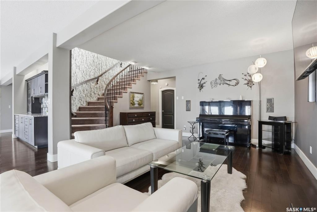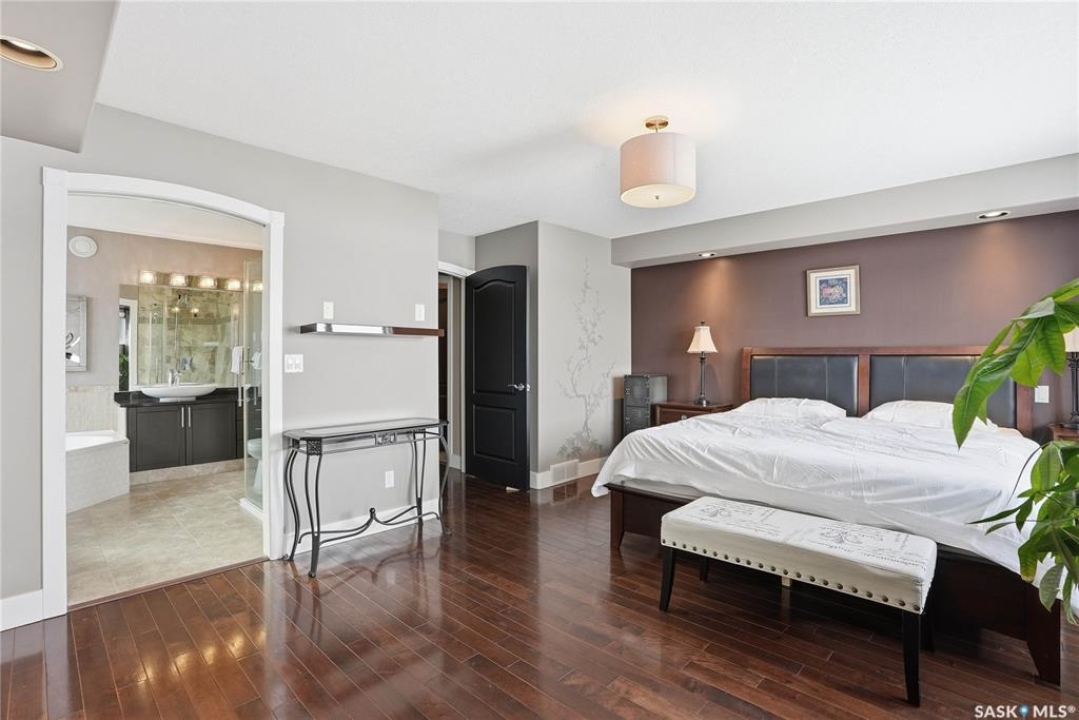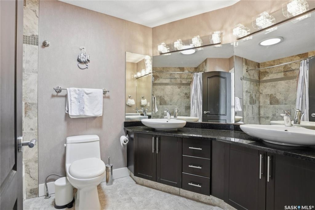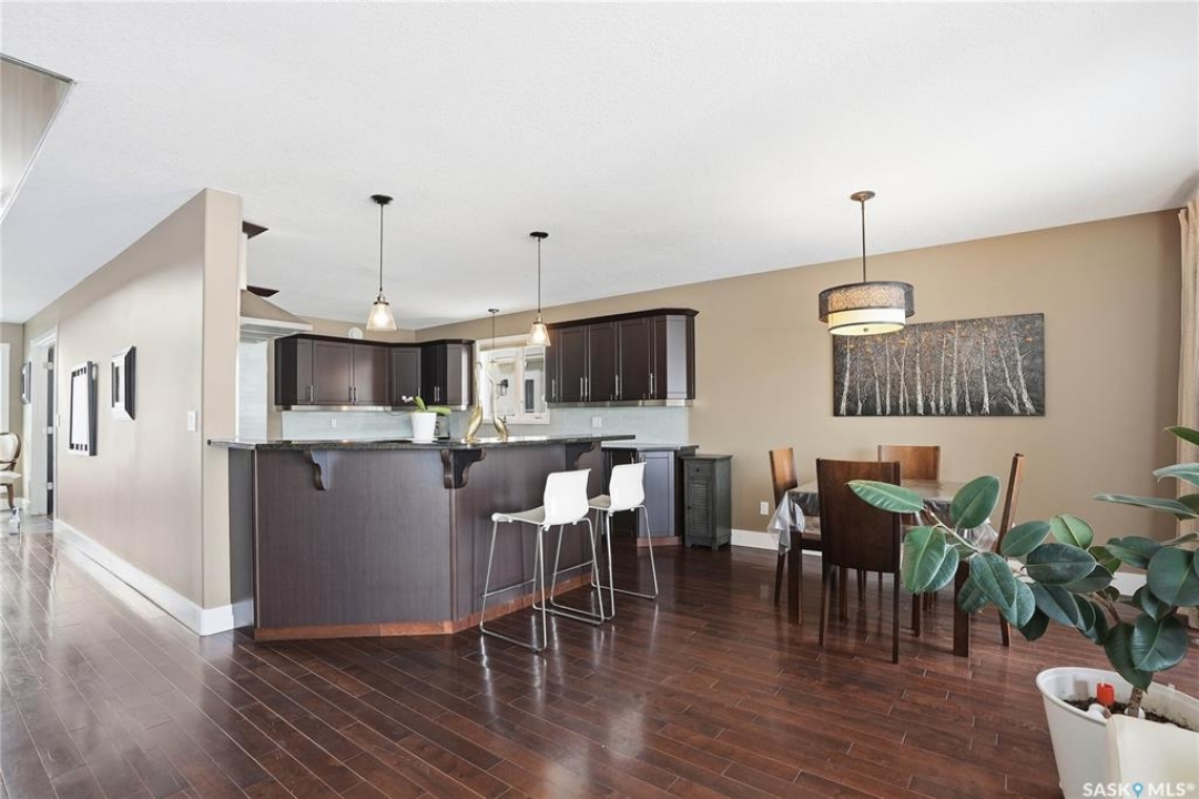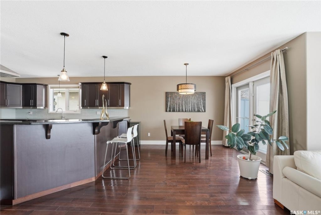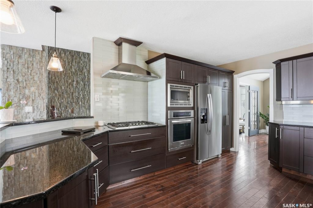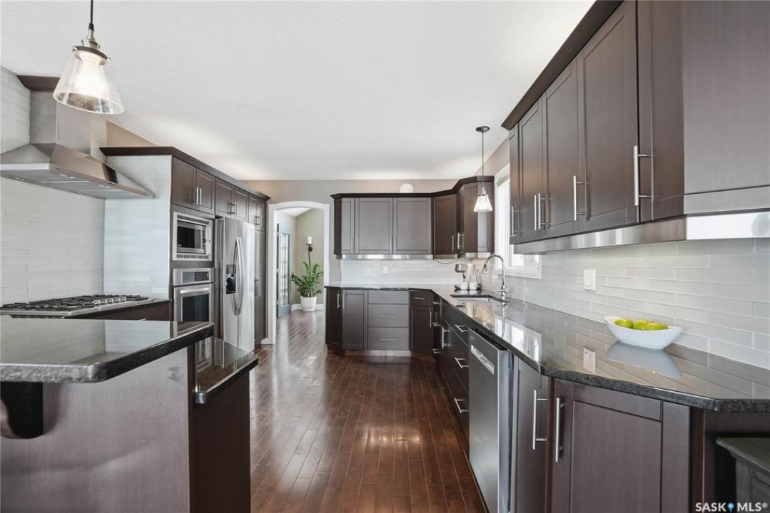 Welcome to this extremely rare opportunity to live on prestigious Forsyth Crescent in the highly sought-after Erindale neighbourhood. This impressive 1,844 sq ft walkout bungalow is one you won't want to miss. Situated on a large 60 x 150 ft lot facing the coveted John Avant Park Lake, this home offers stunning water views from nearly every level of the house. Featuring 4 bedrooms and 3 bathrooms, the layout provides generous space for both family living and entertaining. The home showcases hardwood floors throughout, adding warmth and timeless character. The kitchens and bathrooms feature granite countertops both upstairs and downstairs, offering a high-end finish throughout the home. The primary bedroom is complete with a lavish 5-piece ensuite, creating the perfect private retreat. You'll also appreciate the heated garage, perfect for Saskatchewan winters. Additional highlights include two natural gas fireplaces and a classic brick exterior that enhances the home's curb appeal. Recent upgrades include updated windows (2019), a new furnace (2020), and a new glass balcony railing (2024), allowing you to take in the beautiful lake views in style. A truly rare offering in one of Saskatoon's most desirable locations.