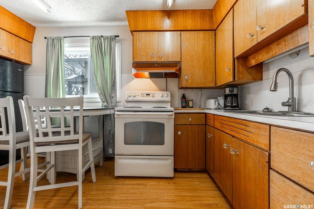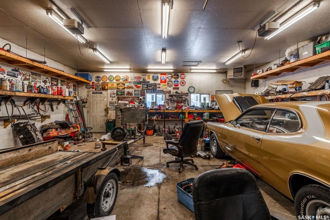 Welcome to 133 111th Street W – a fantastic starter home in a prime Sutherland location! This charming property offers a bright and inviting living room with large windows that flood the space with natural light. The kitchen features ample cabinetry, providing plenty of storage and workspace for everyday living. A convenient main floor bedroom adds flexibility, while the beautifully updated bathroom boasts a luxurious heated floor for added comfort. A versatile bonus room on the main level makes the perfect home office, playroom, or formal dining area to suit your lifestyle. Upstairs you'll find two generously sized bedrooms, ideal for a growing family or additional workspace. The basement includes laundry and even your own private sauna — the perfect place to unwind at the end of the day. Outside, the large fully fenced yard offers plenty of room for kids, pets, or entertaining. The huge heated 28x29 garage is a dream for hobbyists or anyone needing extra workspace, complete with a built-in workbench. A long driveway provides abundant off-street parking with space for trailers, RV parking, or multiple vehicles. Located right beside Sutherland School and just minutes from the University with convenient bus access, this home combines comfort, functionality, and an unbeatable location. Don't miss your opportunity to get into the market with this great Sutherland home! Singles, siding and windows (excluding large living room window) all done in June of 2019.