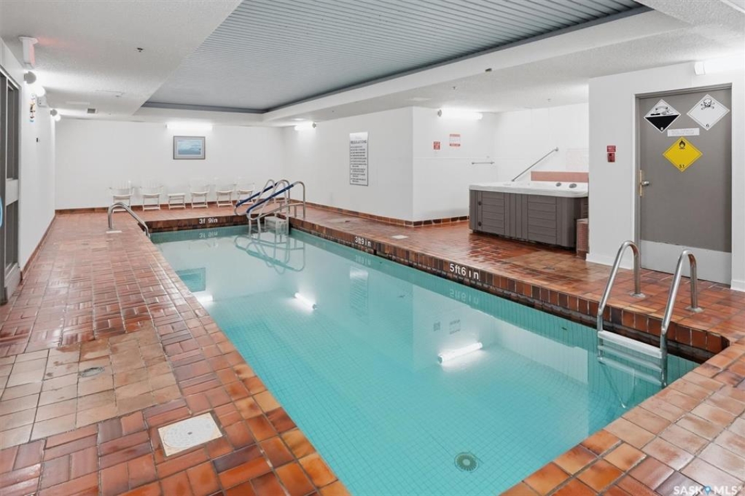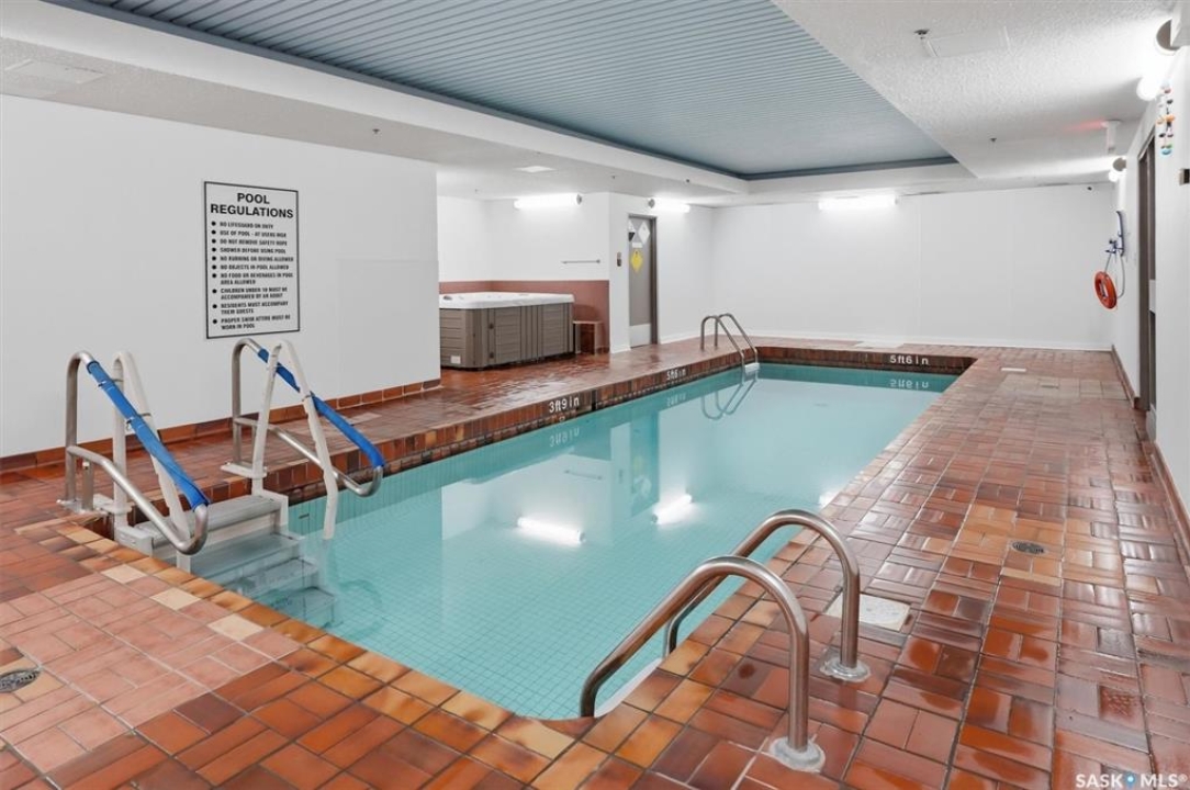 Welcome to 905-430 5th Avenue North—an affordable one-bedroom condo that offers comfort, convenience, great amenities and a great view! This building features a pool, hot tub, sauna, recreation room with pool table and shuffleboard, a newer elevator, covered parking, and a dedicated bicycle storage area on the parking level. Inside the unit, you'll find a laundry and storage room, a functional kitchen that flows into the dining and living areas, generous closet space, a spacious bedroom, and a full four-piece bathroom. All furniture currently in the suite can be included in the sale, making it a great move-in-ready option. Step outside onto the large west-facing balcony and take in views of the city skyline and downtown while enjoying beautiful sunsets. Listed at $159,900, this condo gives you the opportunity to add your own personal touches while staying within budget. The location is excellent—within walking distance to downtown, the University of Saskatchewan, University Hospital, and many other amenities. No pets allowed in this building. Call today to book your private viewing!