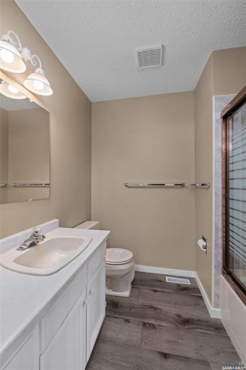 Stunning 4 level split home located in the desirable Carlton Park neighborhood, backing onto a ravine with green space for added privacy and natural views! As you step inside, you will notice the gleaming vinyl plank flooring throughout, creating a warm and welcoming atmosphere. The main floor features a spacious living room that has a large picture window and an electric fireplace with a striking white brick surround, creating an inviting space for everyday living. The dining area and kitchen are both bright and functional, showcasing crisp white cabinetry, a peninsula island, a beautiful backsplash, and south facing windows that overlook the backyard. Upstairs offers a 4 piece bathroom and 3 good size bedrooms, including the primary bedroom that features a convenient 2 piece ensuite. The lower level showcases a generous family room that is well suited for relaxing evenings or entertaining guests, along with an additional bedroom and a 3 piece bathroom. The basement provides a recreation room that offers flexible space for hobbies, games, or a home workout area, along with a combined laundry and utility room. Situated on a meticulously landscaped yard that has mature trees and features a patio area and a firepit area, perfect for gathering with family and friends. The property also includes a single detached garage. Notable features include vinyl plank flooring installed in 2022, house shingles and eavestroughs replaced in 2020, stucco freshly painted in 2025, the garage shingles replaced in 2022, and Hunter Douglas blinds throughout most rooms. Conveniently located close to schools and parks. Act now and make this your next home!