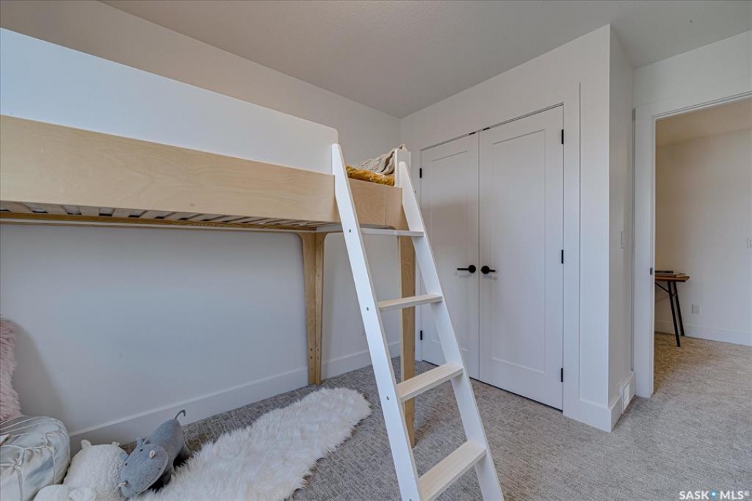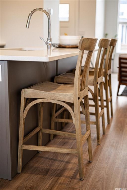Welcome to Hudson Row 3, Saskatoon's newest townhome project located in The Meadows at Rosewood. This Scandinavian inspired streetscape will create an unmatched timeless curb appeal that is sure to catch people's eye. The 1461 SF open concept interior includes all the premium designer finishes people have come to expect with Arbutus Properties. The main floor includes an efficient layout with large front and back windows that flood the space with natural light and is covered by premium flooring. The centrally located chef's kitchen includes trendy flat panel cabinetry highlighted with matt black hardware, quartz counters, stylish backsplash and a full stainless appliance package. The upper floor includes 3 generously sized bedrooms, 4pc bathroom, a convenient flex space that was designed to cater to a variety of uses and an easy to access laundry closet. Also on the upper floor is the master bedroom that includes a walk-in closet and a private ensuite. The exterior of the home is covered in durable James Hardie composite siding and comes inclusive with private fenced landscaped yards, a rear deck & a double detached garage at the rear. Located near multiple parks, commercial amenities, Costco and within a block from 2 new community schools makes this a must see! "Disclaimer, all cabinets in these units will be flat white , floor tiles will be grey, backsplash is white, AI generated kitchen showing example with Island, but cabinets will be flat panel, picture in listing showing colour patterns! Contact Agent for more information. Garages can not be done until June when frost is all out. Pictures are from our last showhome.