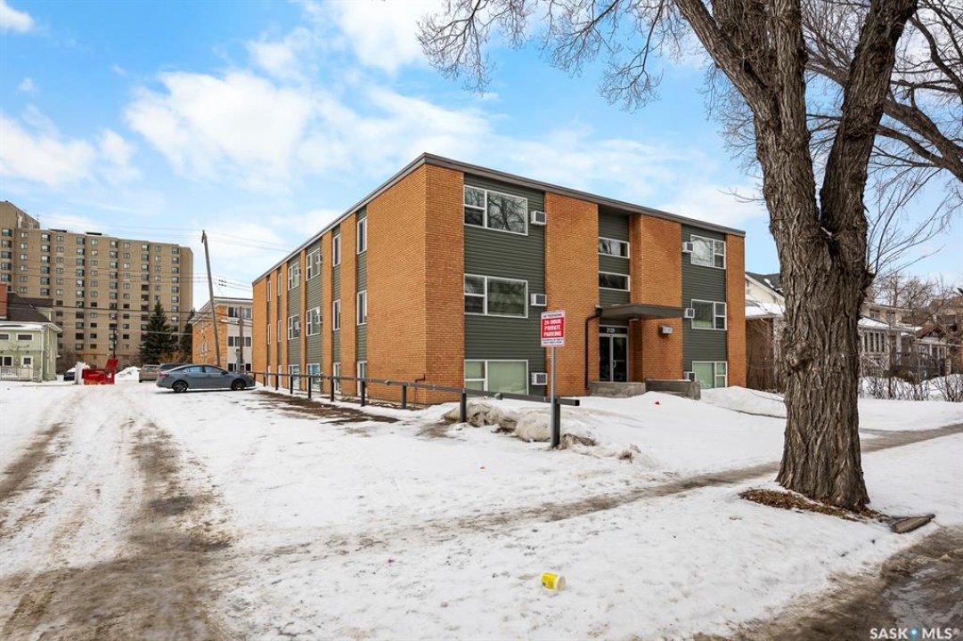 Exceptional Investment. Multi-family 26 unit apartment for purchase in the highly sought after Transition Area of Regina with tremendous land value attached as part of the purchase. Extensively renovated in Feb 2024 with over $1.2M invested and major work done such as upgrading power to accommodate electric heating and all units rebuilt from the studs. This 26-suite property features 14 bachelors and 12 one bedroom units. Each unit is generous in size with walk-in pantry/storage, new appliances (2024) and A/C for tenant comfort.2120 Lorne where the apartment is located is on a 75' x 125' lot(apprx). A separate adjacent parcel at 2134–2142 Lorne (approx. 125' x 125') contains 70 electrified parking stalls offers an attractive income source with 40 stalls currently rented at $135/month, or a potential redevelopment opportunity. The parking area was refurbished circa 2018 with welded steel posts and all new electrical conduit, weather-proof boxes and panels at each rail.