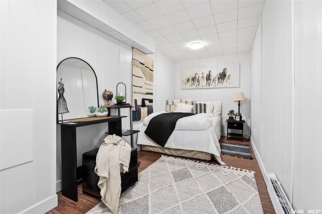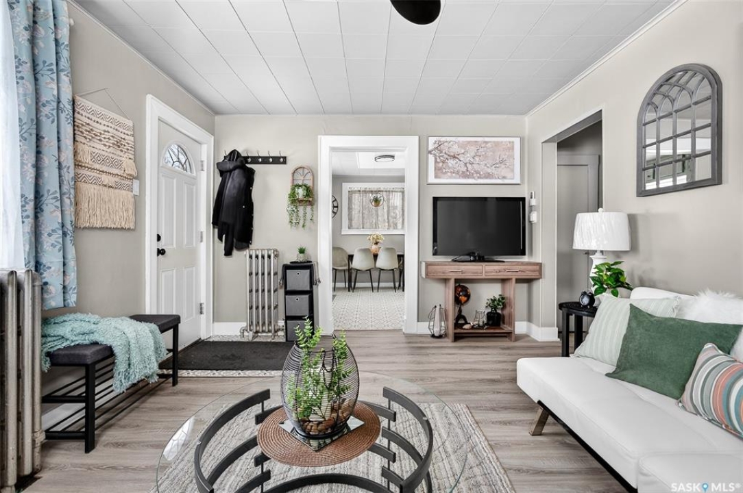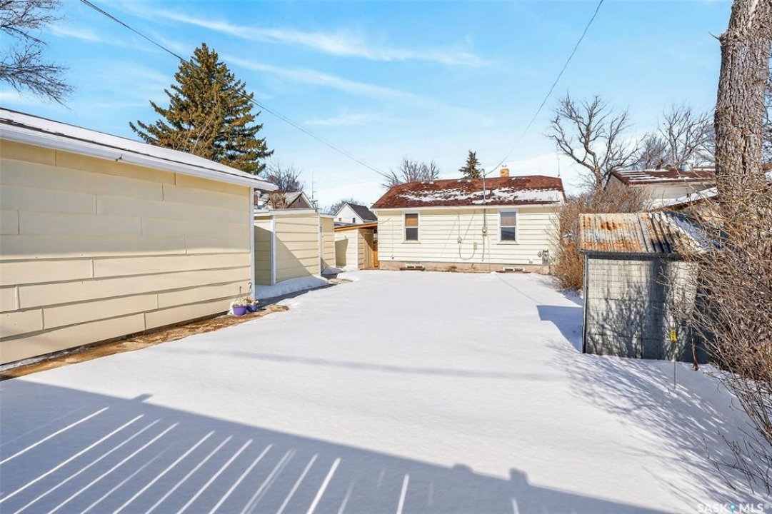 Cute and cozy remodelled 2 bedroom, 1 bathroom home has an additional den and a spacious family room in the partially finished basement. Pride of ownership is obvious with the many upgrades in the past 8 years, making this a first time home buyers dream. It would also be enjoyed by anyone looking to downsize to a solid, move in ready house. You will love the built in fireplace downstairs ready to warm up the space as well as the ambiance while cuddling around the couch for movie night or gathering to play games. Some of the upgrades include newer windows & shingles, new water & sewer lines, newer garage & sheds (3), fully fenced yard, new paint, floors, & lighting throughout, new bathroom & refreshed kitchen. Location is desirable with close proximity to the valley, walking paths, Cornerstone Christian School and the CFB Moose Jaw base. If this sounds like the home for you, reach out today to book a viewing!