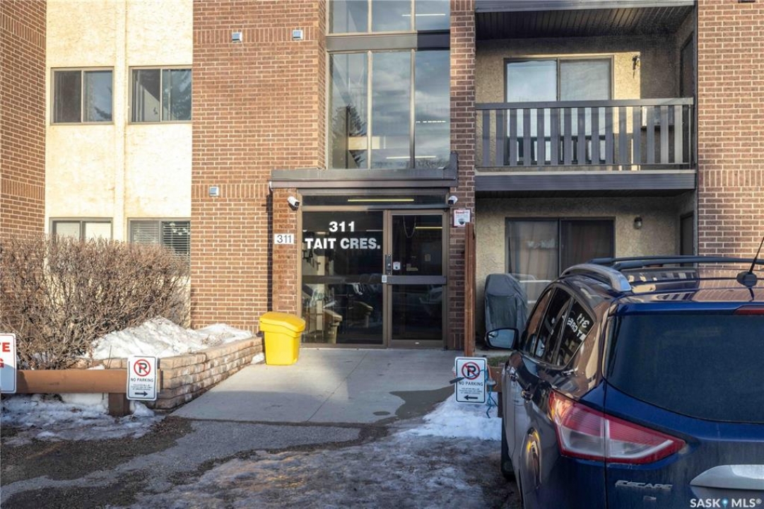 311 Tait Crescent #310 – Saskatoon Well-maintained 3rd top-floor, 2-bedroom condo located in Saskatoon's desirable southeast area with convenient access to the University of Saskatchewan. This bright unit features updated laminate and linoleum flooring, spacious living and dining areas, and two comfortable bedrooms. Patio doors lead to a west-facing balcony with an additional storage room, perfect for enjoying the evening sun. The unit also offers in-suite laundry, an upgraded wall A/C unit, a built-in dishwasher, and newer appliances, including the washer, dryer, and refrigerator. One electrified parking stall is included. Ideally situated on a direct bus route to the University of Saskatchewan (approximately 15 minutes) and close to the Lakewood Civic Centre, Wildwood Golf Course, the Golf Dome, and the many shops and restaurants along 8th Street. The building also offers indoor bike storage and is surrounded by nearby walking and biking trails, making it a great option for students, first-time buyers, or investors.