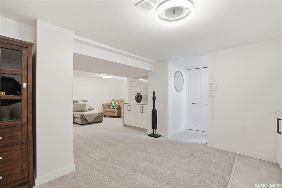 You will not want to miss this exceptional luxury home. Situated on a rare 67' x 140' lot, this fully upgraded 5 bedroom, 4 bathroom property in Varsity View truly has it all. The main floor showcases gorgeous hardwood flooring, with luxury vinyl tile in the kitchen. Designed for entertaining, the kitchen features white quartz countertops, a striking waterfall peninsula with built-in bar fridge and cabinetry, tiled backsplash, and stainless appliances. A spacious dining room with a custom fireplace feature wall and built-in cabinetry comfortably accommodates even the largest gatherings. Upstairs, the primary suite offers a true retreat with a walk-in closet and custom electric fireplace feature wall, along with a sleek 3 piece ensuite finished with tile, while the additional bedrooms are served by a beautifully appointed 4 piece bathroom. The fully developed basement adds incredible flexibility with a custom bar featuring quartz countertops and a wine fridge, a fifth bedroom, and a 4 piece bathroom. The thoughtfully designed laundry area includes quartz counters, hanging racks, and a laundry sink. Outside, the property continues to impress with a massive deck and oversized pergola, creating an ideal outdoor entertaining space overlooking the expansive yard complete with fenced garden boxes and a large storage shed the size of a single detached garage. Parking and workspace are exceptional with an attached single garage featuring epoxy floors, electric heater, and prep kitchen, along with a double detached heated garage and a double-length driveway out front. With many new windows and doors, extensive upgrades throughout, and one of the largest lots in Varsity View, this home offers a rare combination of space, design, and lifestyle.