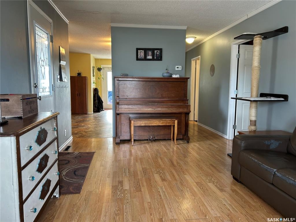 Welcome to this spacious 5-bedroom, 3-bathroom home located in the desirable Hillside area of Estevan. Upon entering the front door, you are welcomed by a bright living room with windows on two sides, allowing plenty of natural light to fill the space. The large kitchen offers a pull-out island, abundant cupboard and countertop space, and a separate dining area with double doors that lead out to the backyard—perfect for family living. This level features three bedrooms, a full four-piece bathroom, an additional three-piece bathroom, and a large back entry that serves as a convenient drop zone for coats, backpacks, and shoes. The basement provides even more living space with two additional bedrooms, another full bathroom, and a laundry area conveniently located at the bottom of the stairs. Outside, the property includes a single garage, parking available from the back alley, and a double concrete driveway, offering plenty of space for vehicles.