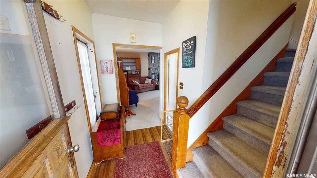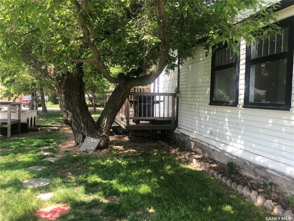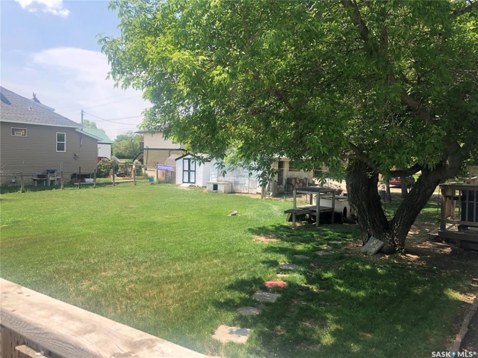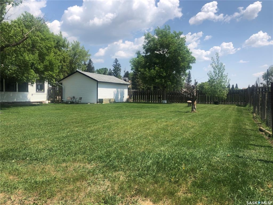 4 BEDROOMS, 2 BATHS, FIREPLACE, DOUBLE LOT, GARAGE. Discover the warmth and charm of this four-bedroom, 1.5 bath Character Home situated on two lots with front and back garages. Step into the inviting wraparound enclosed veranda as you enter into the house. A corner staircase leads you to the 2nd level with 3 bedrooms and a full 4pc bathroom accessible directly from two of the bedrooms. Unwind in the cozy living room complete with a wood-burning fireplace and access to the 4th Floor Bedroom on the Main Level. Proceed through the living room into the dining room and kitchen with windows facing the back yard & deck plus a back door from the kitchen leading right into the fully fenced part of the yard. The kitchen also accesses the conveniently located Laundry Room plus the floor access to the cellar that includes the Gas Furnace and other Utilities. Outside, the yard offers endless possibilities with a treated wood back deck, trees for shade, back garage & shed plus a concrete patio - perfect for a Fire Pit or other backyard activity. The North side of the property is shaded by mature trees, while a greenspace and community playground sit just across the street adding to the home's appeal and central location to the town's amenities include Hospital, K-12 School and Downtown. From the Street front there is plenty of parking on the gravel driveway, along the front fence and in front of the 16 x 24 Garage built in 1995. This home comes complete with a Fridge, Stove, Washer, Dryer, Wall Air Conditioner, Water Softener and Sump Pump. Singles Updated in 2015. Experience it all firsthand with the enclosed 3D Virtual Tour of the property's interior or contact a Realtor for a private viewing!