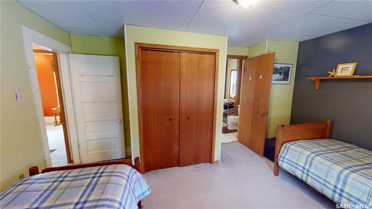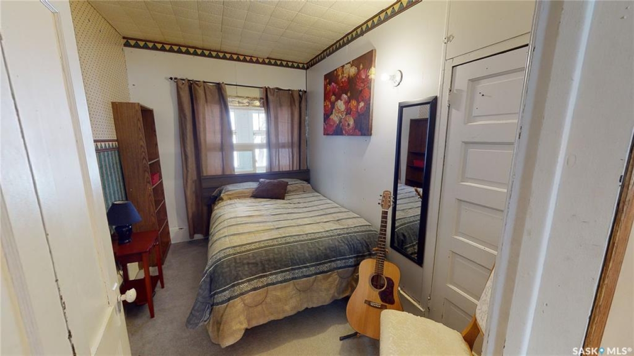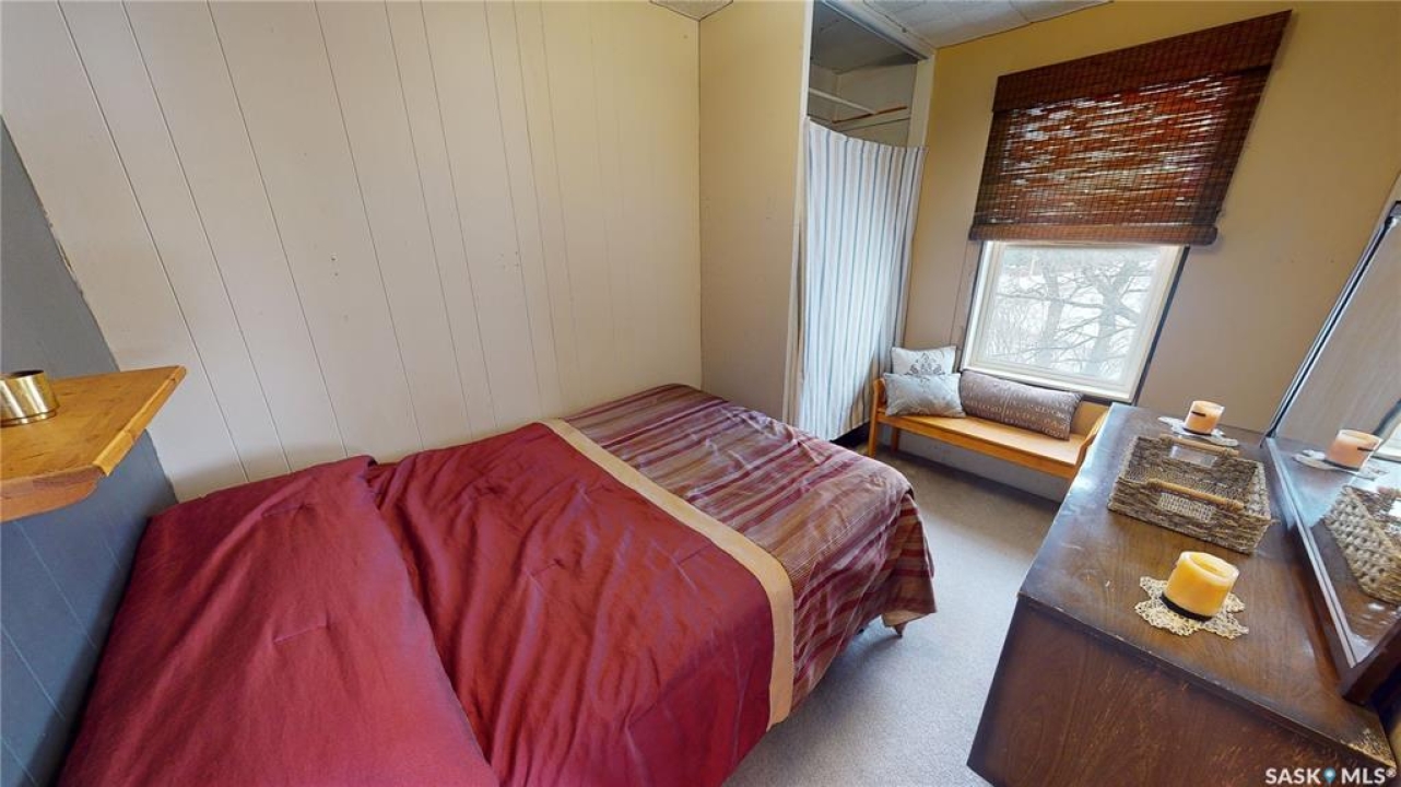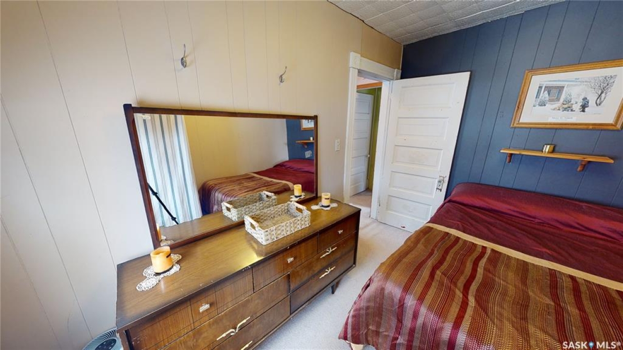 4 BEDROOMS, 2 BATHS, FIREPLACE, DOUBLE LOT, GARAGE. Discover the warmth and charm of this four-bedroom, 1.5 bath Character Home situated on two lots with front and back garages. Step into the inviting wraparound enclosed veranda as you enter into the house. A corner staircase leads you to the 2nd level with 3 bedrooms and a full 4pc bathroom accessible directly from two of the bedrooms. Unwind in the cozy living room complete with a wood-burning fireplace and access to the 4th Floor Bedroom on the Main Level. Proceed through the living room into the dining room and kitchen with windows facing the back yard & deck plus a back door from the kitchen leading right into the fully fenced part of the yard. The kitchen also accesses the conveniently located Laundry Room plus the floor access to the cellar that includes the Gas Furnace and other Utilities. Outside, the yard offers endless possibilities with a treated wood back deck, trees for shade, back garage & shed plus a concrete patio - perfect for a Fire Pit or other backyard activity. The North side of the property is shaded by mature trees, while a greenspace and community playground sit just across the street adding to the home's appeal and central location to the town's amenities include Hospital, K-12 School and Downtown. From the Street front there is plenty of parking on the gravel driveway, along the front fence and in front of the 16 x 24 Garage built in 1995. This home comes complete with a Fridge, Stove, Washer, Dryer, Wall Air Conditioner, Water Softener and Sump Pump. Singles Updated in 2015. Experience it all firsthand with the enclosed 3D Virtual Tour of the property's interior or contact a Realtor for a private viewing!