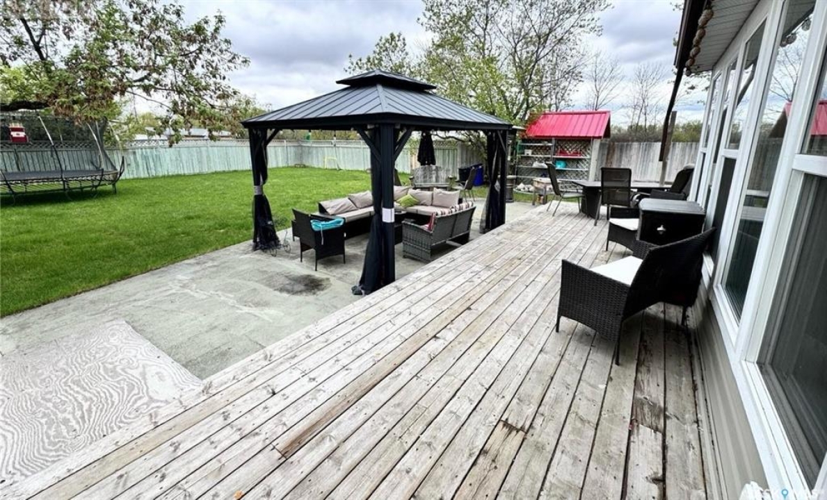 Outdoor: Balcony, Deck, Fenced, Lawn Back, Lawn Front, Trees/shrubs