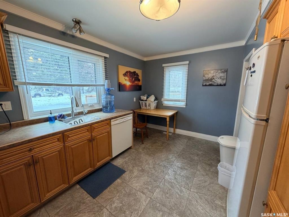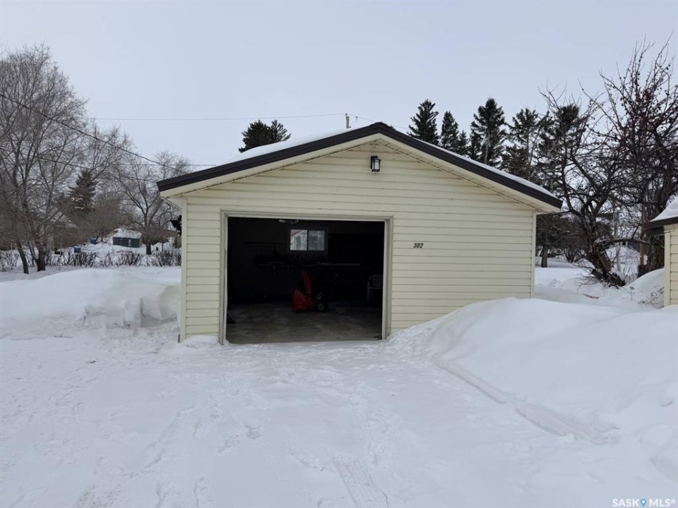 Welcome to 302 Humboldt Street. Tucked into the peaceful village of Jansen, SK, this 724 sq. ft. home sits on an expansive triple lot (120' x 115'), offering a rare combination of privacy, space, and small-town charm. Recent upgrades throughout make it move-in ready. Inside, you'll find newer flooring across both levels, a well-appointed kitchen with updated cabinetry, and a bright main-floor living room with patio doors opening onto the deck. A spacious 3-piece bathroom and expansive bedroom complete the main floor. Downstairs adds a second bedroom, a freshly renovated laundry room (2021), and dedicated storage and utility areas. Other major upgrades include triple-pane windows (2019), a newer furnace (2014), and a metal roof (2020) which was added to both the house and the guest house. Outside, the property truly comes into its own. An insulated, powered 19x23 detached garage serves equally well as a workshop or extra parking. A separate guest house or private office adds flexibility for visitors or remote work. Round it out with a deck, patio, and garden area. Positioned near the edge of town, this property delivers the quiet of rural living without sacrificing convenience. A well-maintained, thoughtfully upgraded property. Contact us today for more info or to book your viewing.
