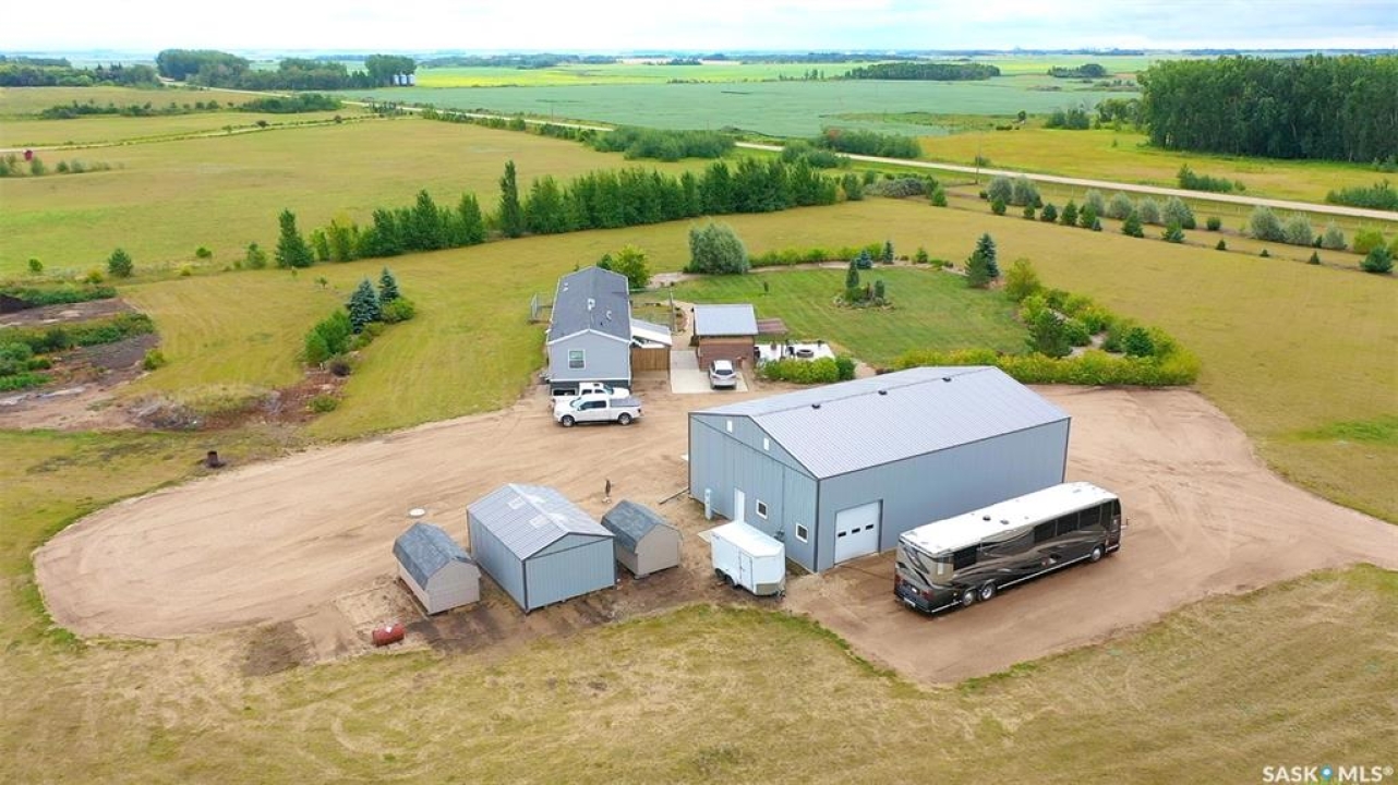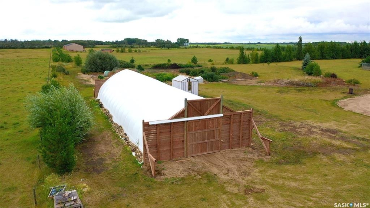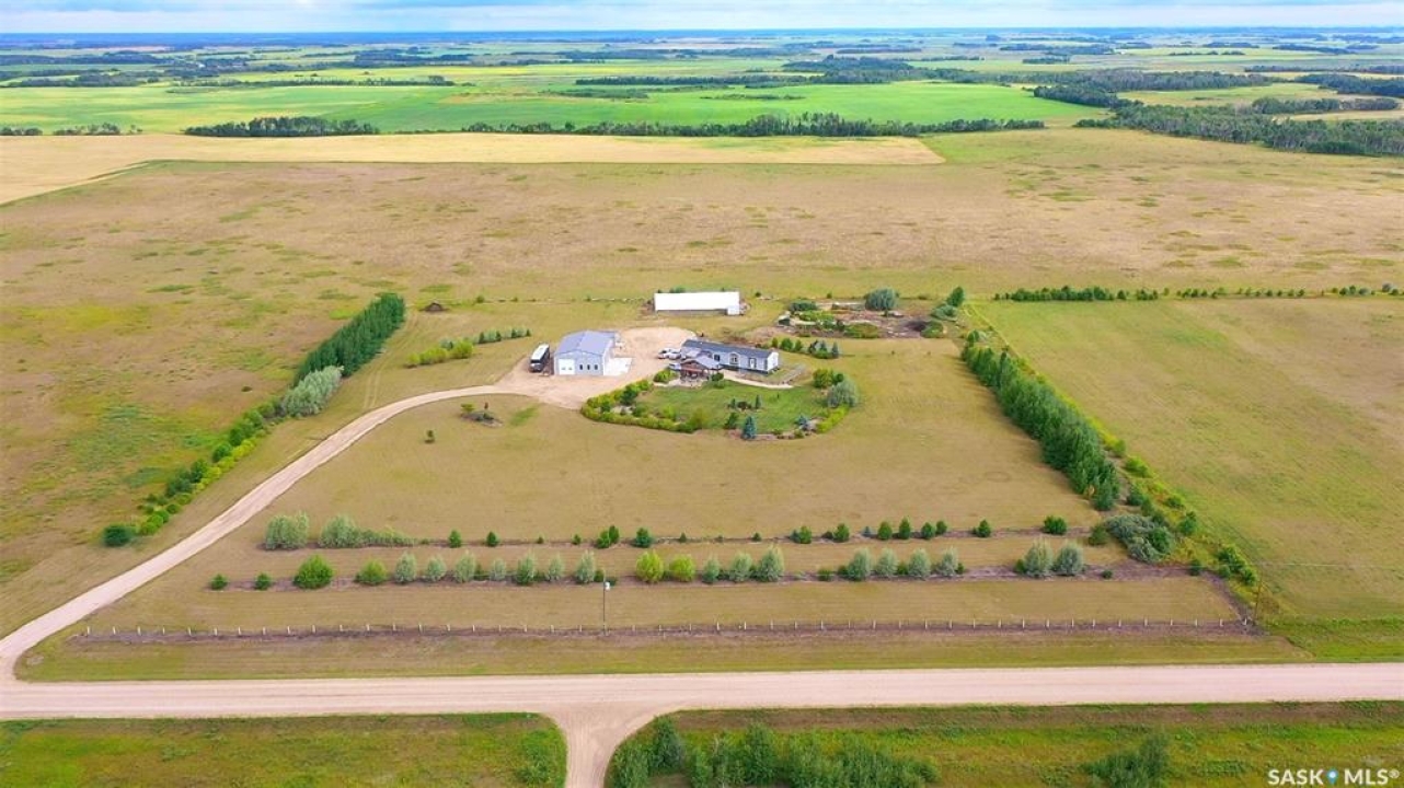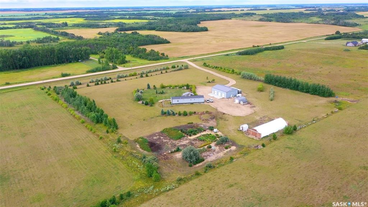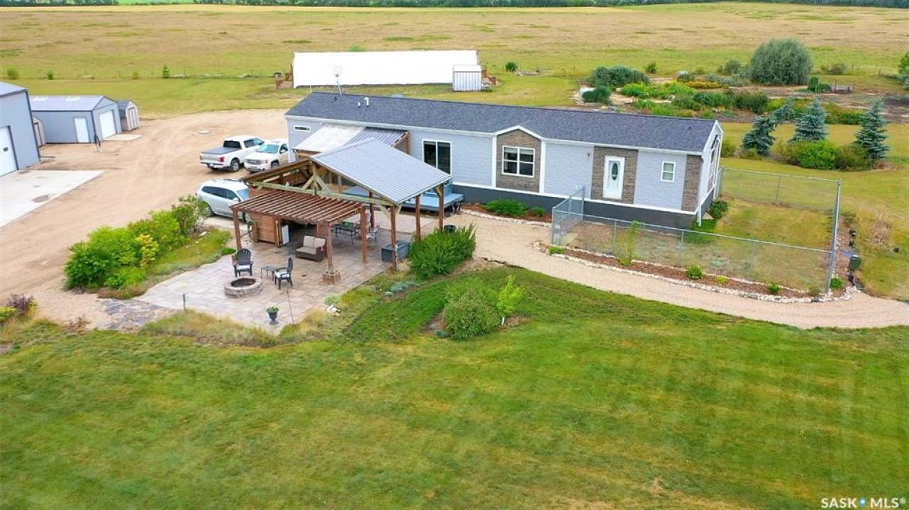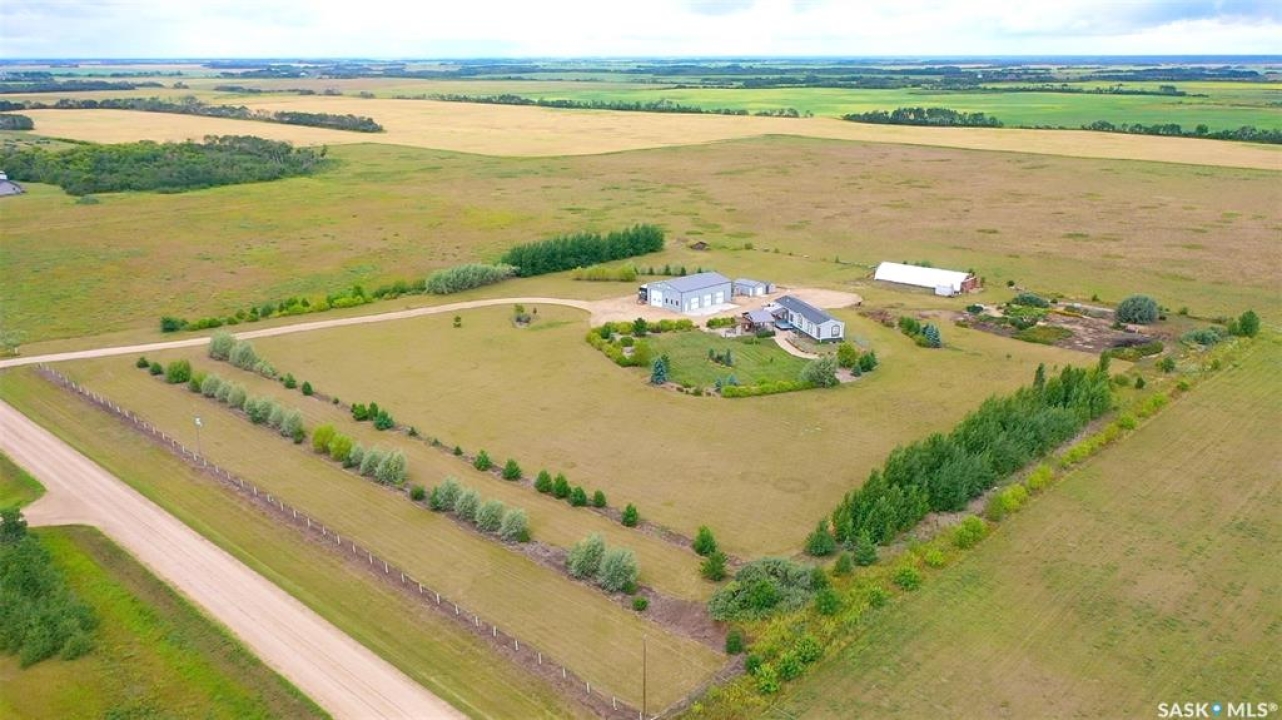 Terrific opportunity for your family with this acreage just situated 13KM from the City along Mehan Rd. This 1600 sq ft bungalow which is constructed on top of screw piles features three bedrooms along with a 5-piece primary bath ensuite. Open concept design with sit-up island along with a natural gas fireplace in your living room area. The home sits on screw piles in the crawl space. Central Air along with RO system, however the well water is plentiful and high quality as it sits in the aquifer 52 ft down. The yard is meticulous and holds various outbuildings including your amazing 40x60 heated shop. The shop contains four overhead 10x10 doors along with a 14x14 overhead door. Natural gas heat along with a 3-piece bath inside the shop. Lots of room to store the toys, RV, Semi inside. �” plywood walls 8ft up make it easy to mount anything to the wall and set it up the way you would like along with an ICF footing. 16x24 garage with wood floor also on the property along with a 30x85 tarped Quonset with wood end walls. Brand new Winkler canvas tarp just installed and contains power in both these buildings. Greenhouse also on the property equipped with water and power also. Multiple 8x12 and 8x16 storage sheds also on site to store the garden tools and various extras. Large garden area along with three sides fenced of the 9.3-acre property. Front large deck along with a covered gazebo area and beautiful patio outdoor firepit area to enjoy. Don't miss this pristine property located a short drive back to the city. You will not be disappointed!